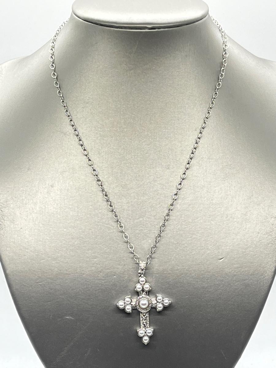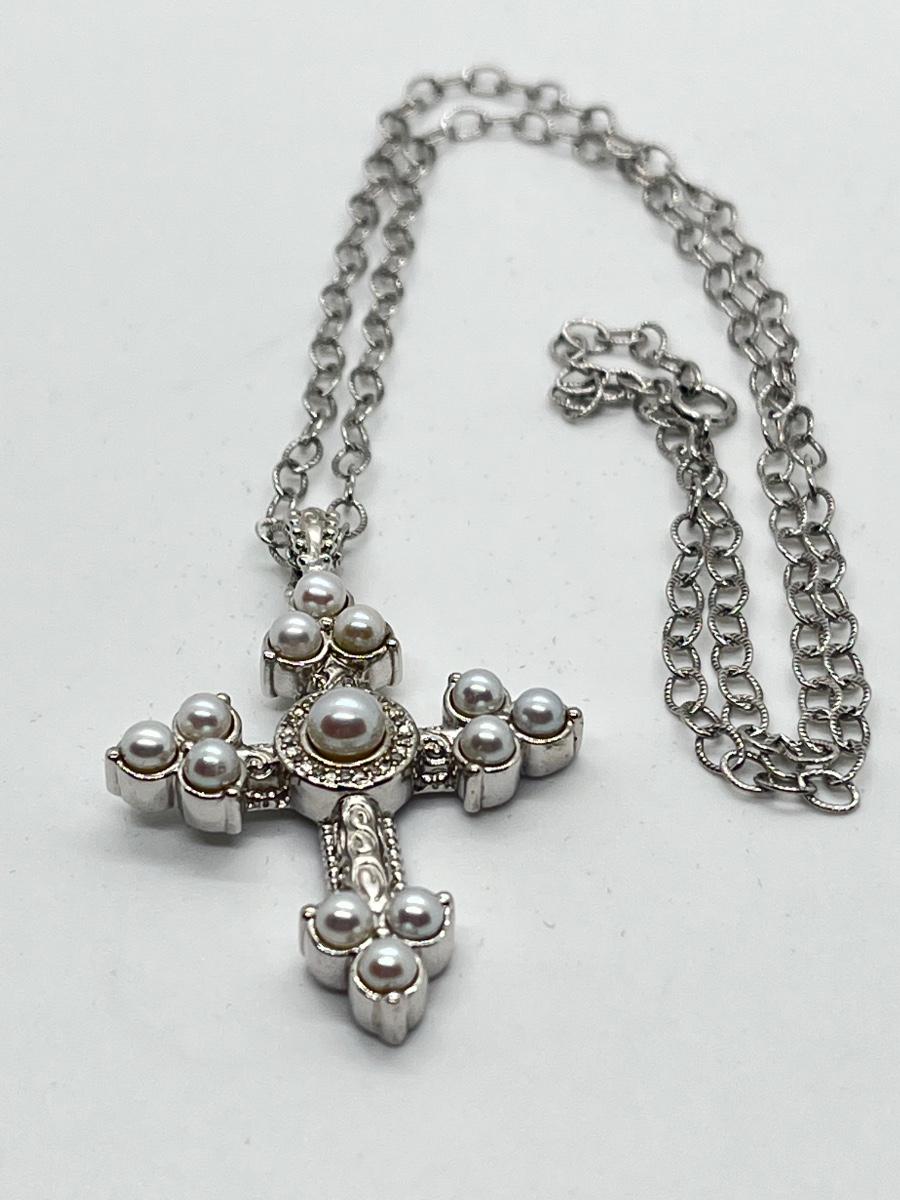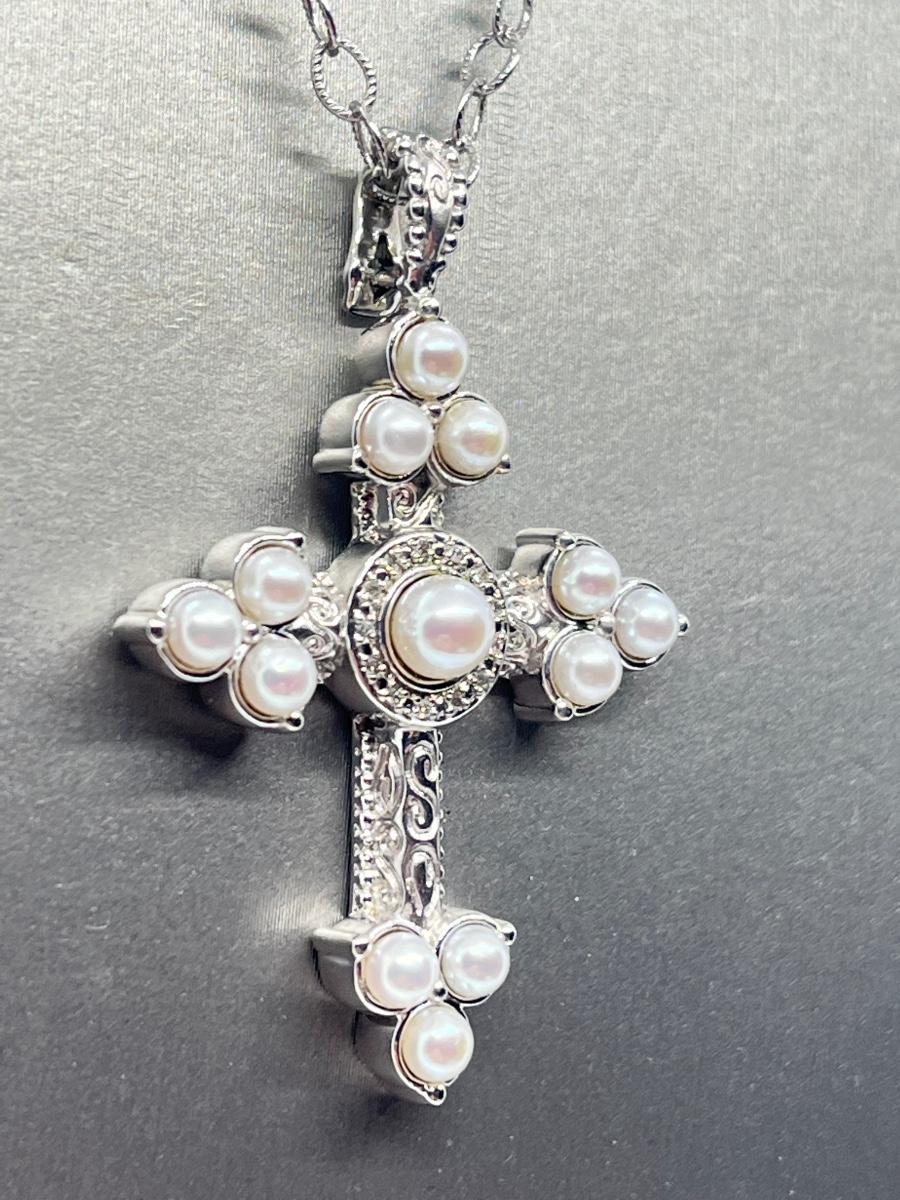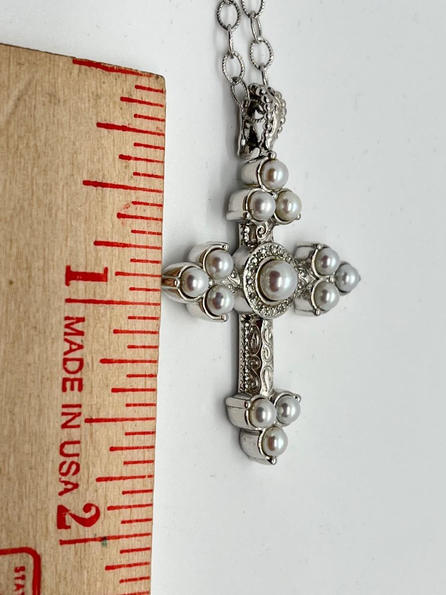 LOT 94: Legacy Naomi Sterling Silver & Cultured Pearl Cross on 17" Chain