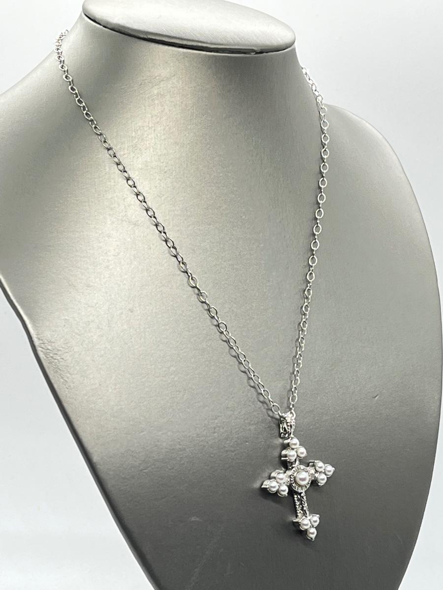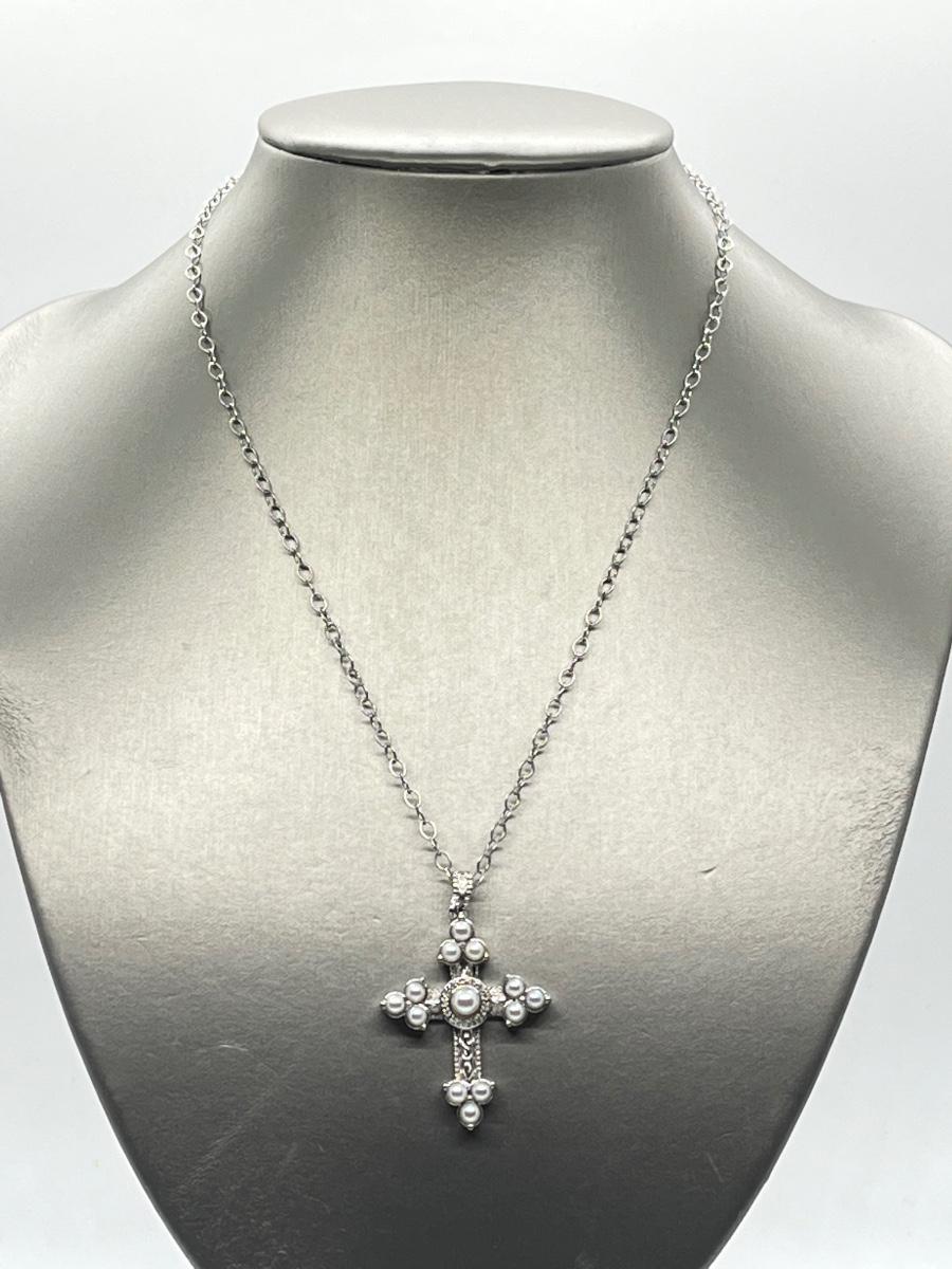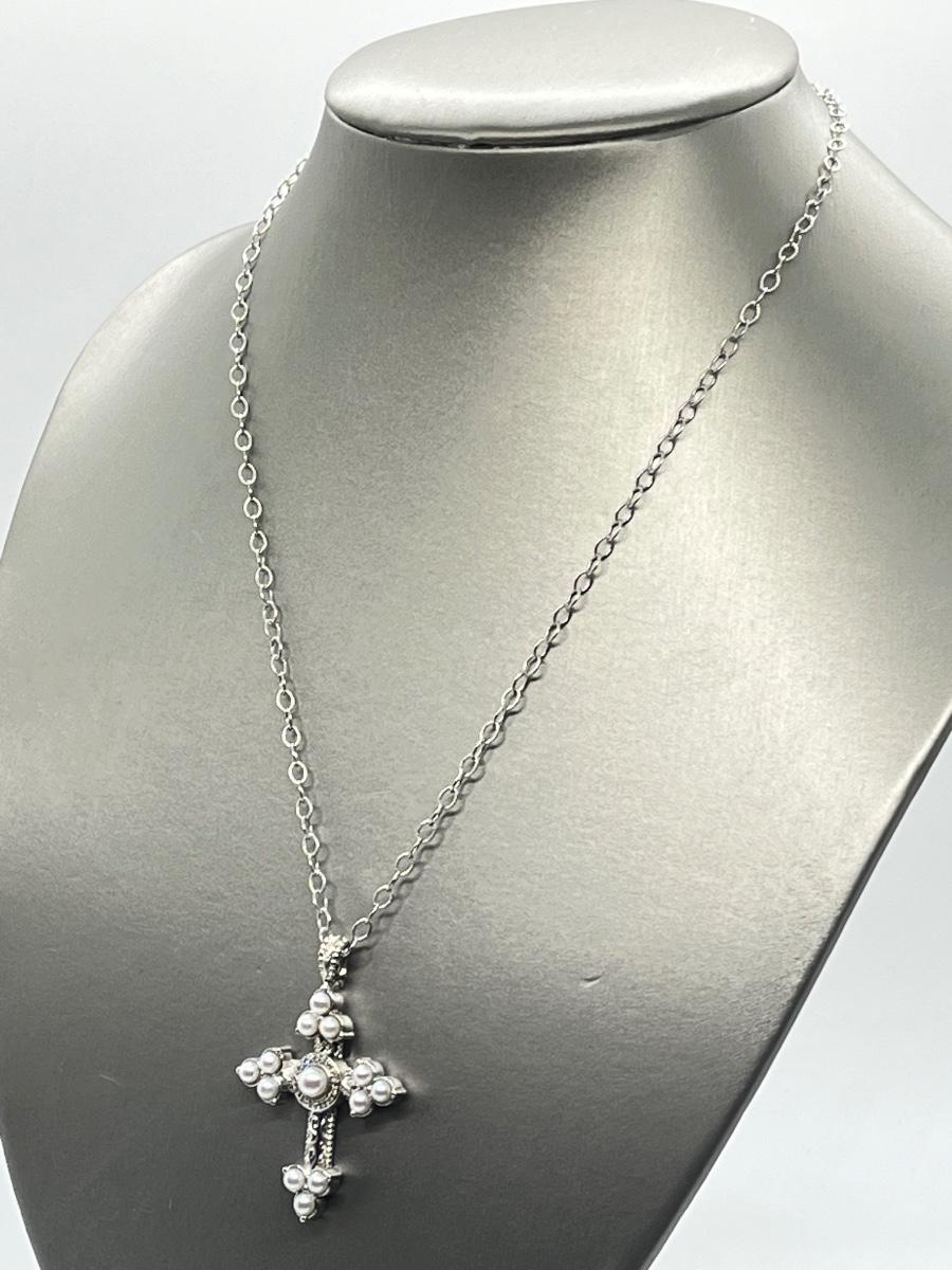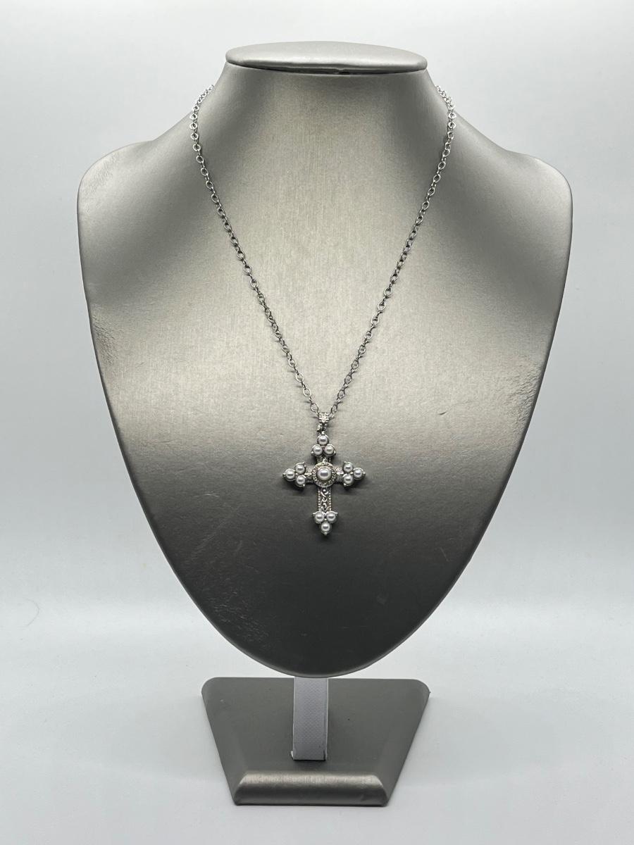 LOT 94: Legacy Naomi Sterling Silver & Cultured Pearl Cross on 17" Chain
