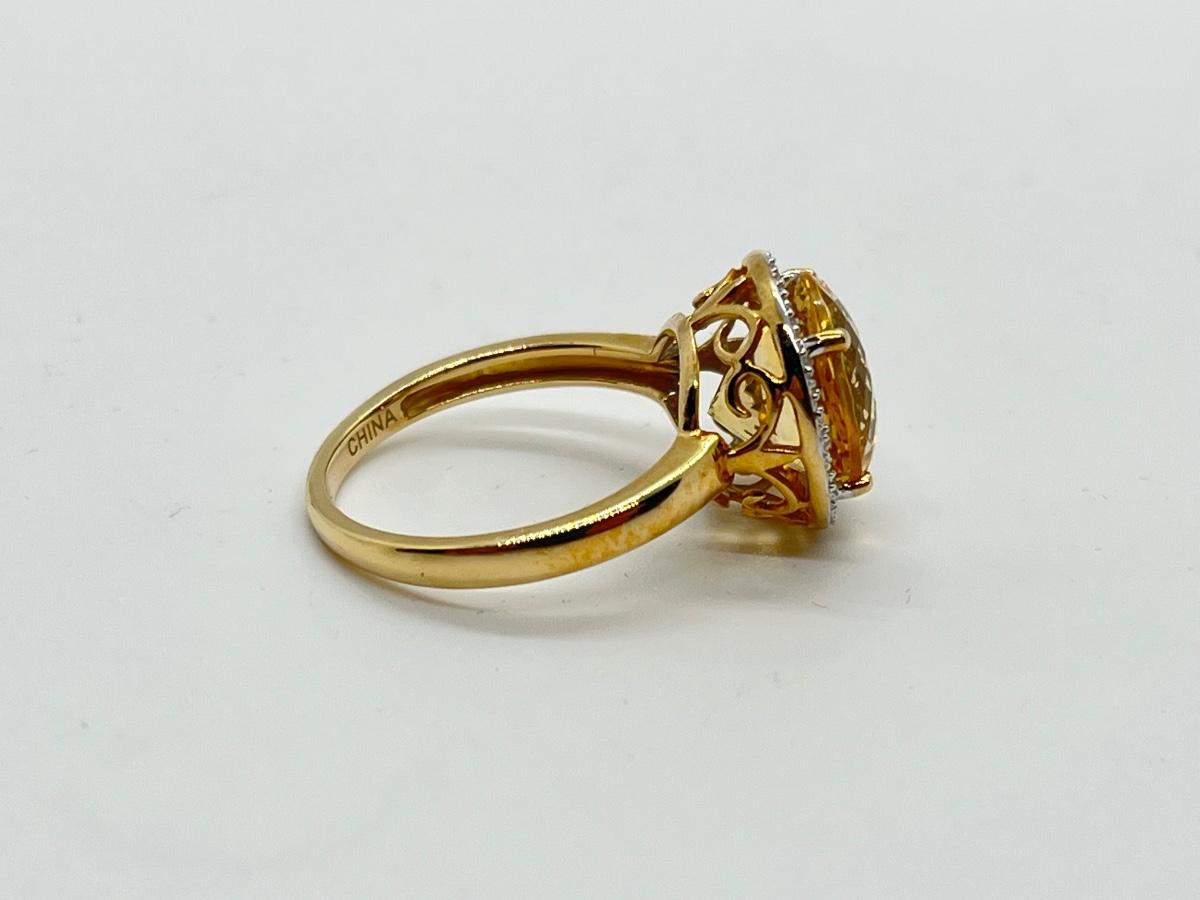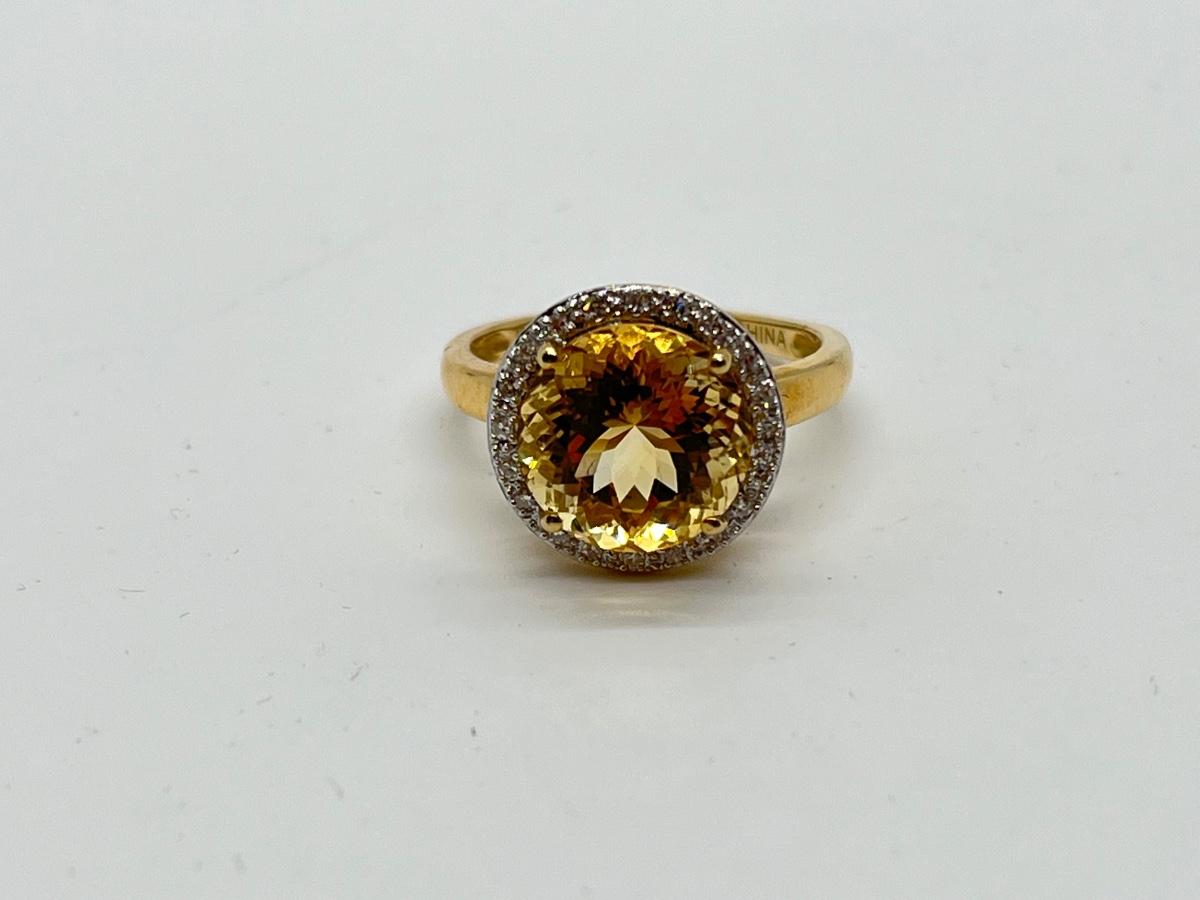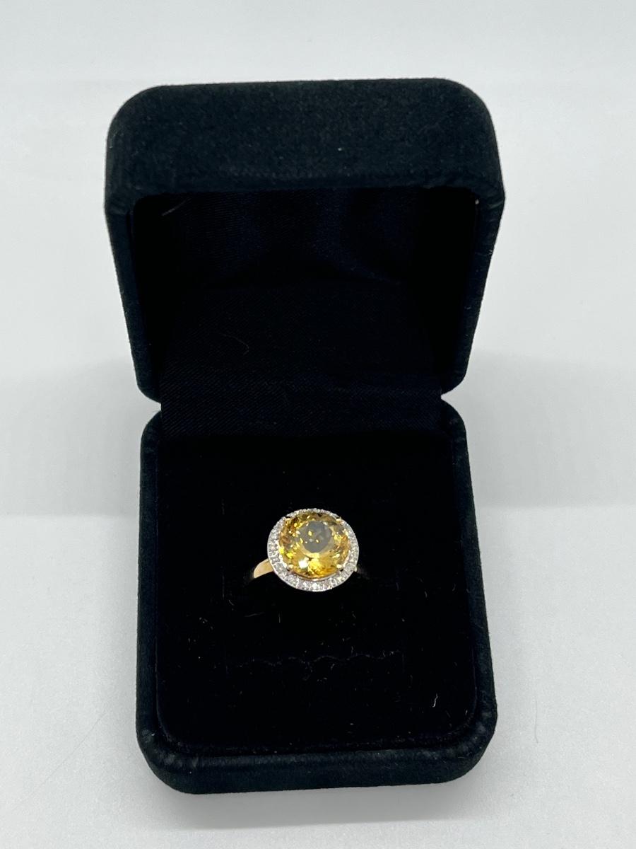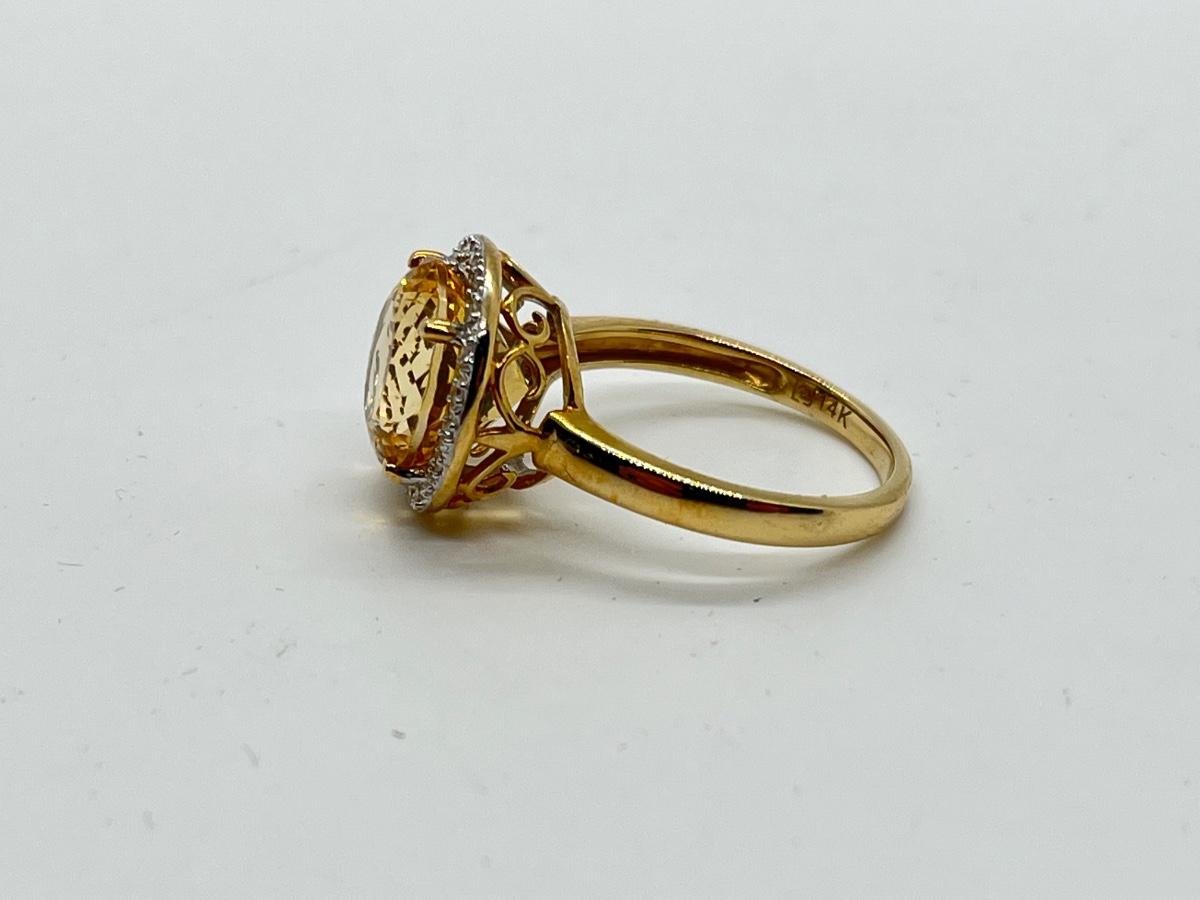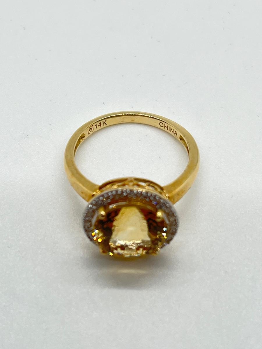 LOT 96: 14K Gold Citrine & Diamond Halo Size 6 Ring - 3.34 grams total weight