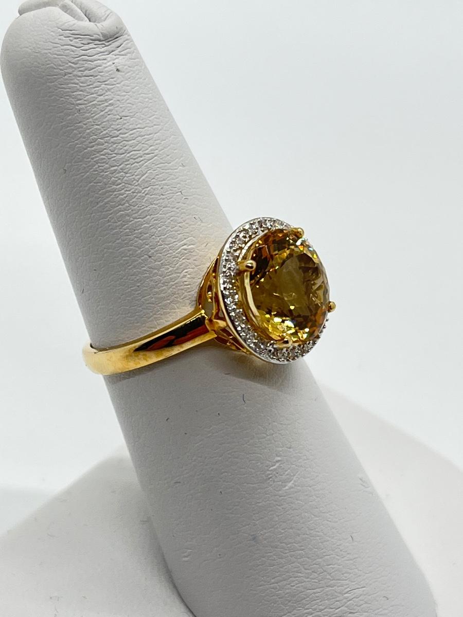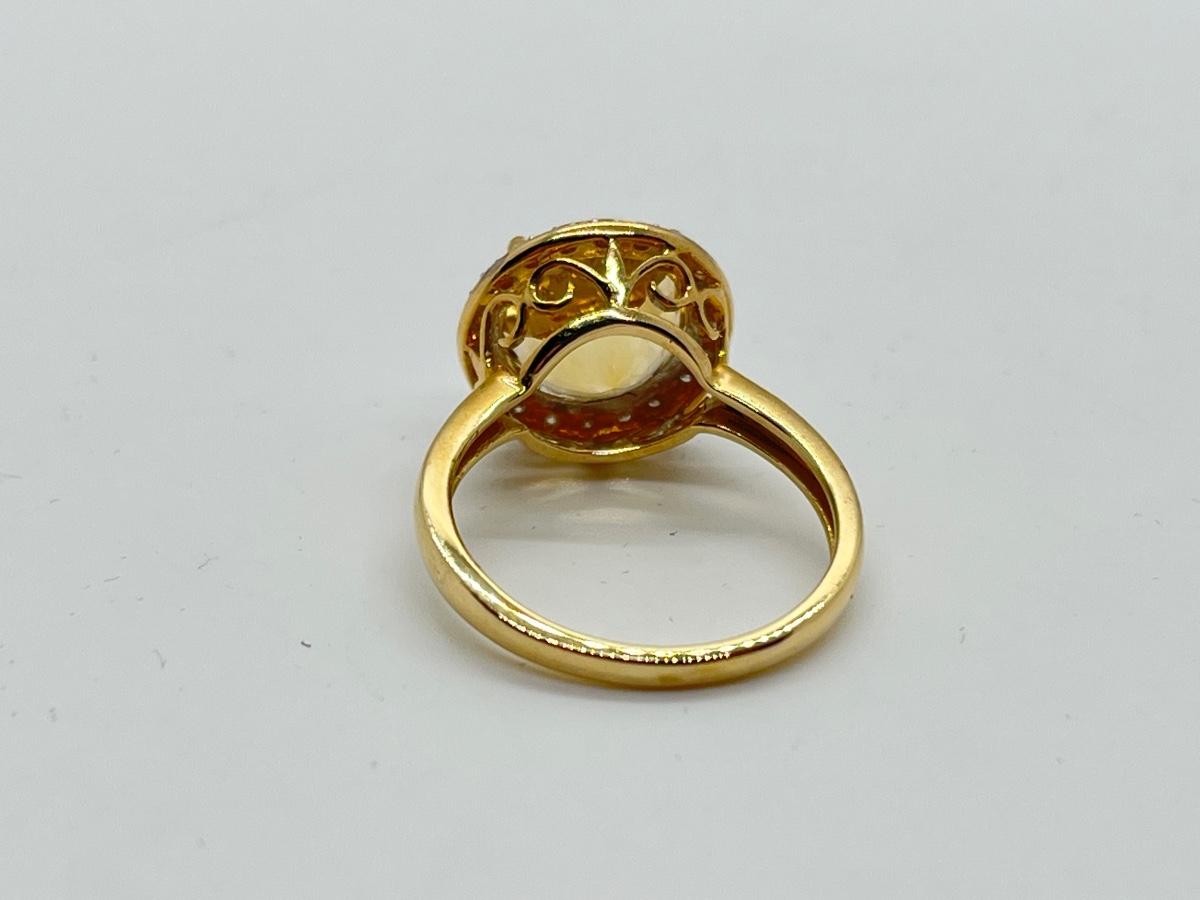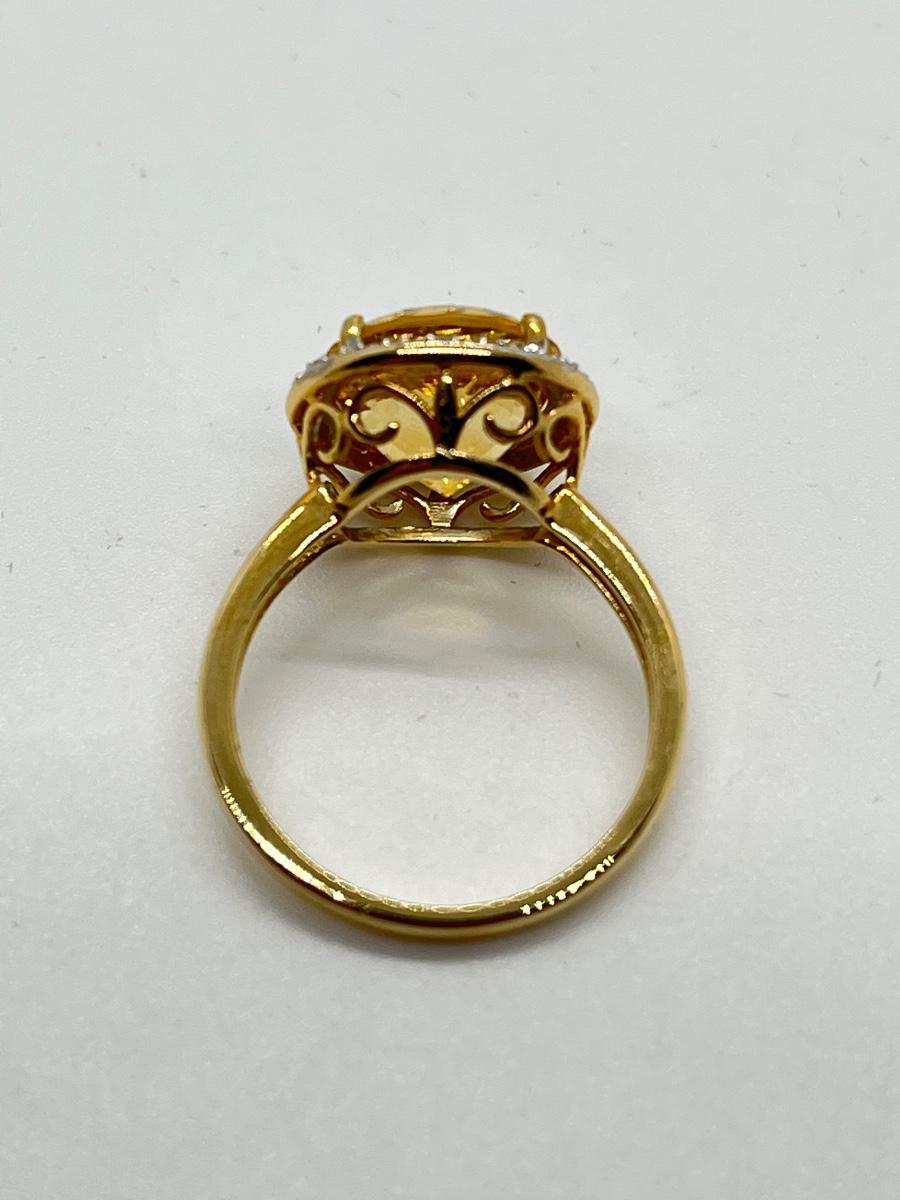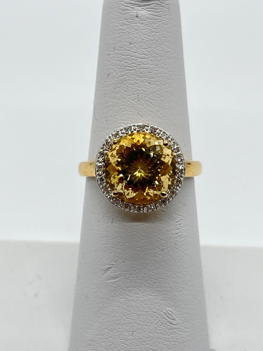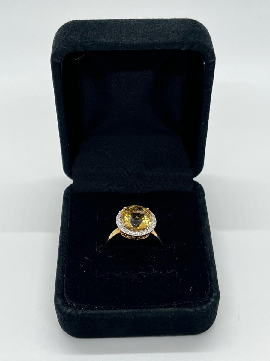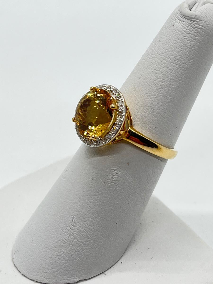 LOT 96: 14K Gold Citrine & Diamond Halo Size 6 Ring - 3.34 grams total weight