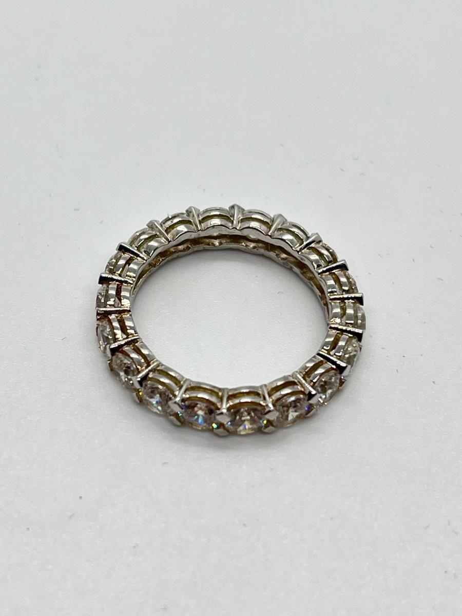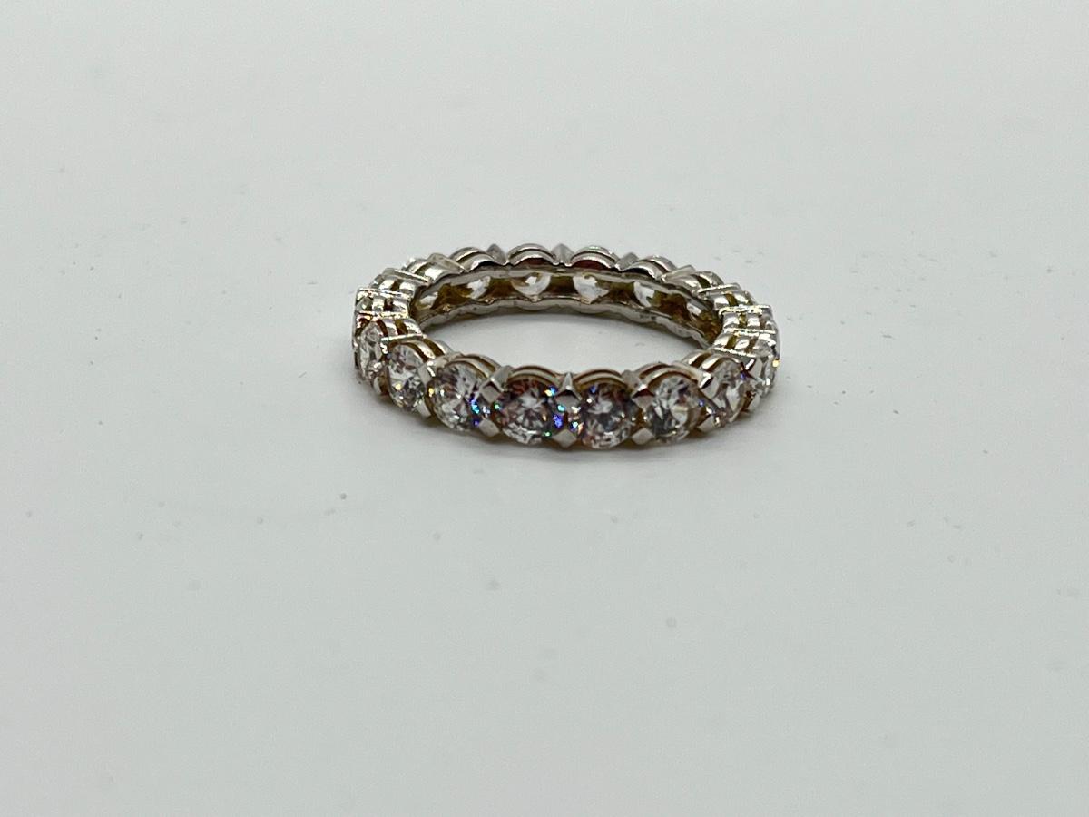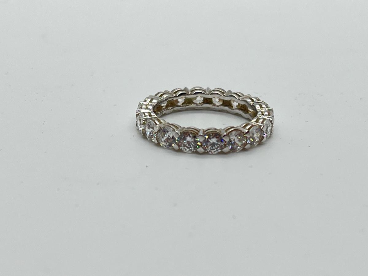 LOT 99: Diamonique Brilliant Round 14K White Gold Eternity Ring - Size 6 - 3.65 grams total weight