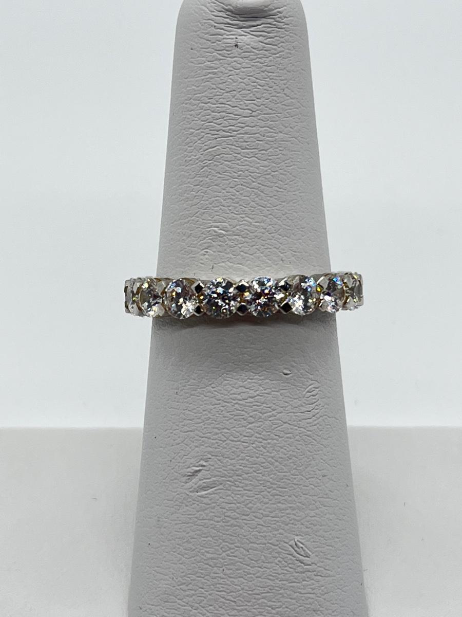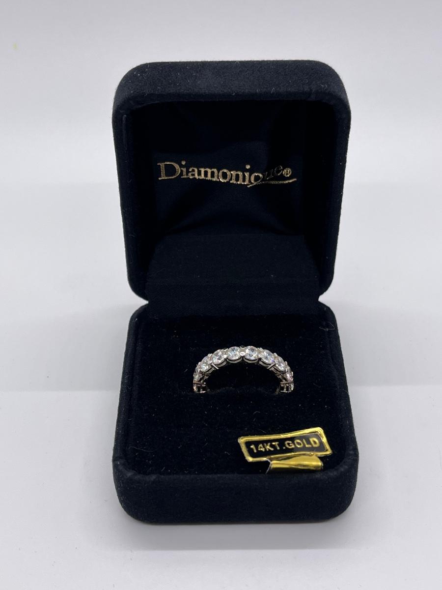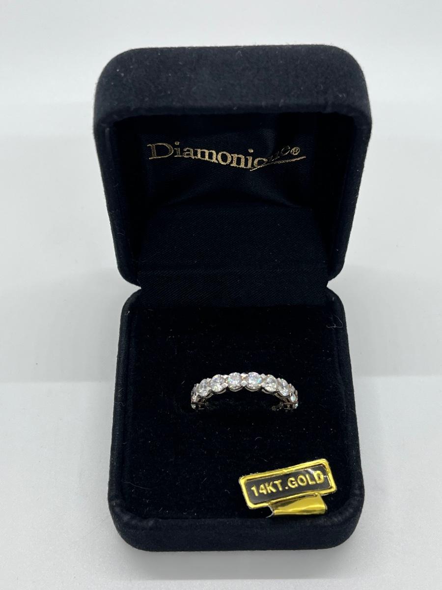 LOT 99: Diamonique Brilliant Round 14K White Gold Eternity Ring - Size 6 - 3.65 grams total weight