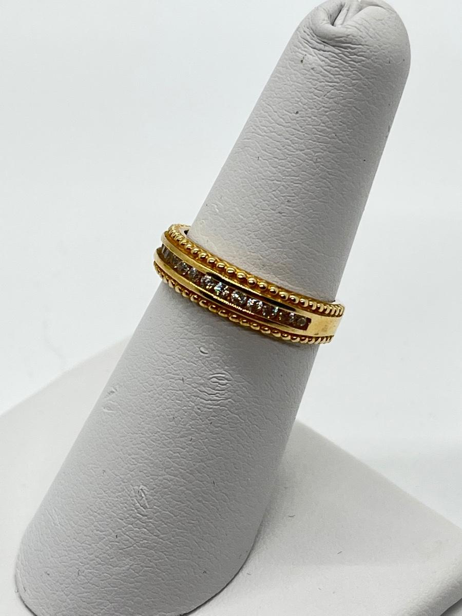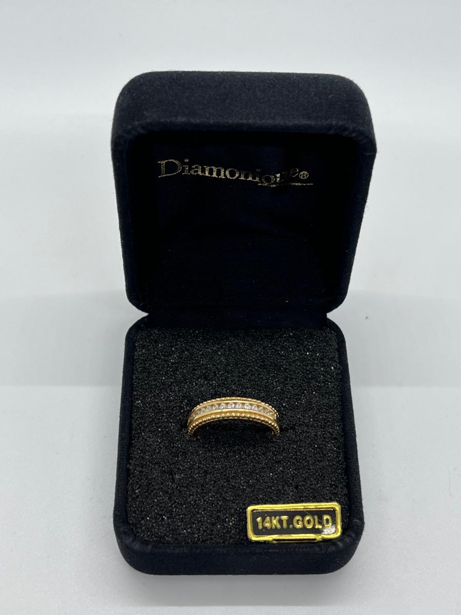 LOT 101: 14K Gold Diamonique Channel Set w/ Milgrain Edge Band - Size 6 - 3.11 gtw