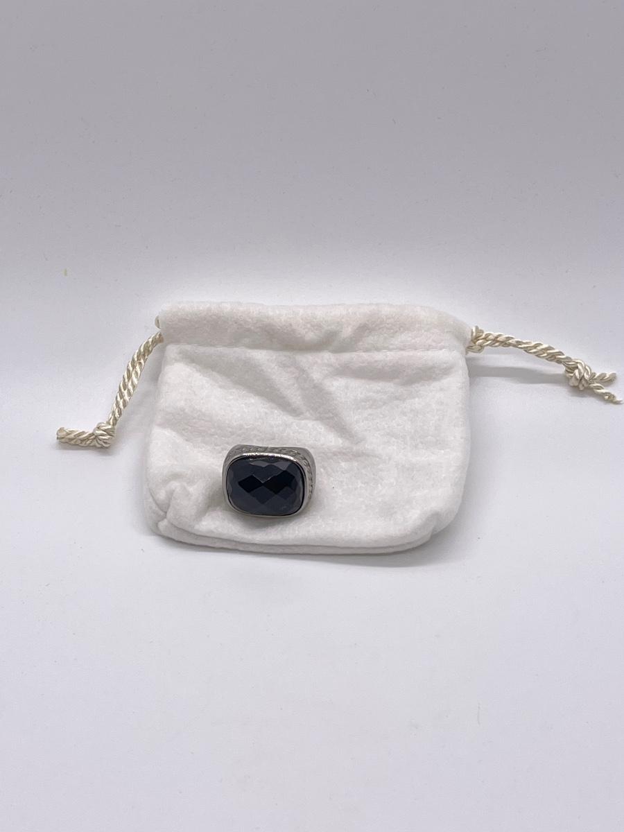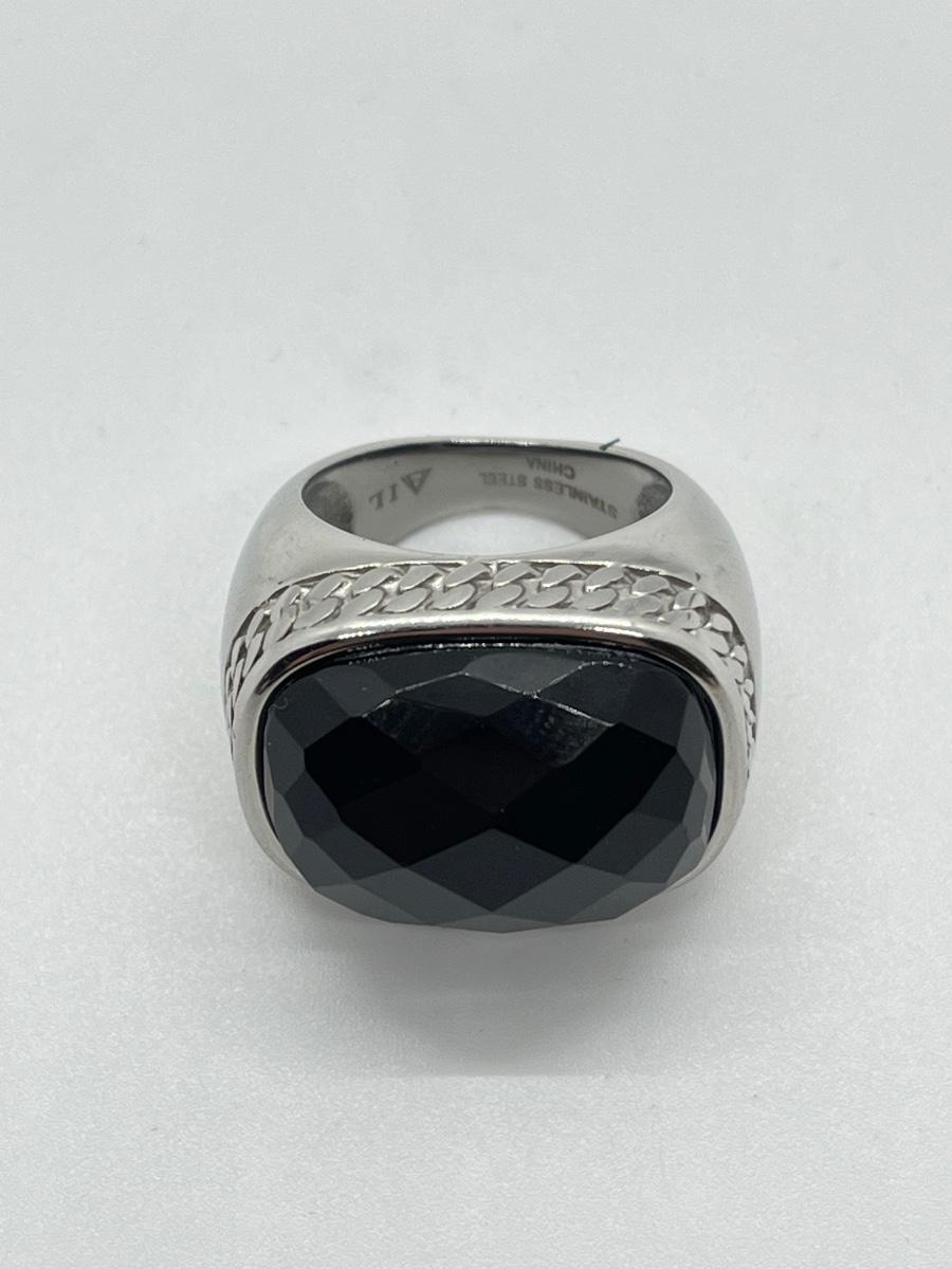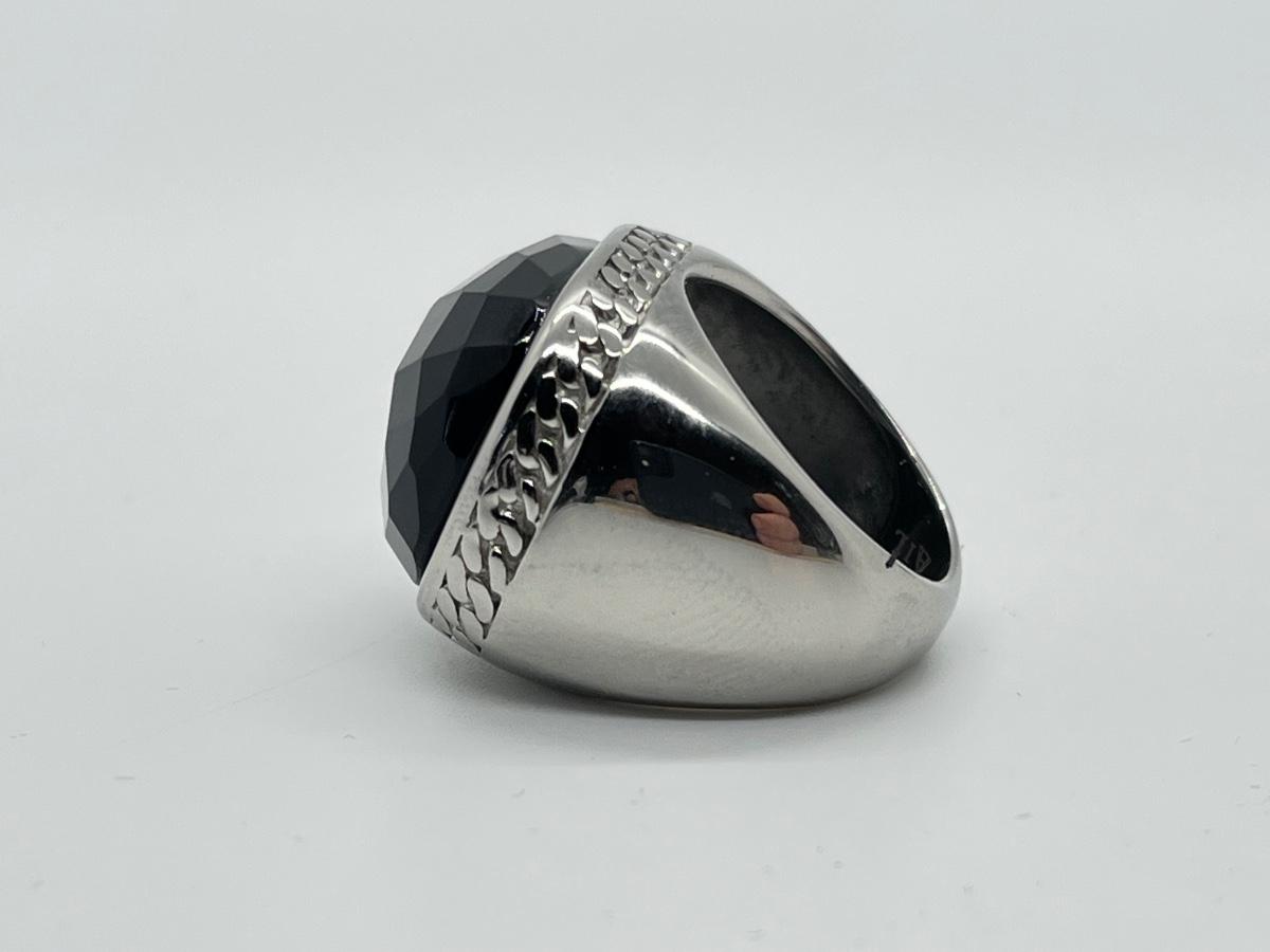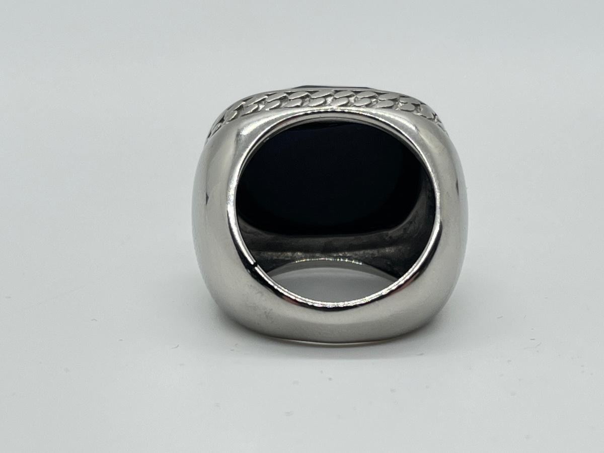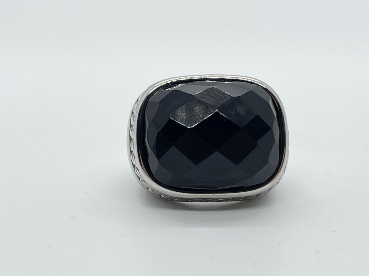 LOT 106: Steel By Design Stainless Steel & Faceted Onyx Gemstone Rectangle Ring - Size 6