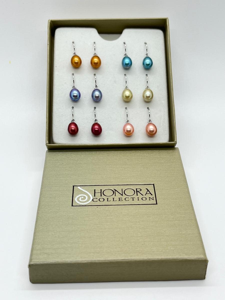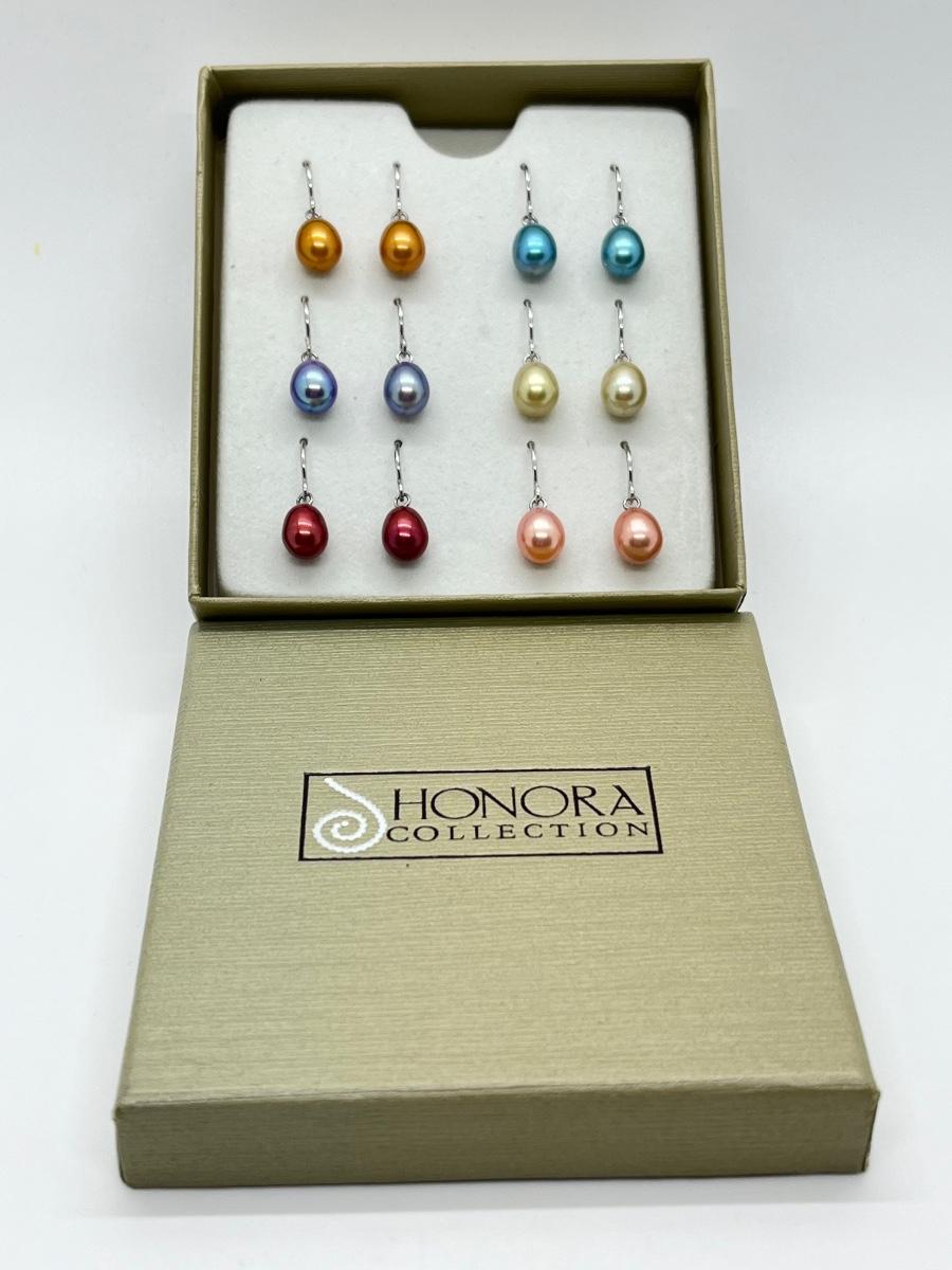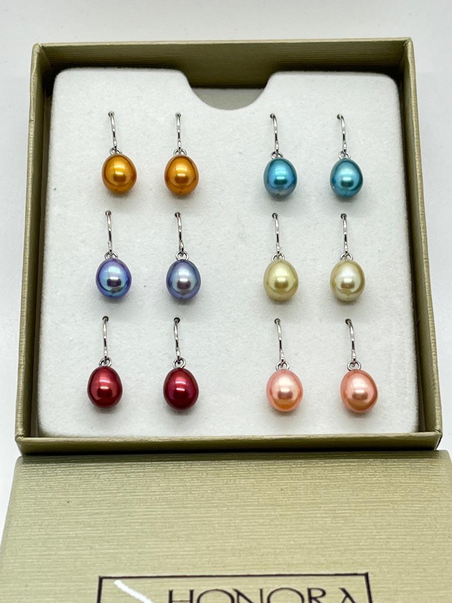 LOT 112: Set of 6 Cultured Pearl Drop Earrings by Honora