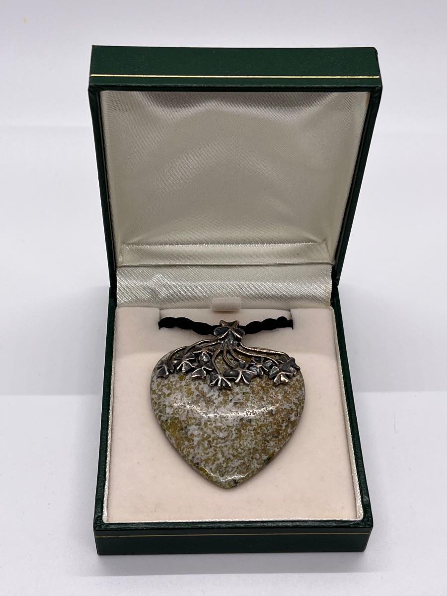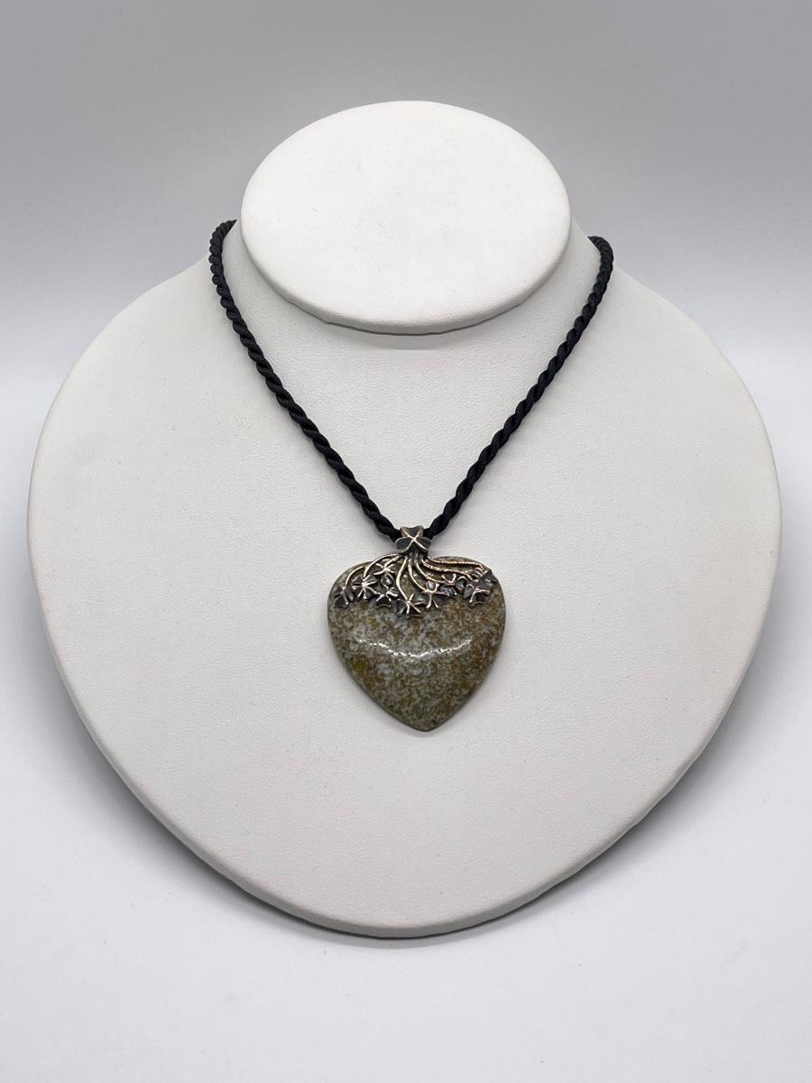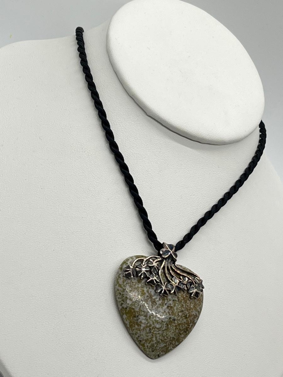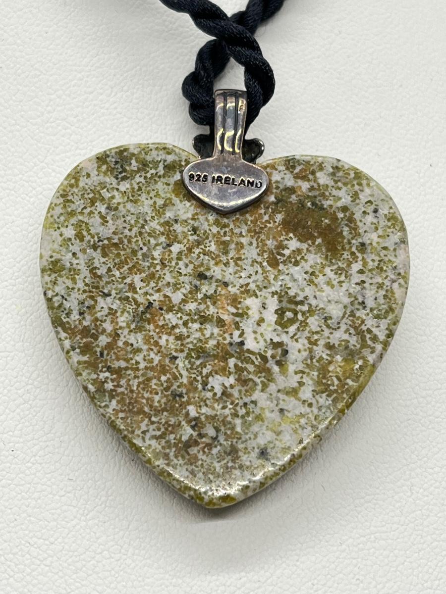 LOT 116: Connemara Marble and Sterling Heart Pendant -Made in Ireland - on 18" Cord Necklace