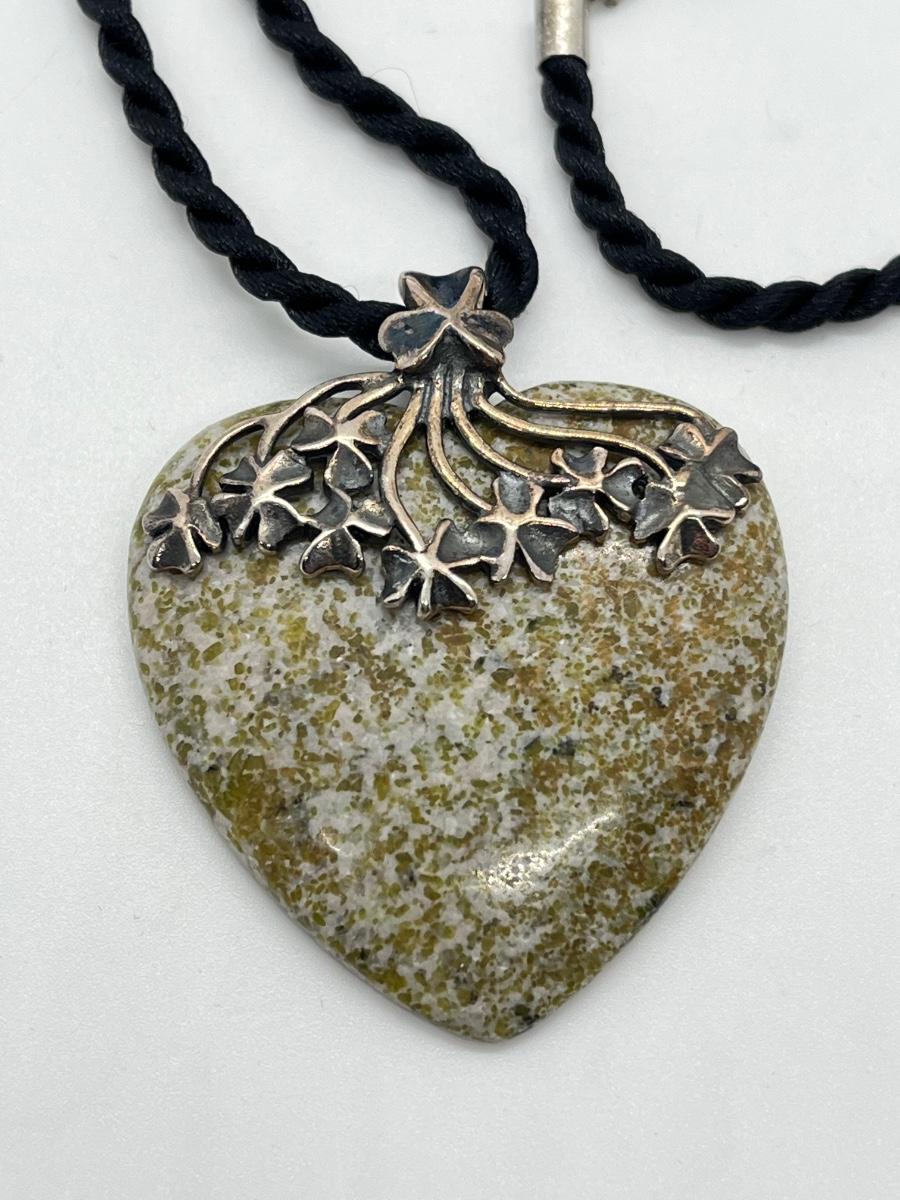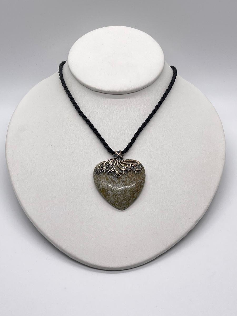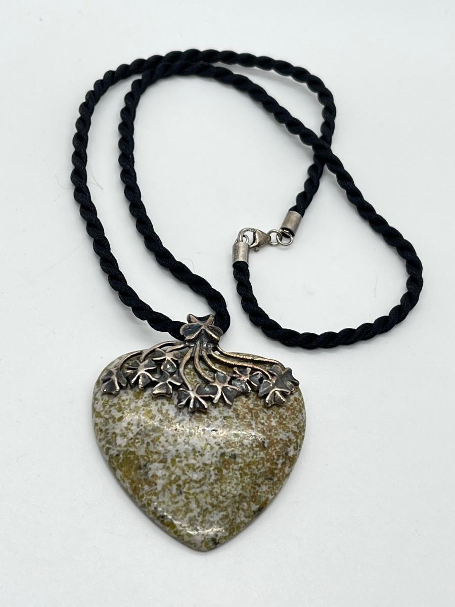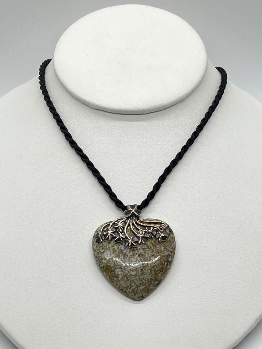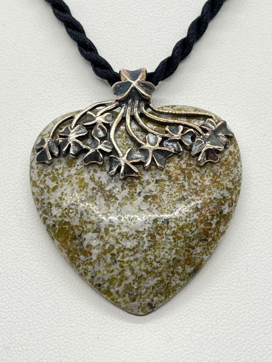 LOT 116: Connemara Marble and Sterling Heart Pendant -Made in Ireland - on 18" Cord Necklace