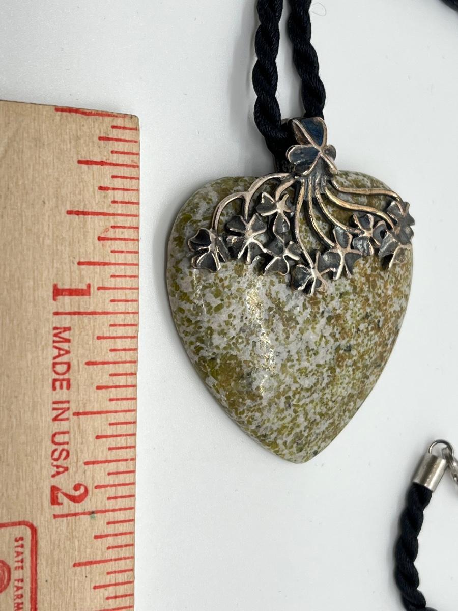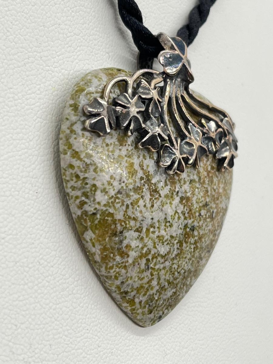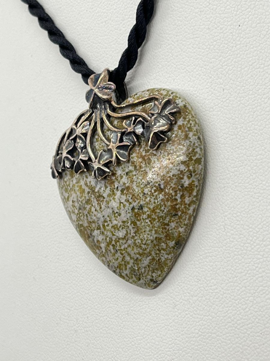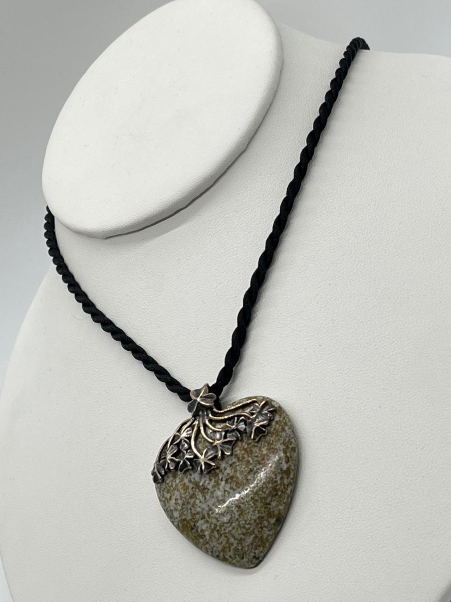 LOT 116: Connemara Marble and Sterling Heart Pendant -Made in Ireland - on 18" Cord Necklace