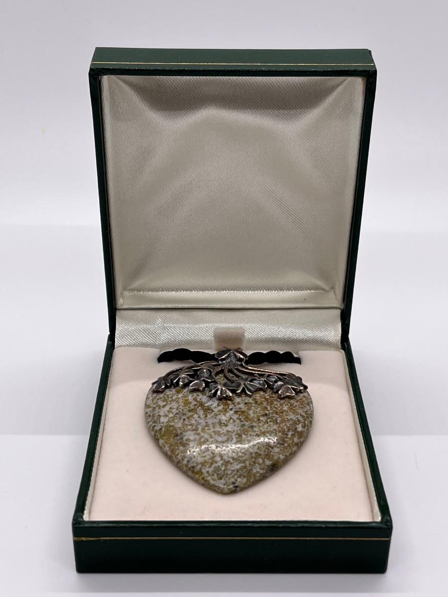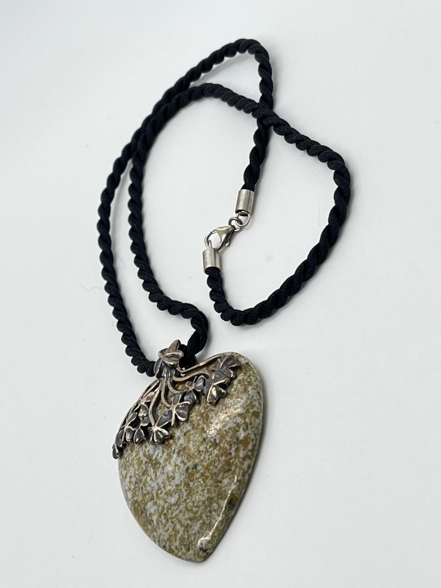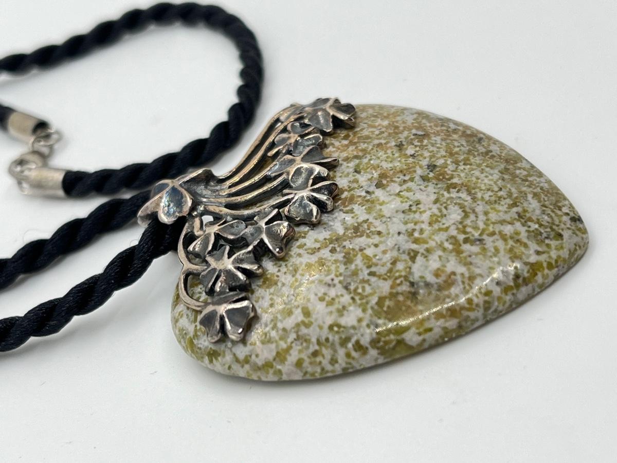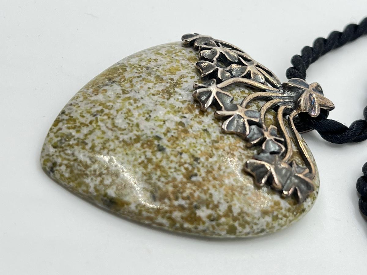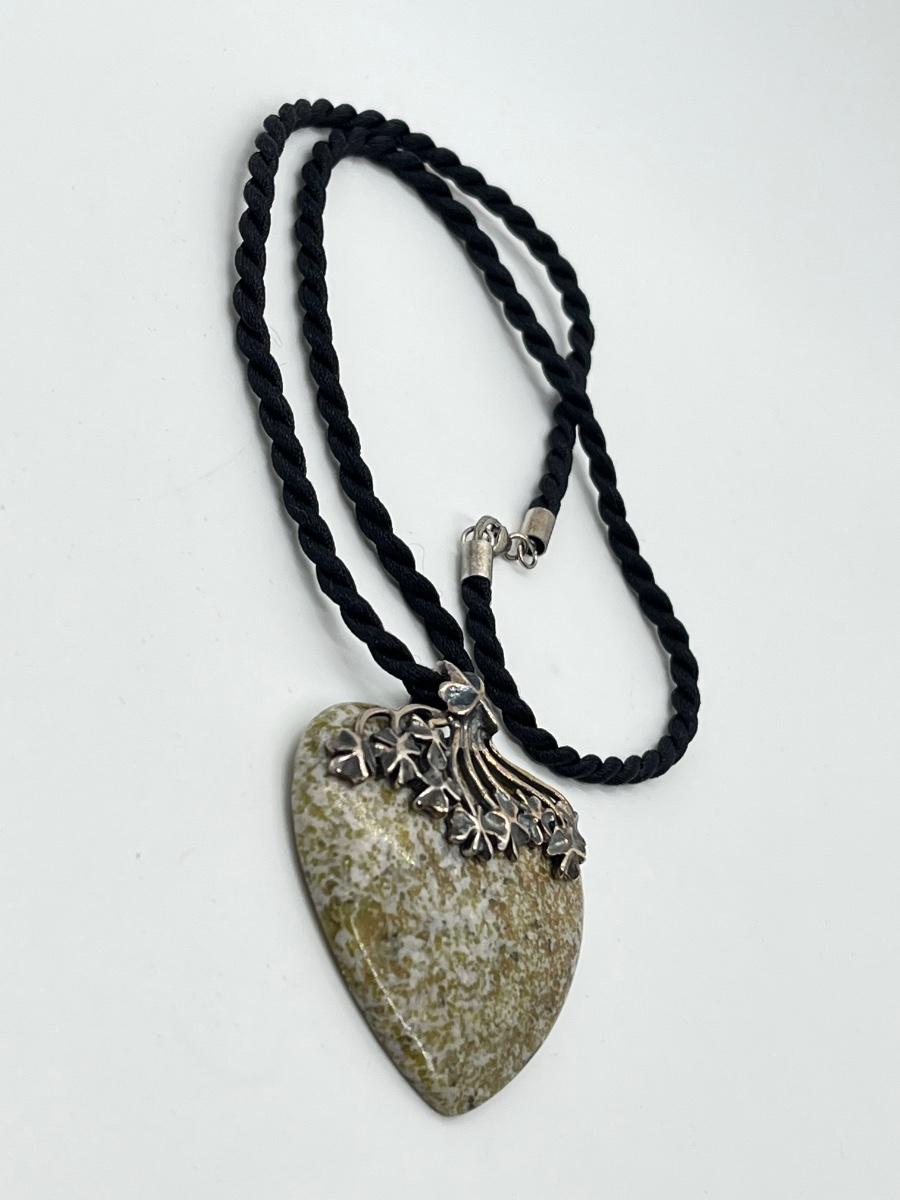 LOT 116: Connemara Marble and Sterling Heart Pendant -Made in Ireland - on 18" Cord Necklace