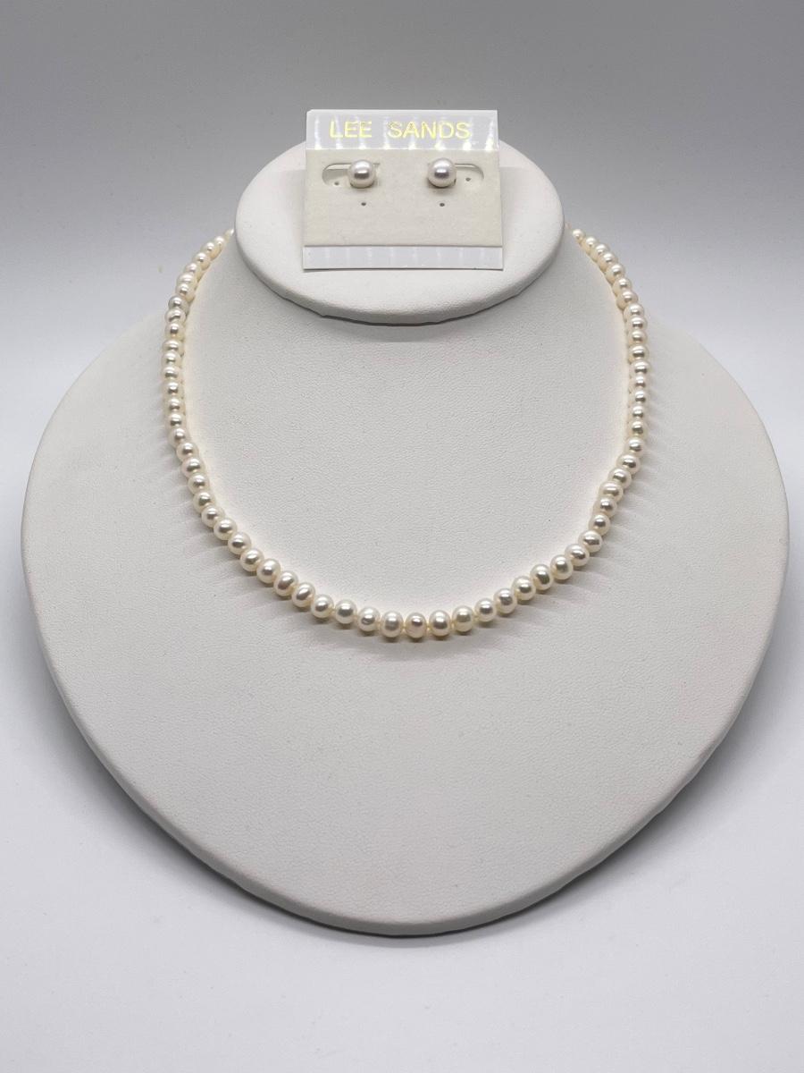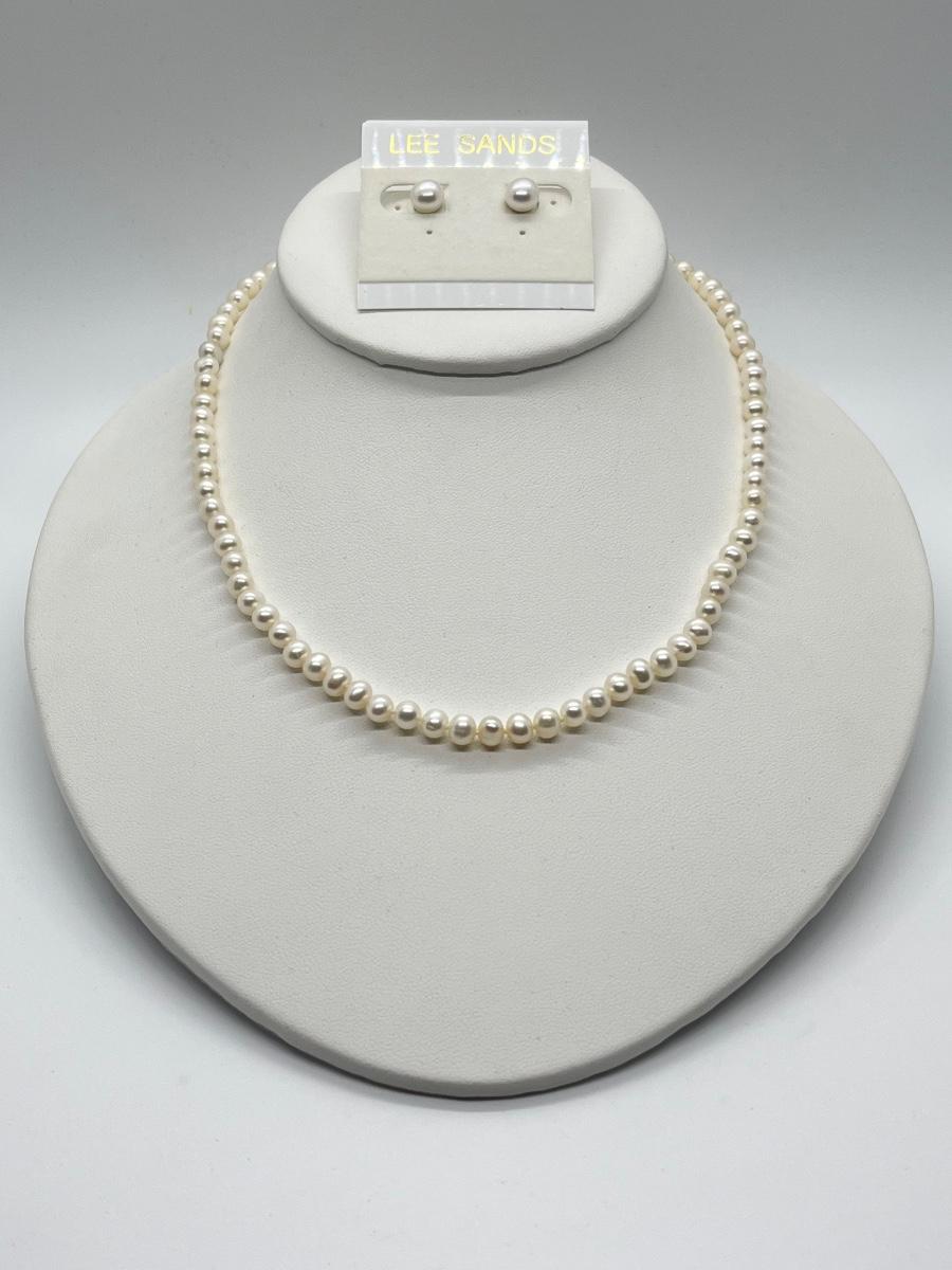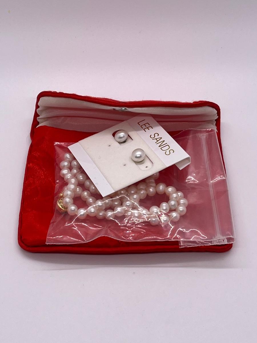 LOT 123: Lee Sands Cultured Pear 18" Necklace and Earrings Set