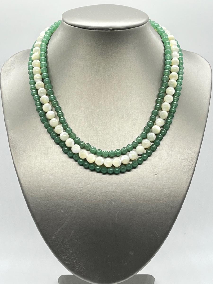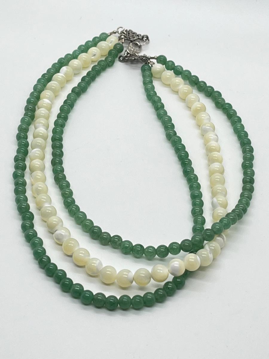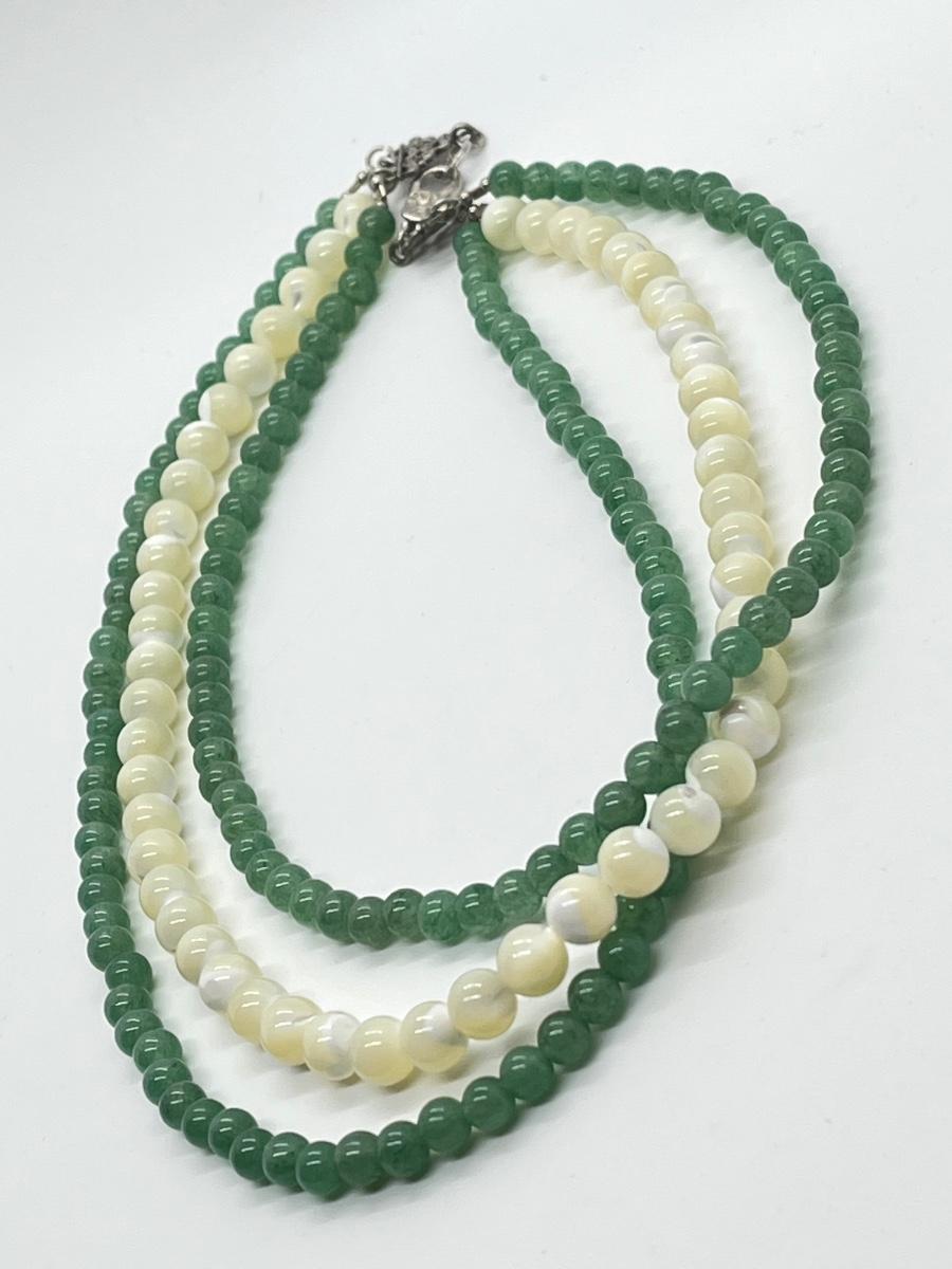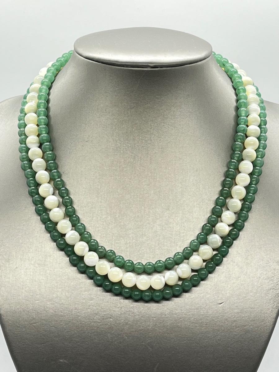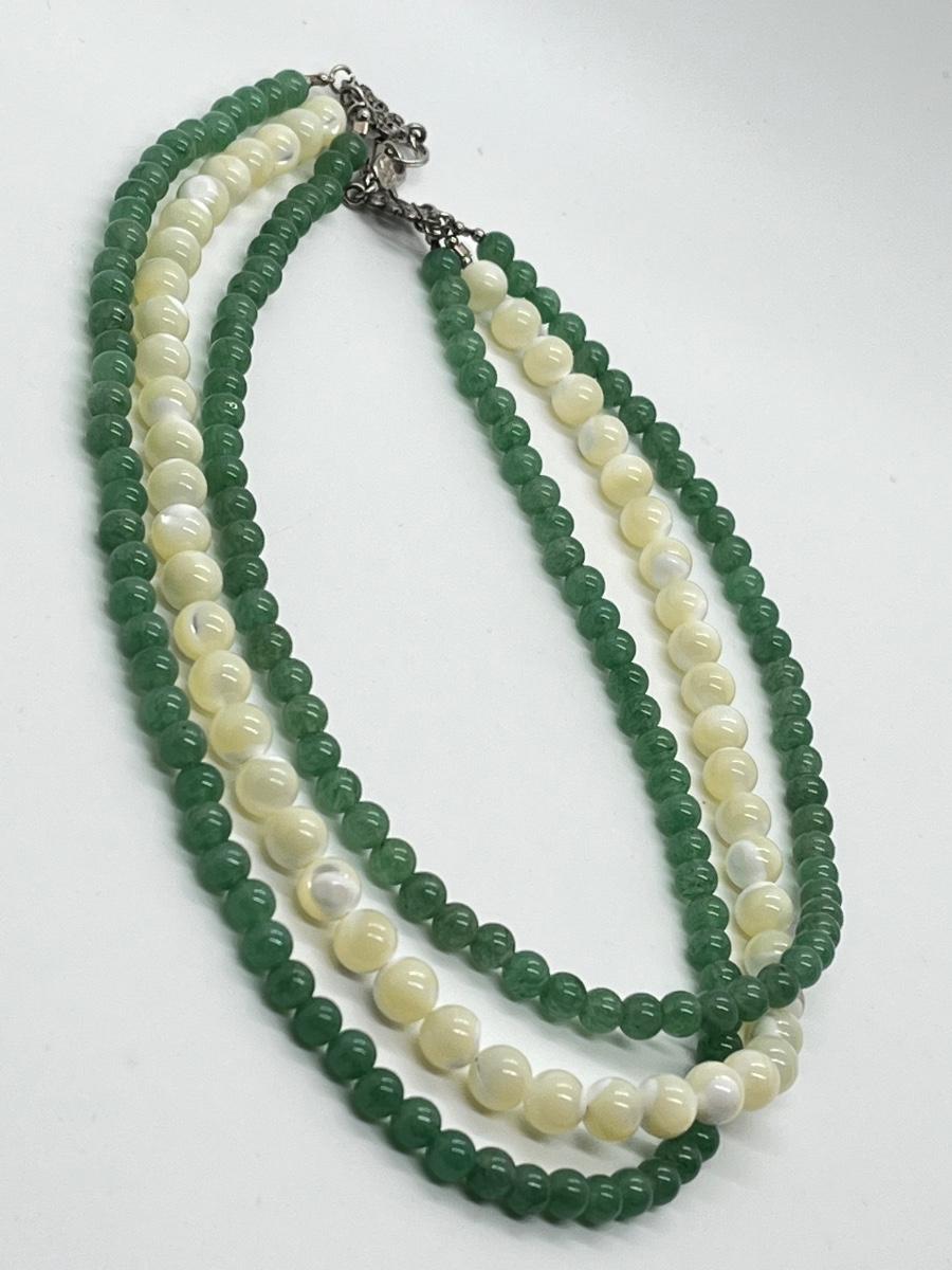 LOT 128: Lee Sands Triple Strand Aventurine & Mother-Of-Pearl 18" Necklace