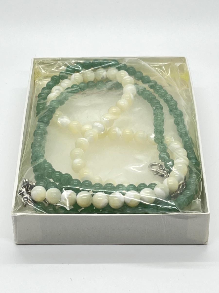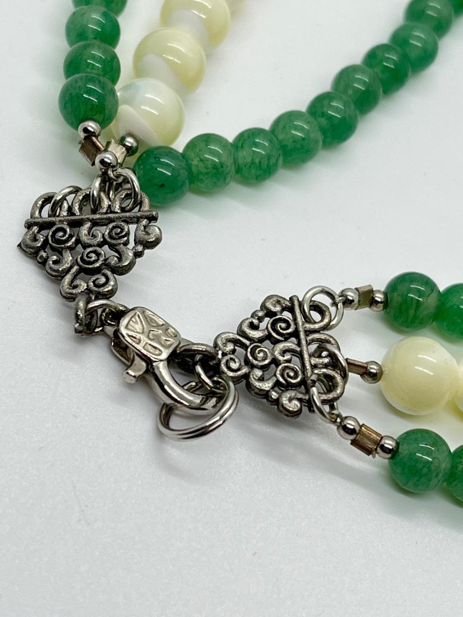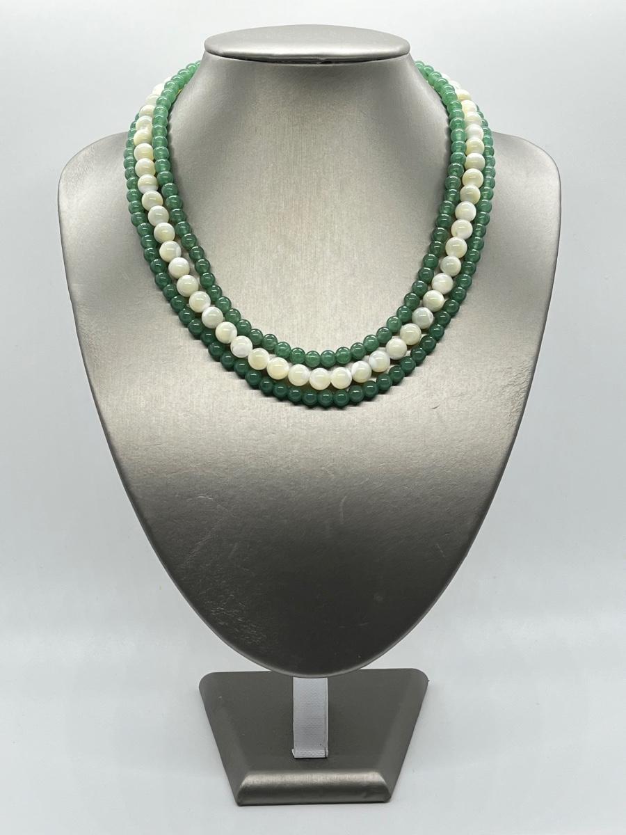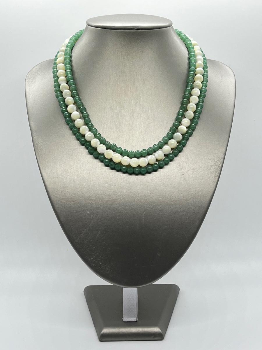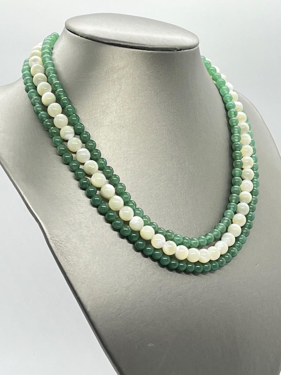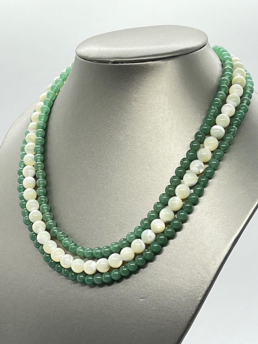 LOT 128: Lee Sands Triple Strand Aventurine & Mother-Of-Pearl 18" Necklace