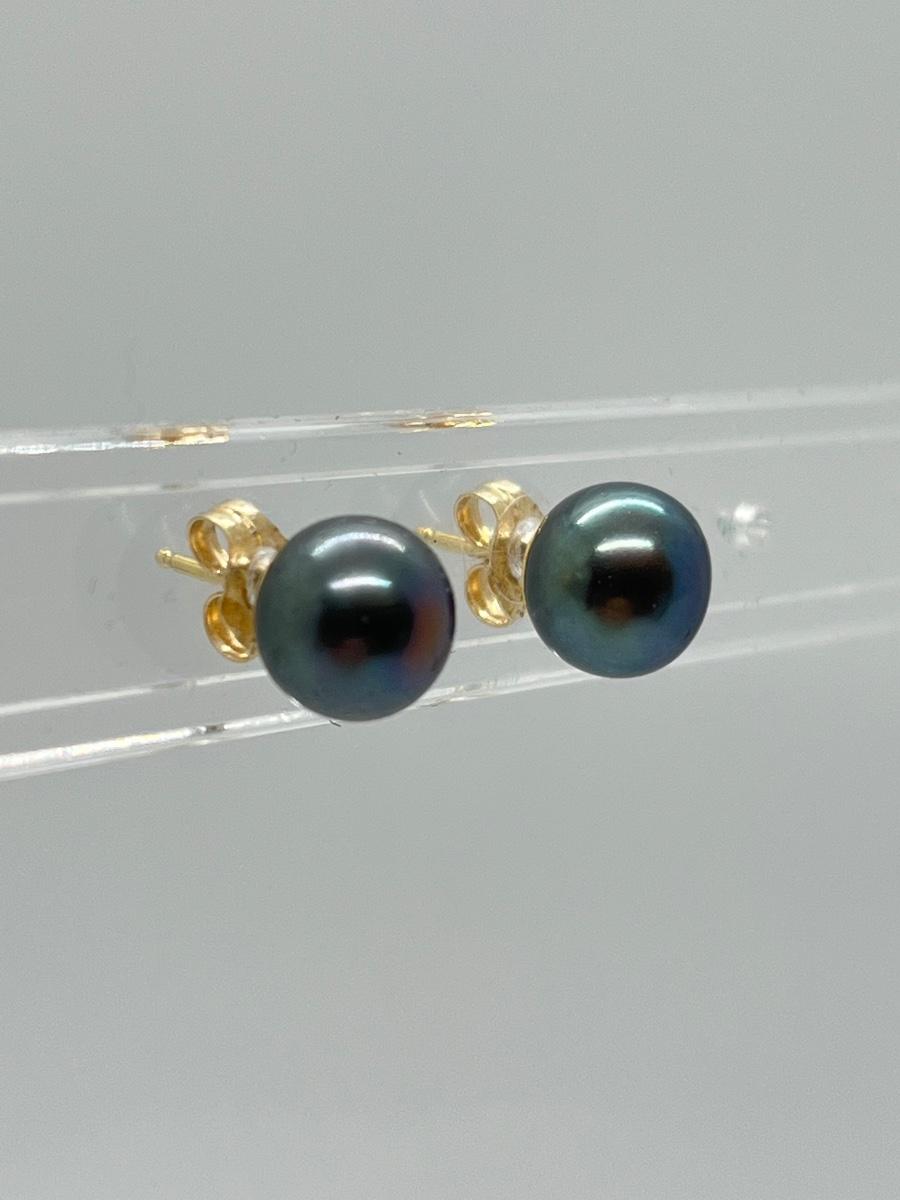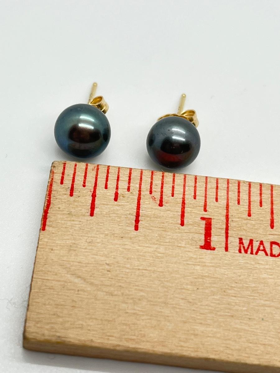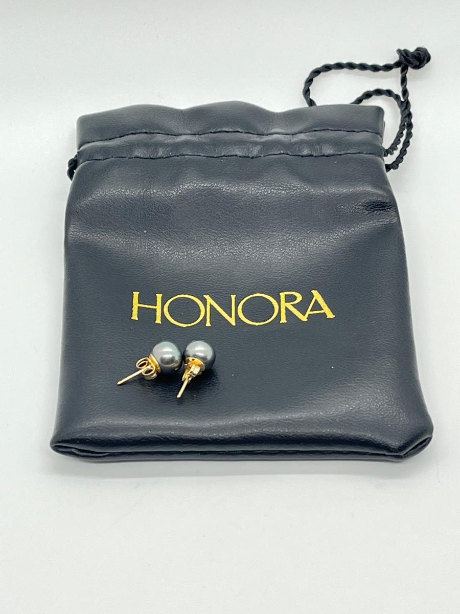 LOT 133: Honora 8mm Black Cultured Freshwater Pearl Stud Earrings with 14K Gold Posts