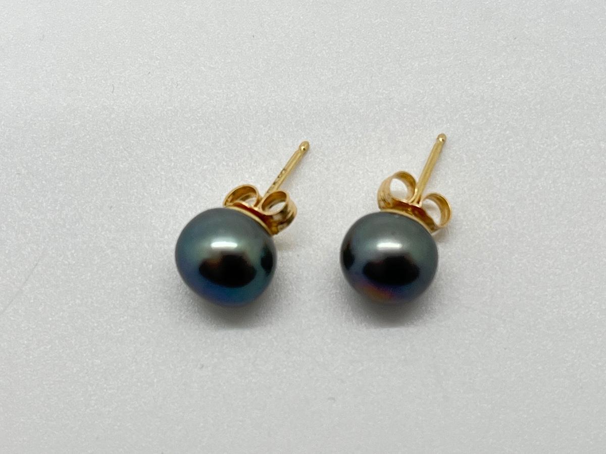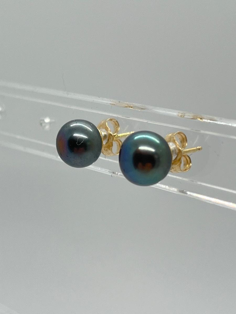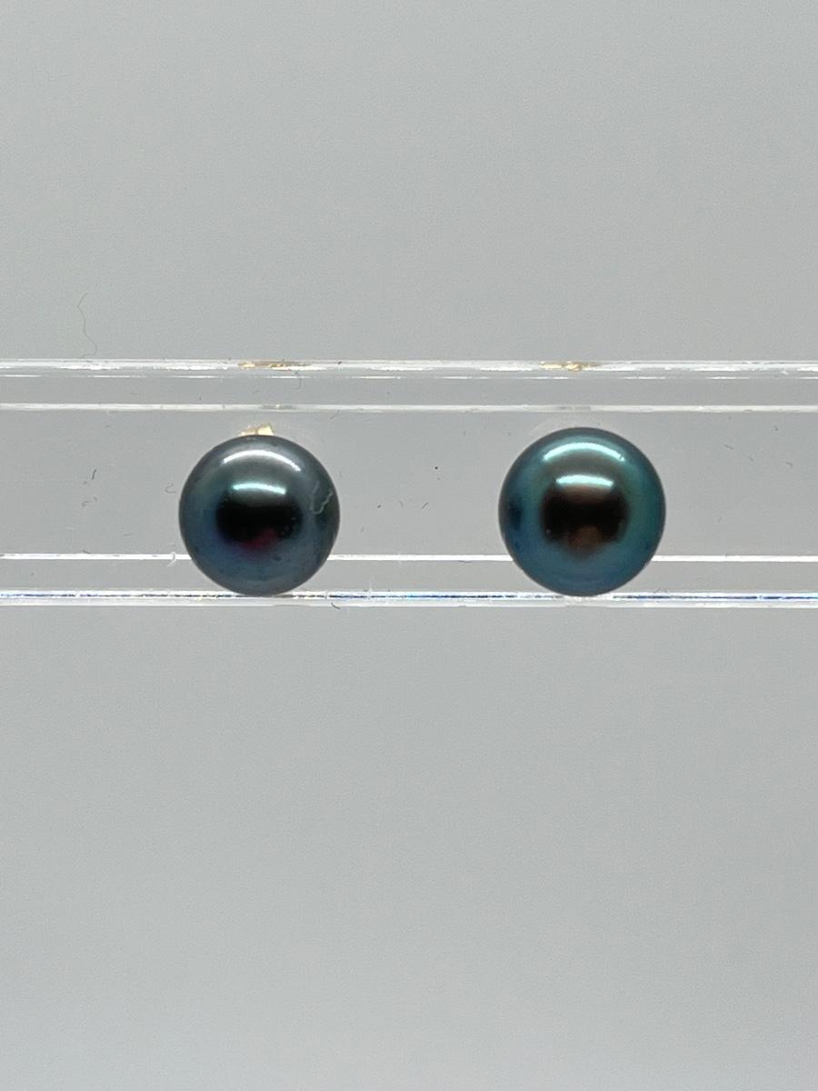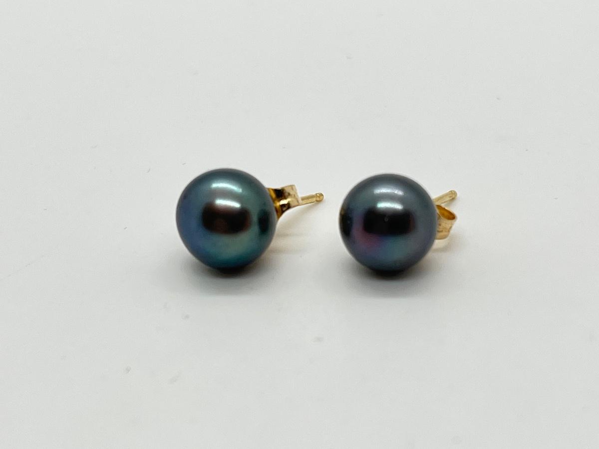 LOT 133: Honora 8mm Black Cultured Freshwater Pearl Stud Earrings with 14K Gold Posts