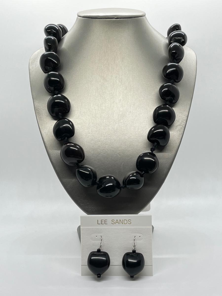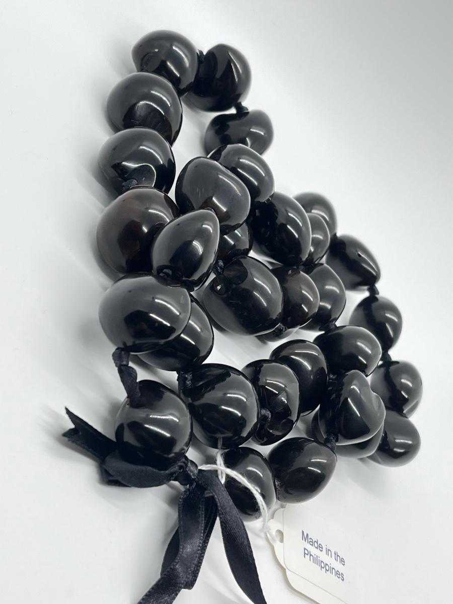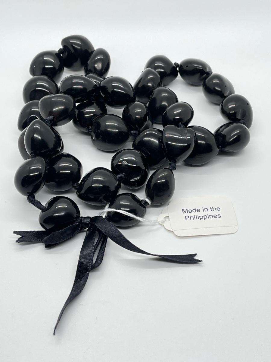 LOT 135: Lee Sands Kukui Nut 33" Ribbon Necklace & Earrings Set