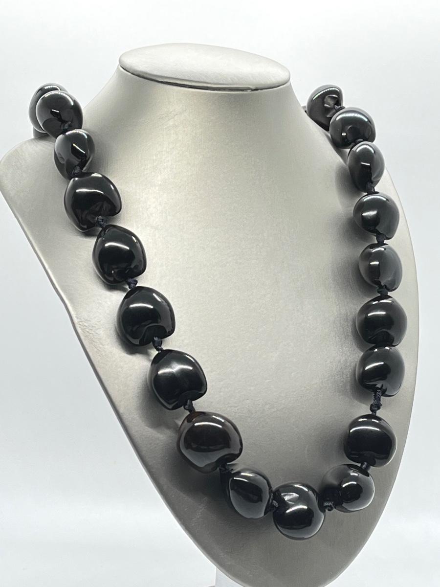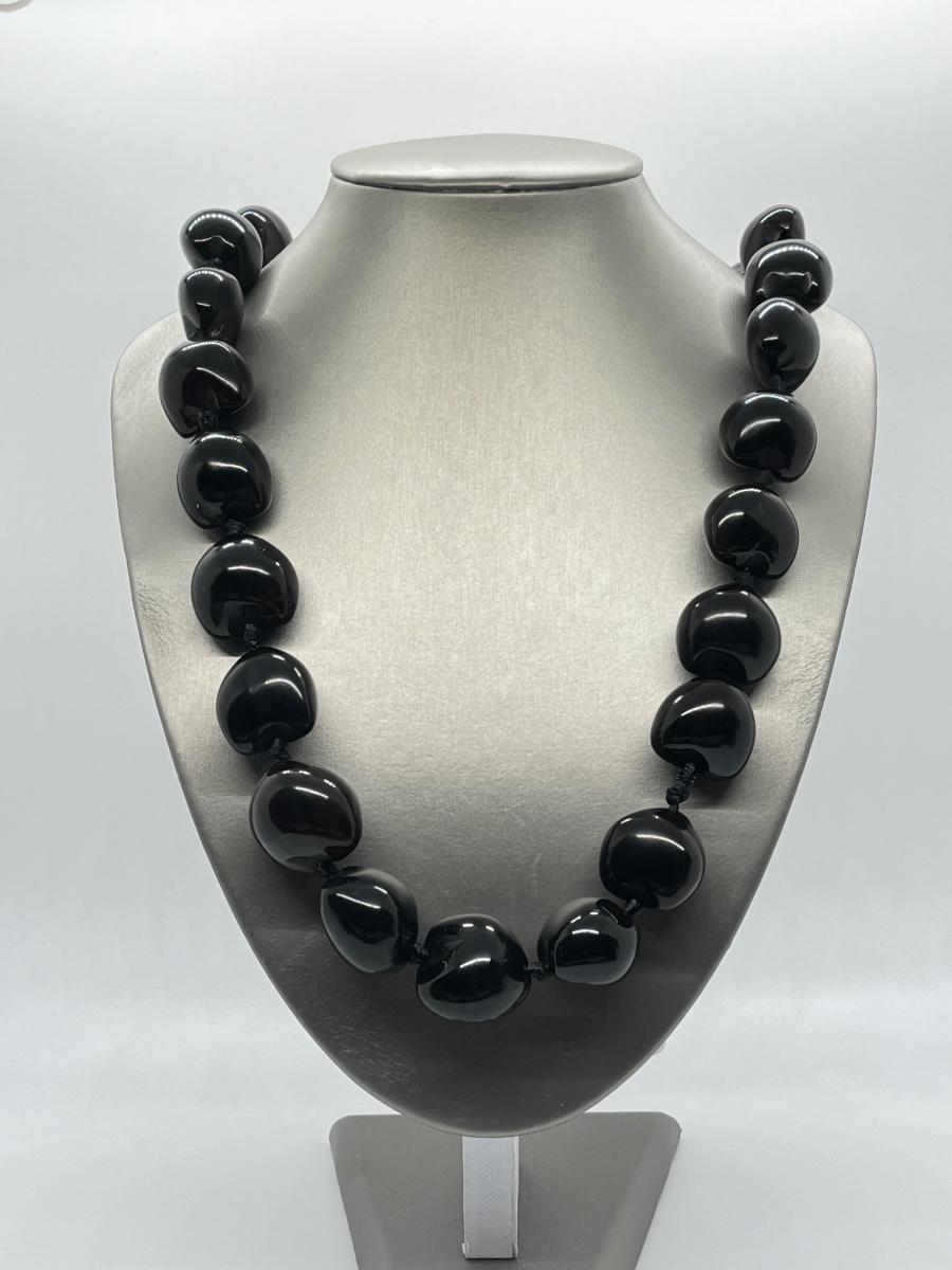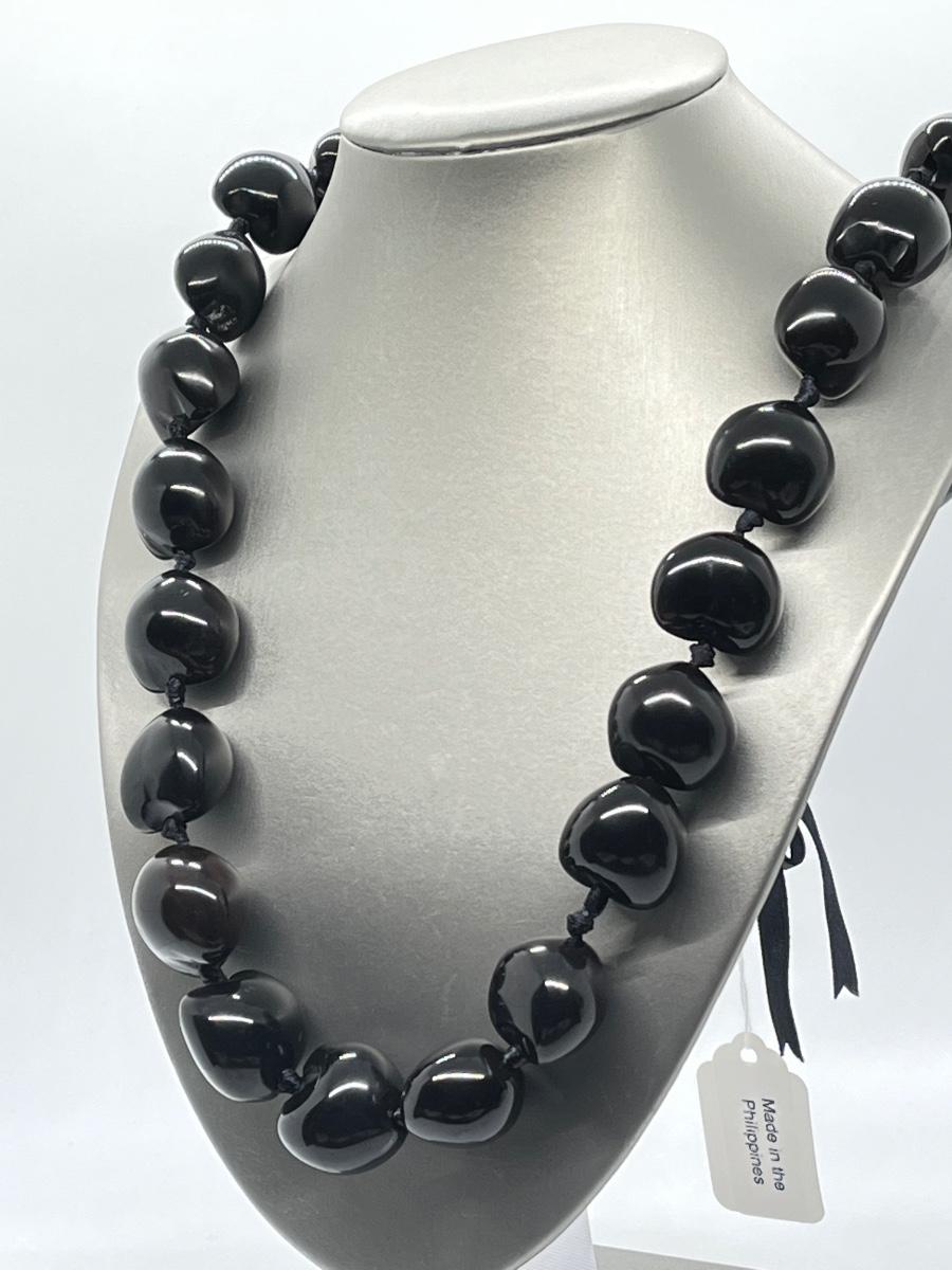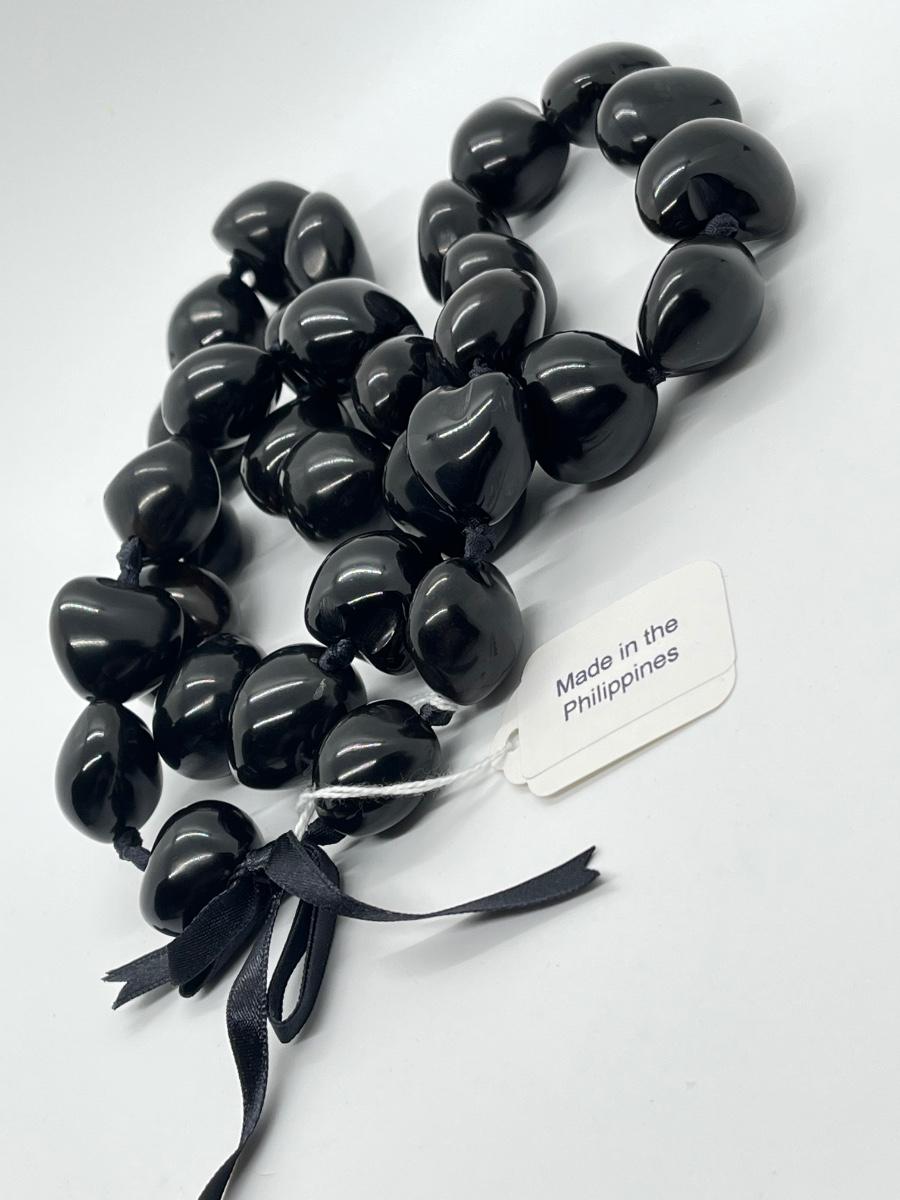 LOT 135: Lee Sands Kukui Nut 33" Ribbon Necklace & Earrings Set