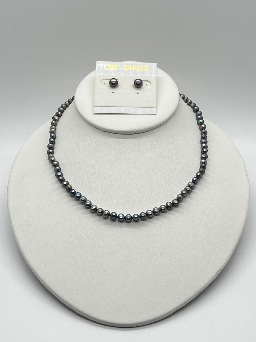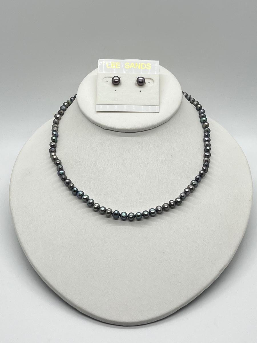 LOT 142: Lee Sands Cultured Pearl 18" Necklace and Earrings Set