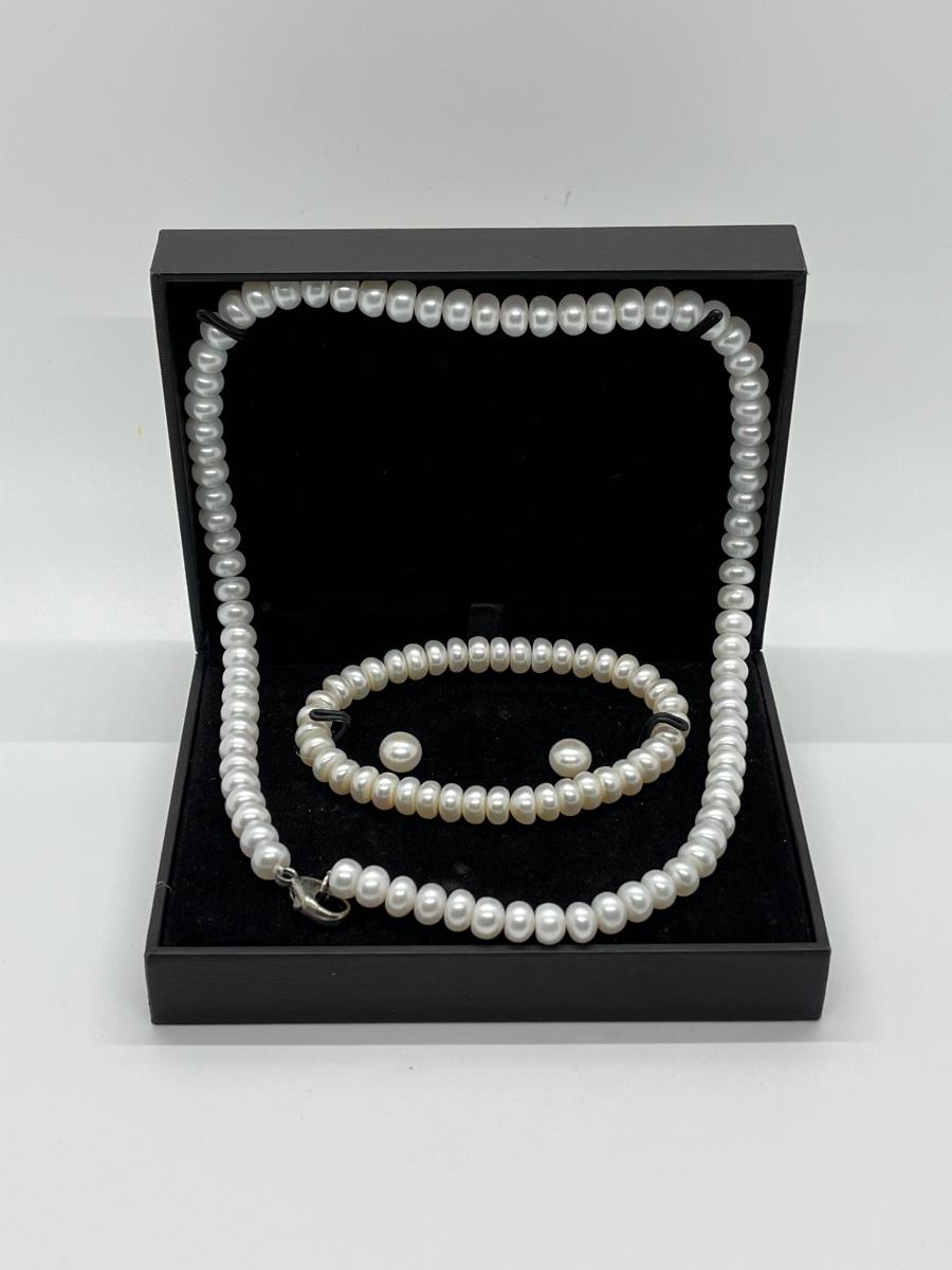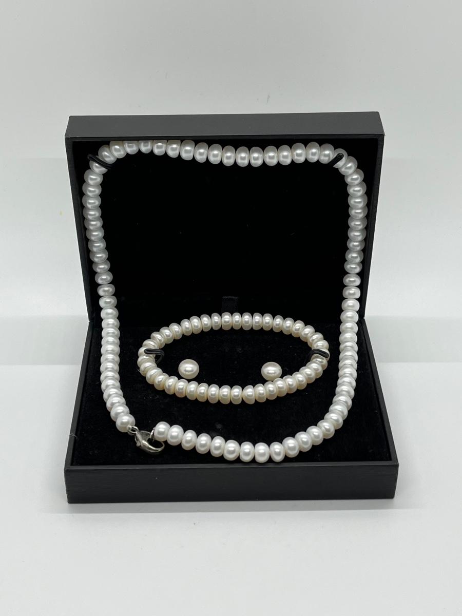LOT 147: Honora Cultured Freshwater Pearl Three Piece Wardrobe Set - 18" Necklace, Stretch Bracelet, Stud Earrings