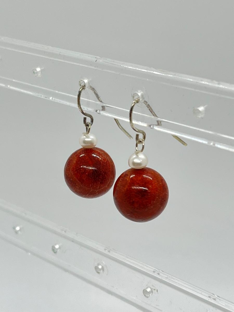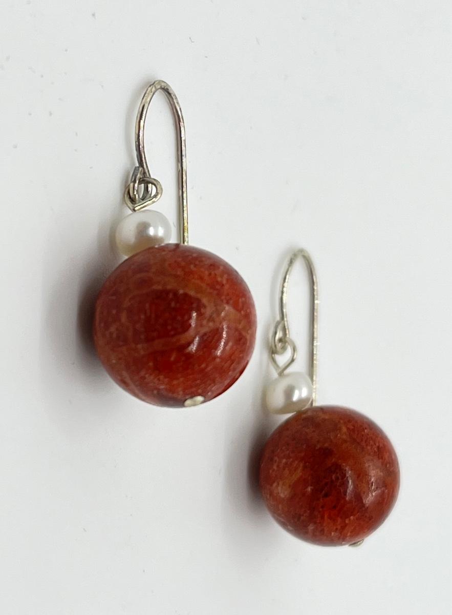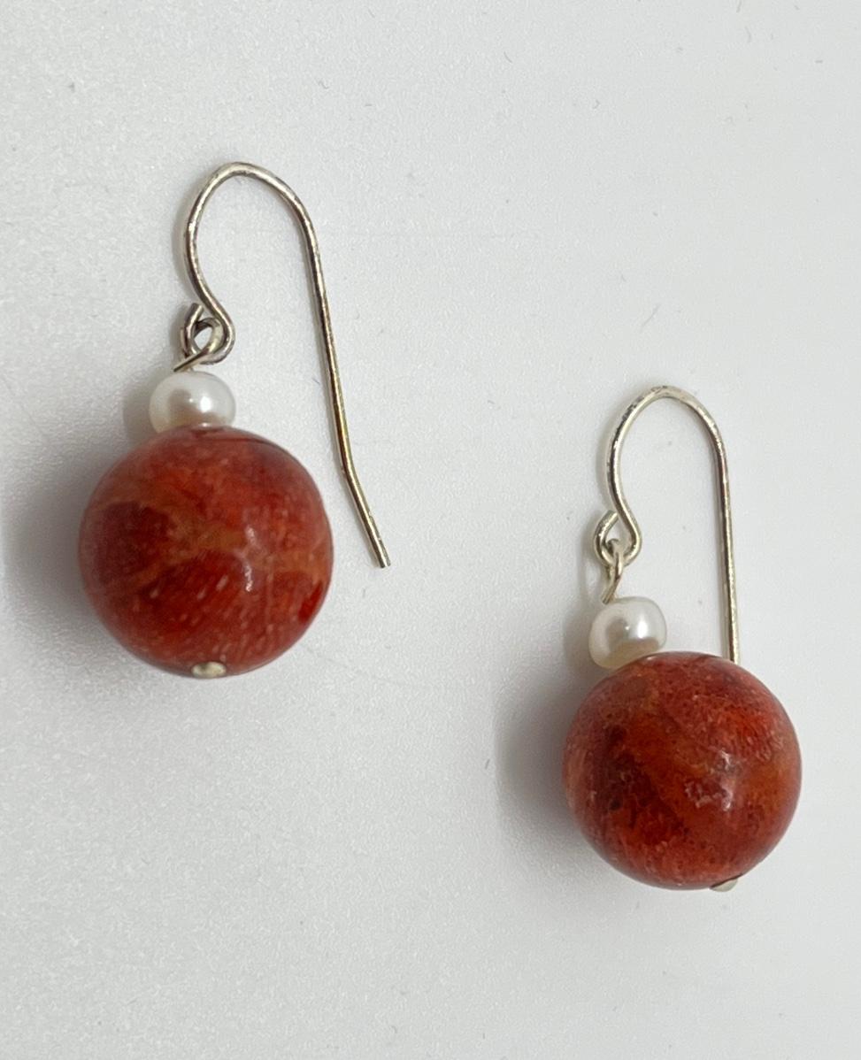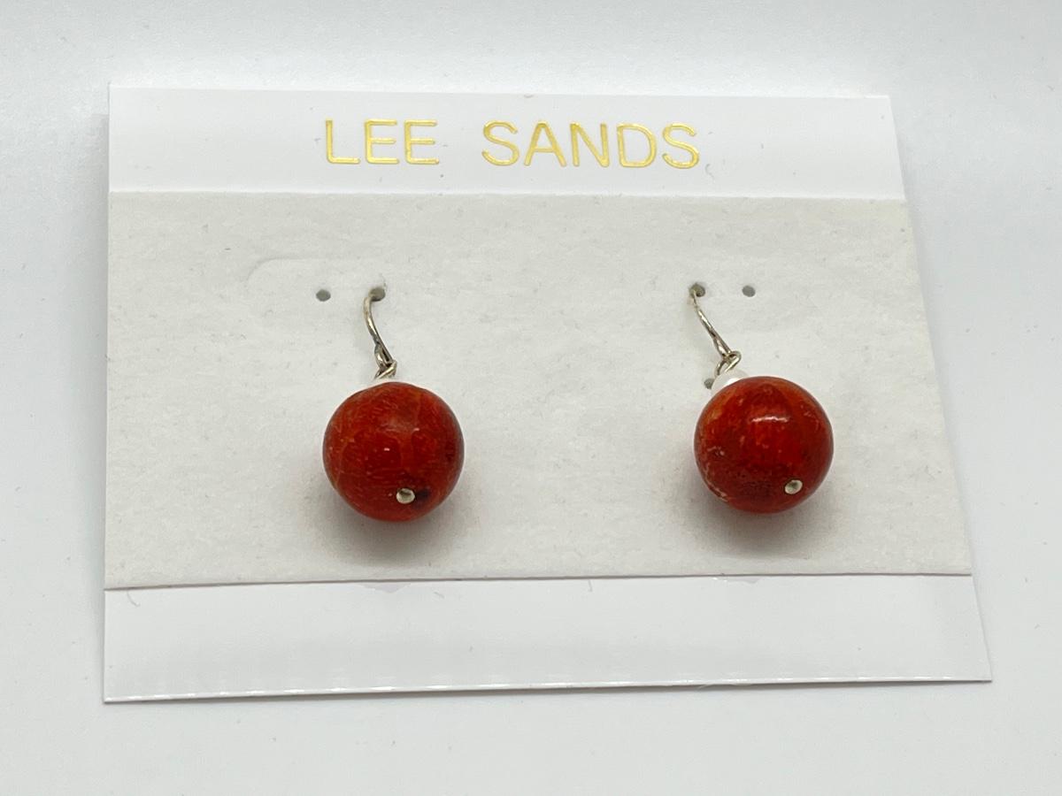 LOT 163: Lee Sands Red Sponge Coral Bead Earrings