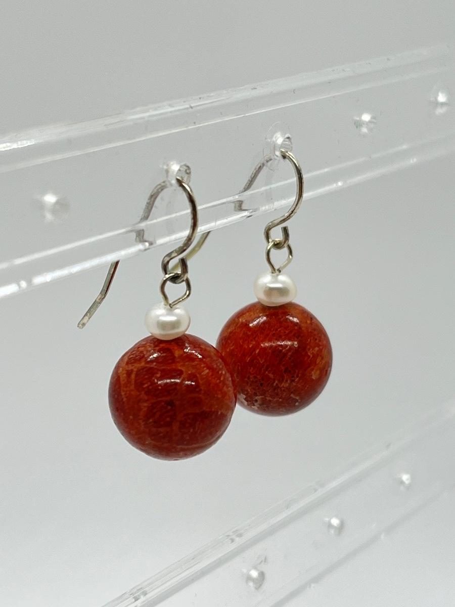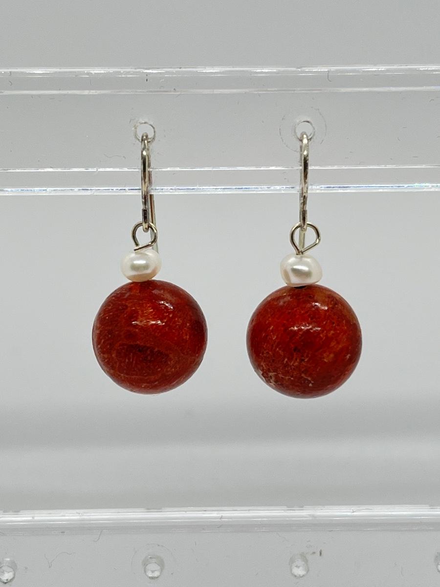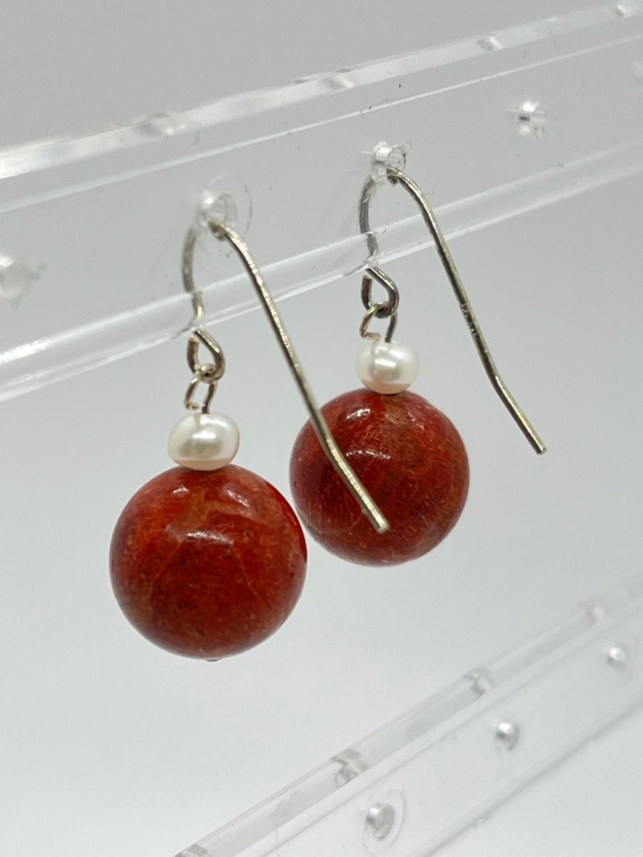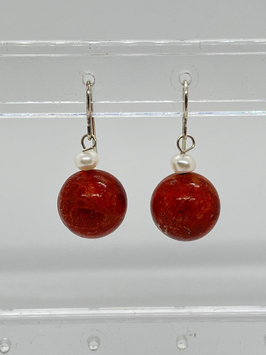 LOT 163: Lee Sands Red Sponge Coral Bead Earrings