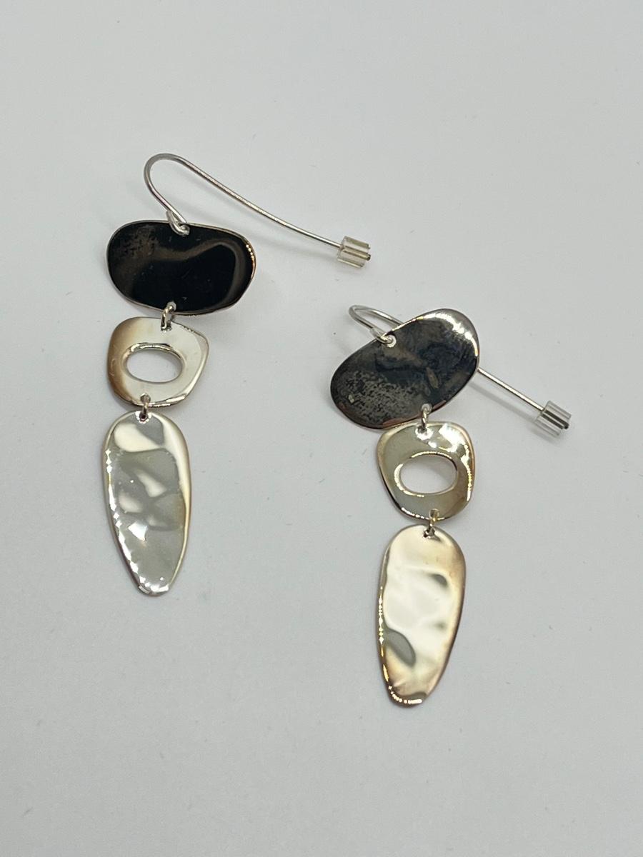 LOT 168: RLM Studio Sterling Silver Hammered Three Tier Drop Earrings
