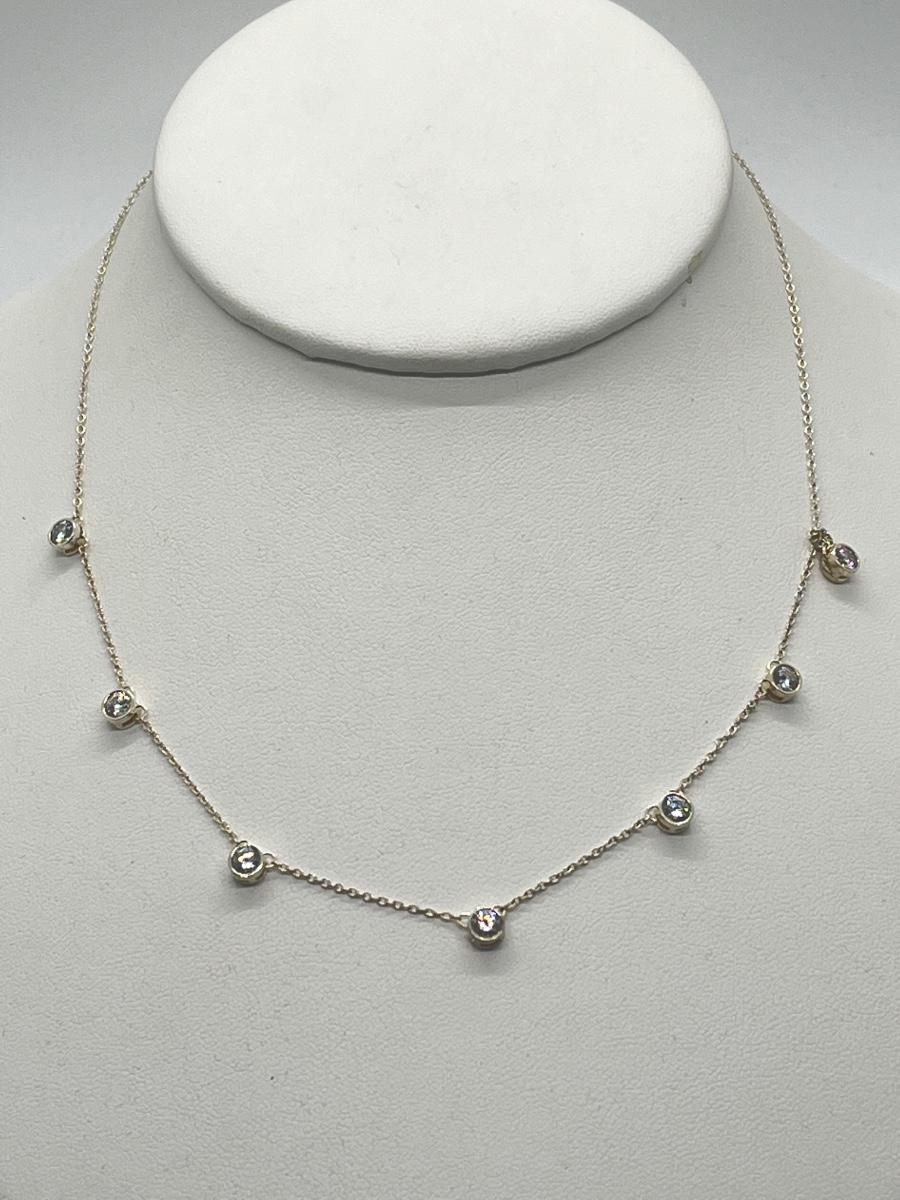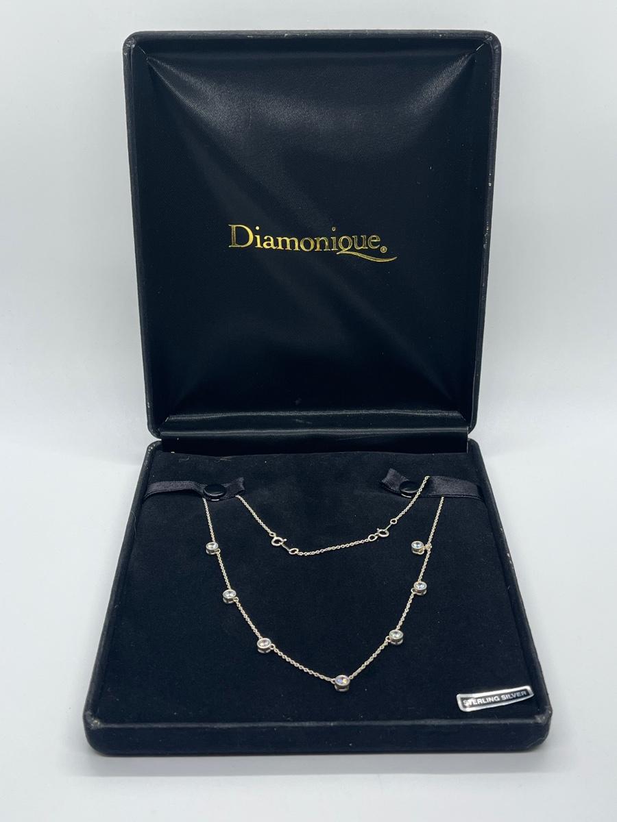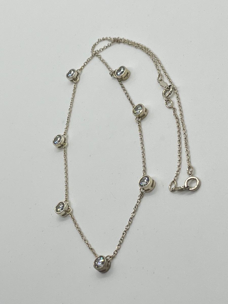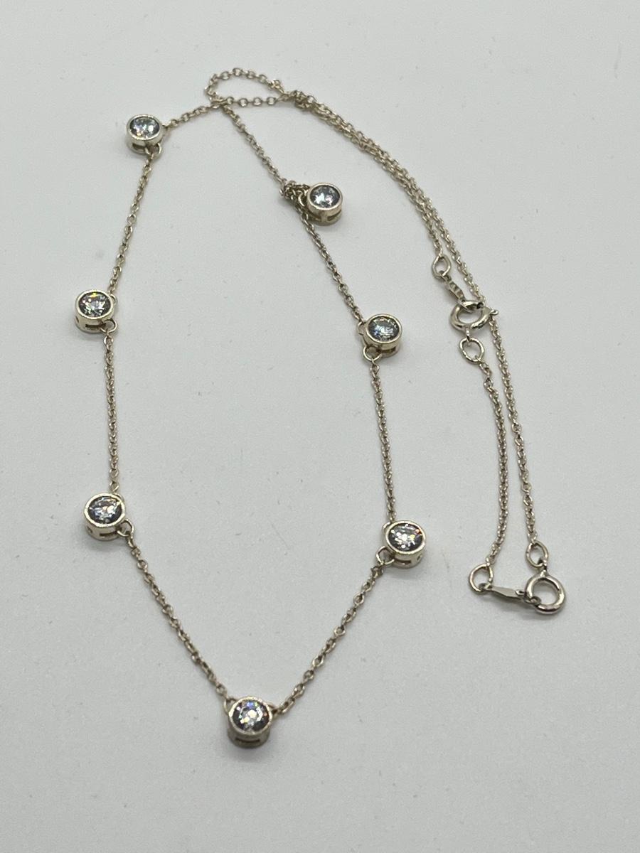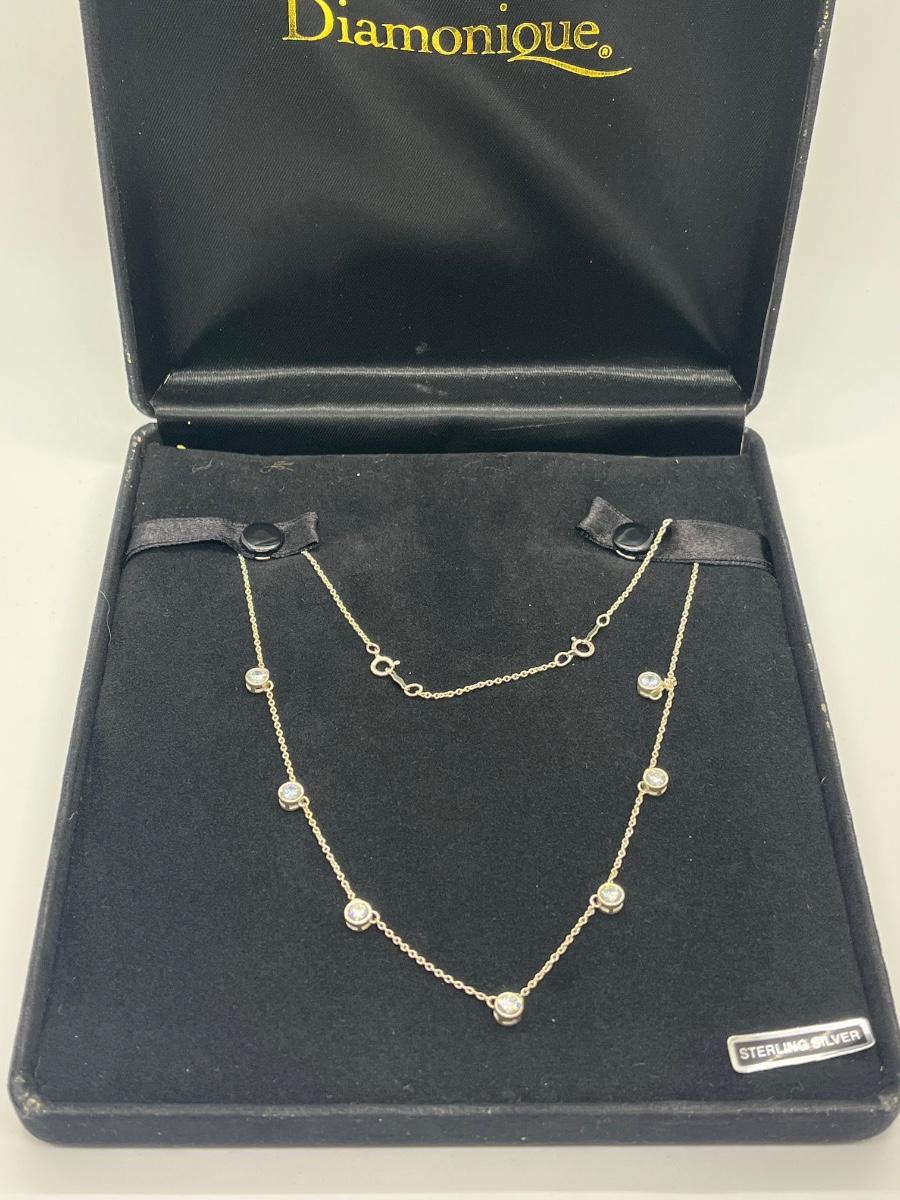 LOT 181: Sterling Silver Diamonique 7-Stone Bezel Set Pendant on 15" Necklace w/ 2" Ext.
