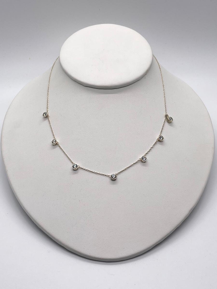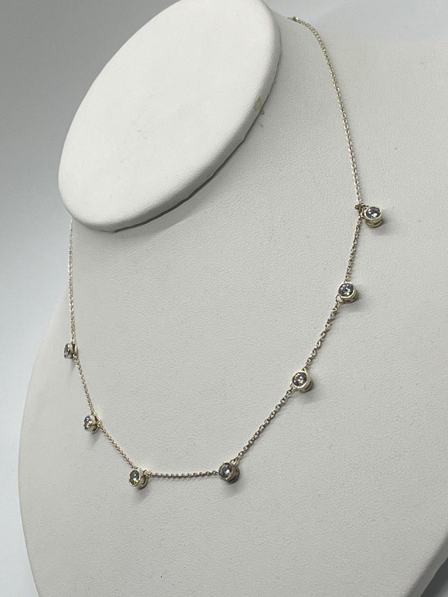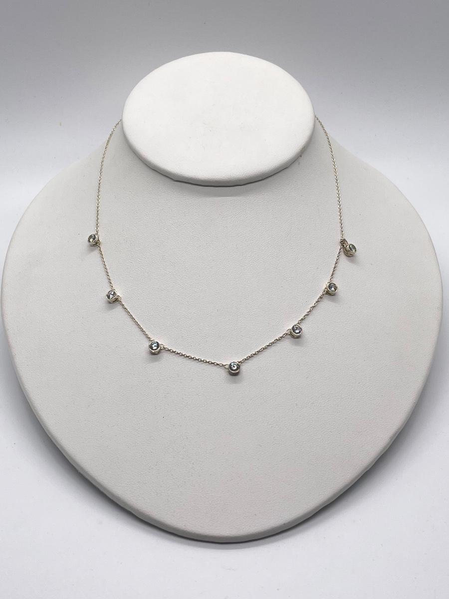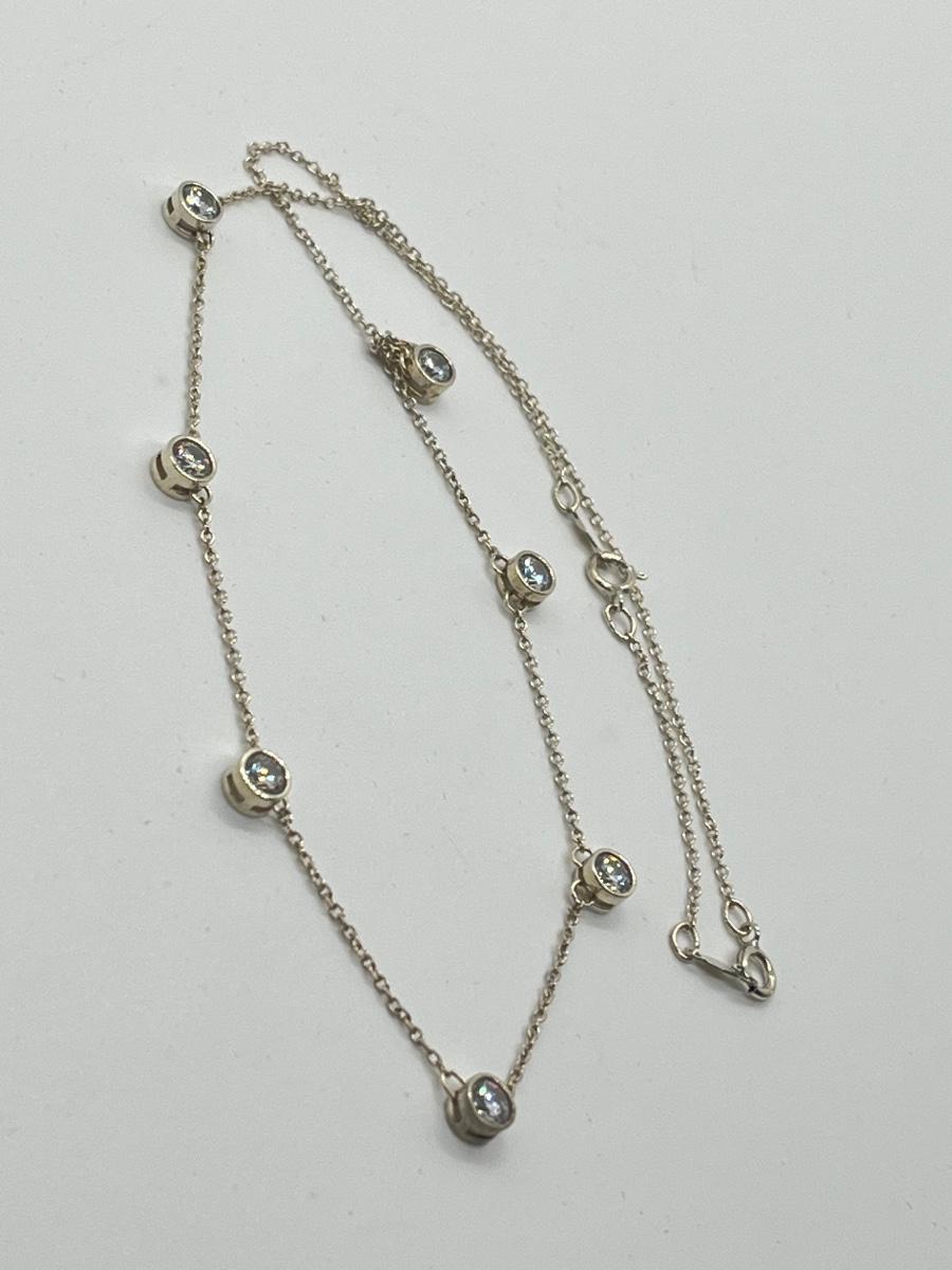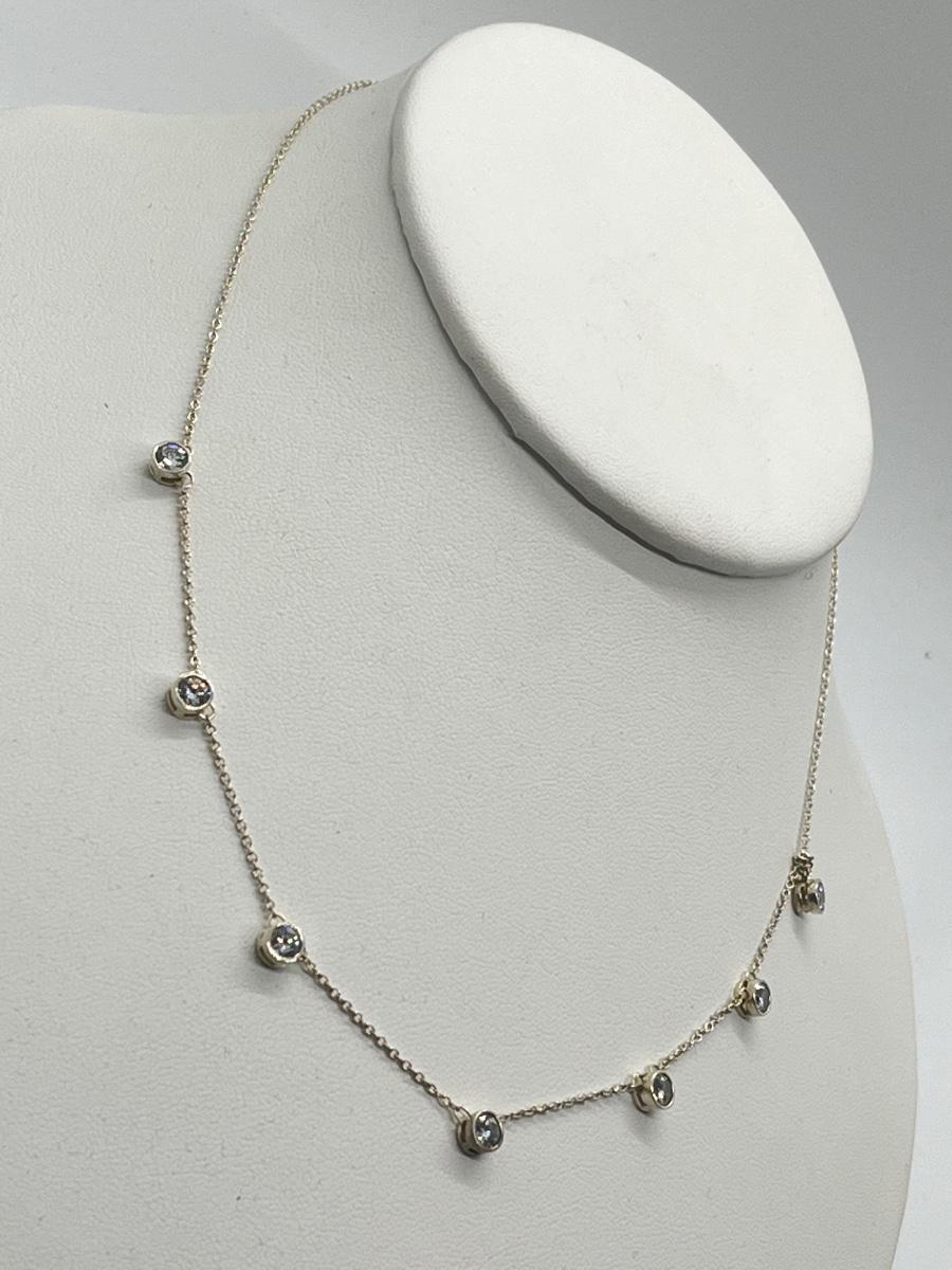 LOT 181: Sterling Silver Diamonique 7-Stone Bezel Set Pendant on 15" Necklace w/ 2" Ext.