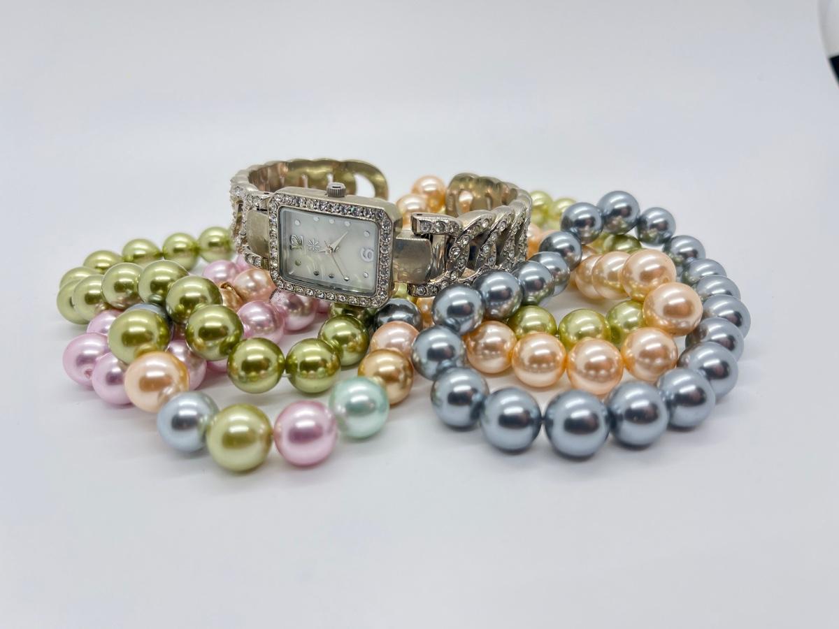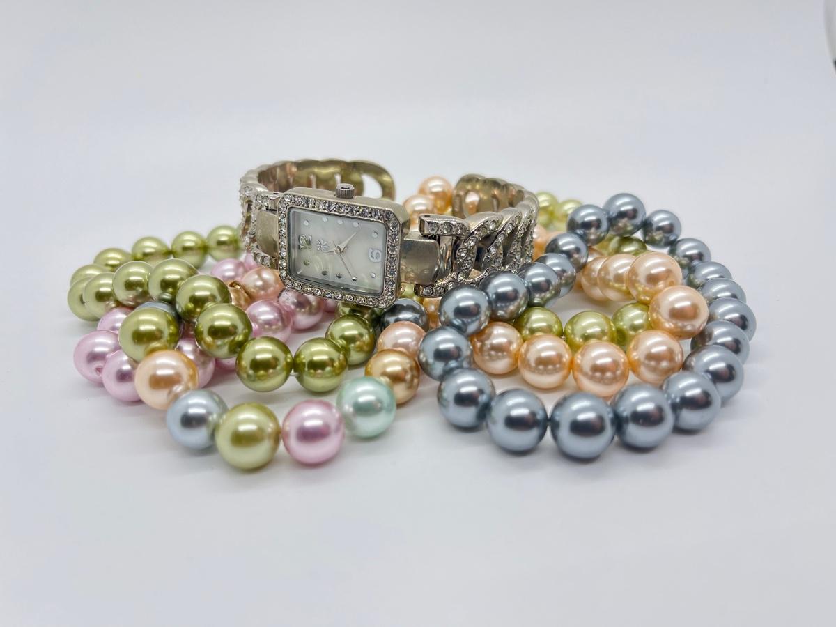 LOT 200: Six Beaded Stretch Bracelets & Isaac Mizrahi Fashion Watch (Needs Battery - No Boxes)