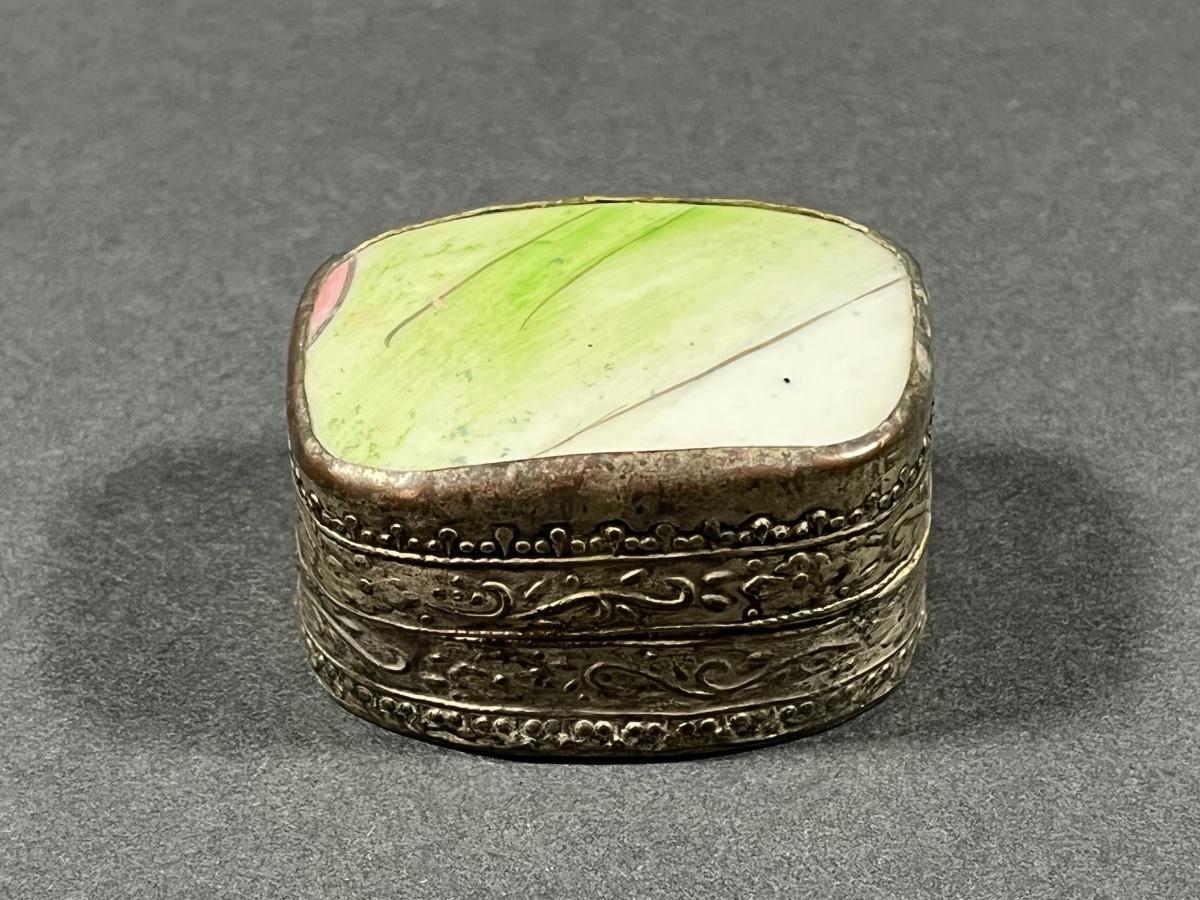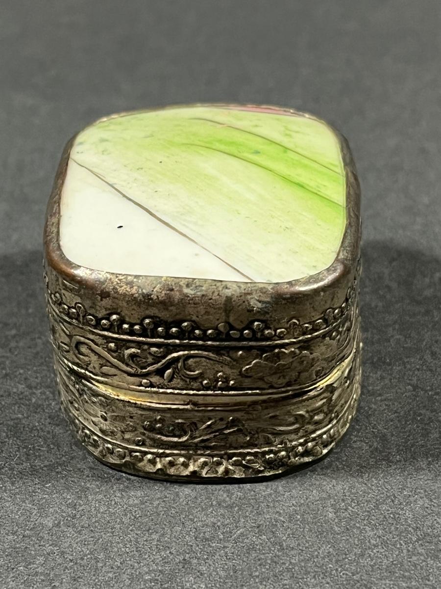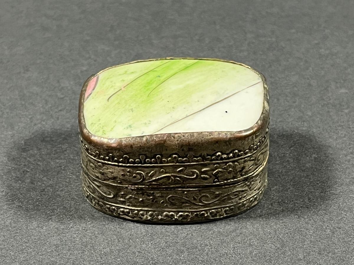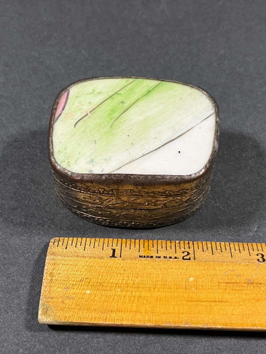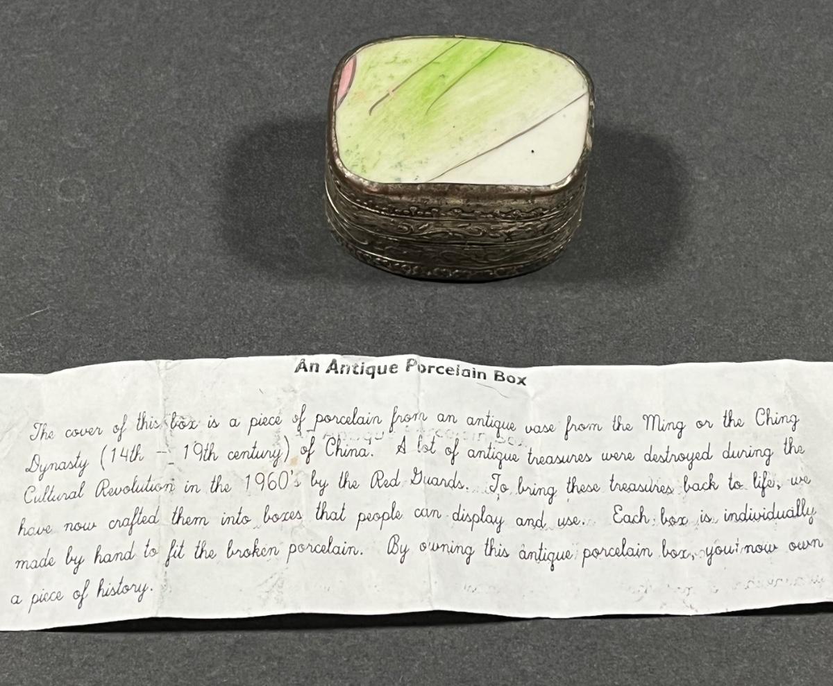 LOT 13: Vintage Silver Box Inlaid with Shard of Antique Porcelain From Destroyed Chinese Vase - 97.2 gtw