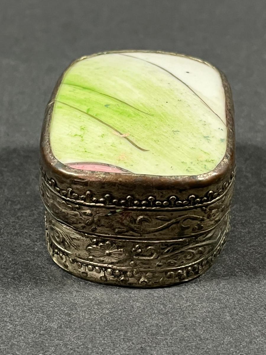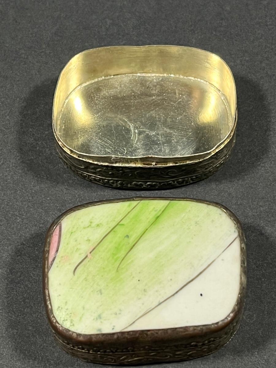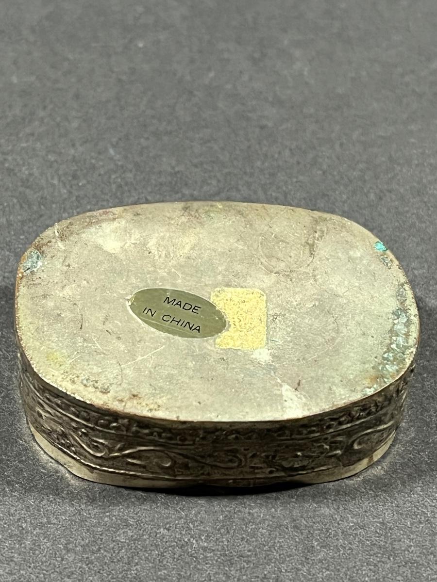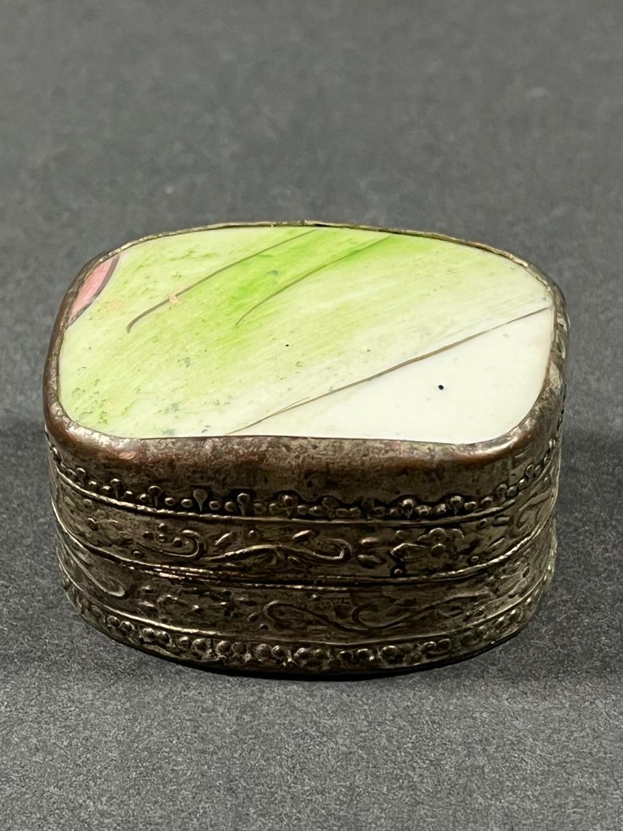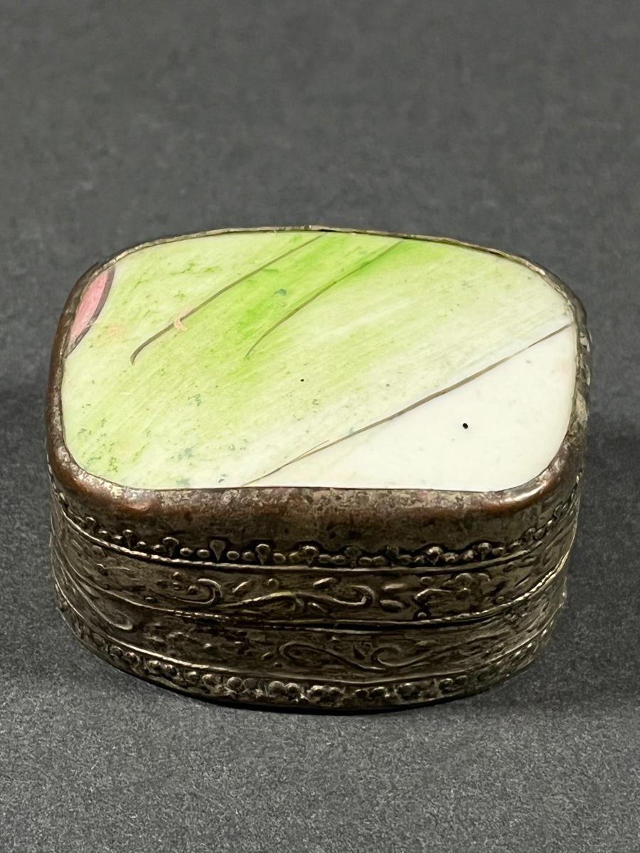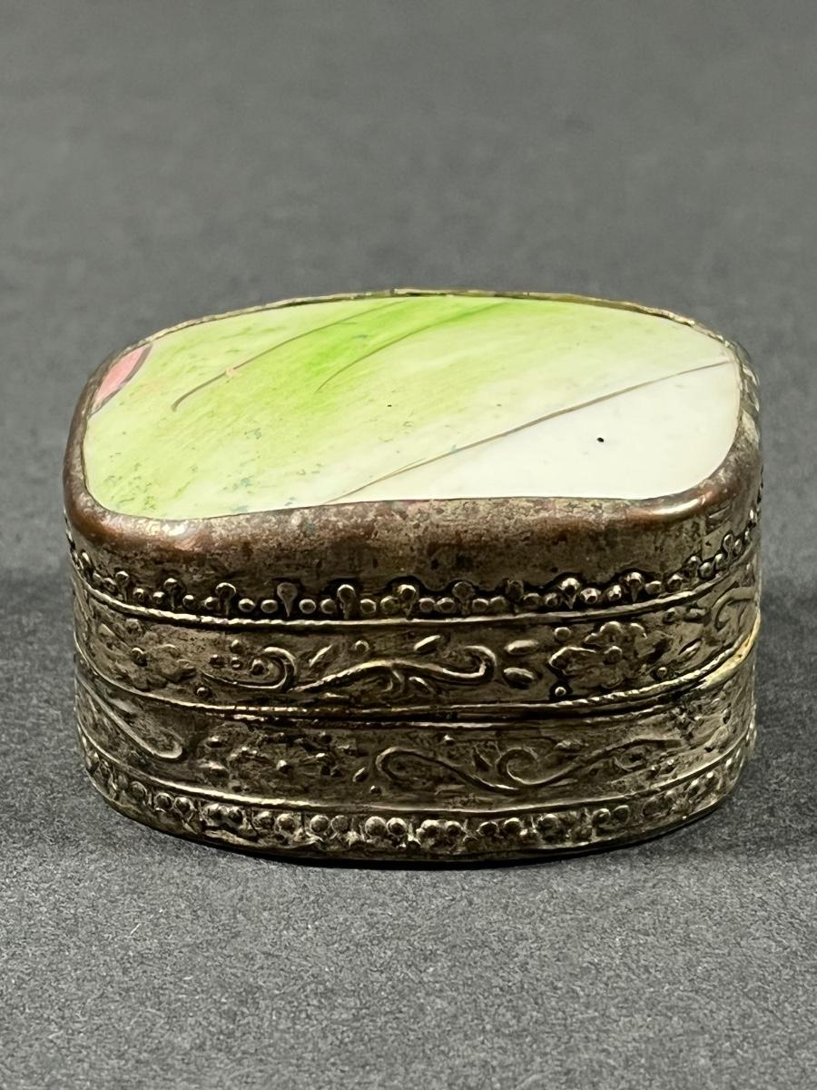 LOT 13: Vintage Silver Box Inlaid with Shard of Antique Porcelain From Destroyed Chinese Vase - 97.2 gtw
