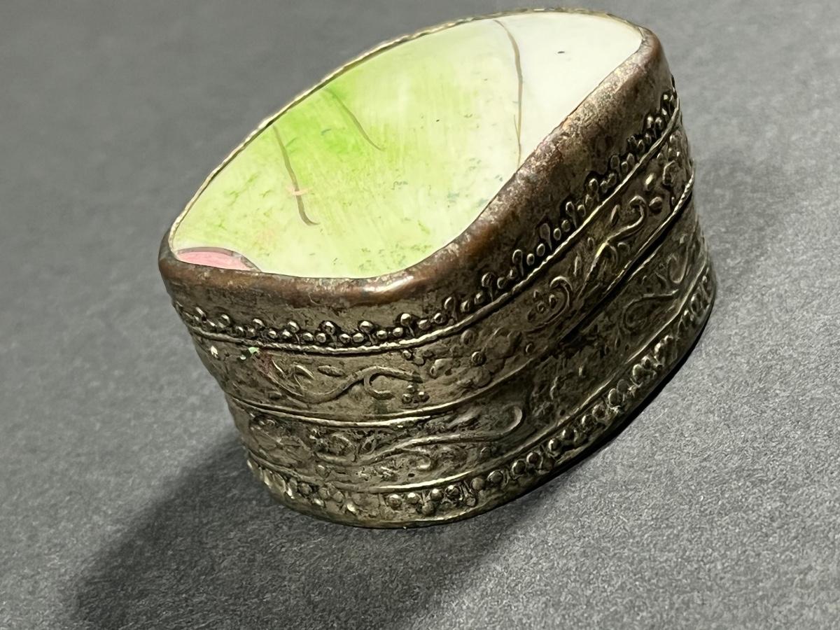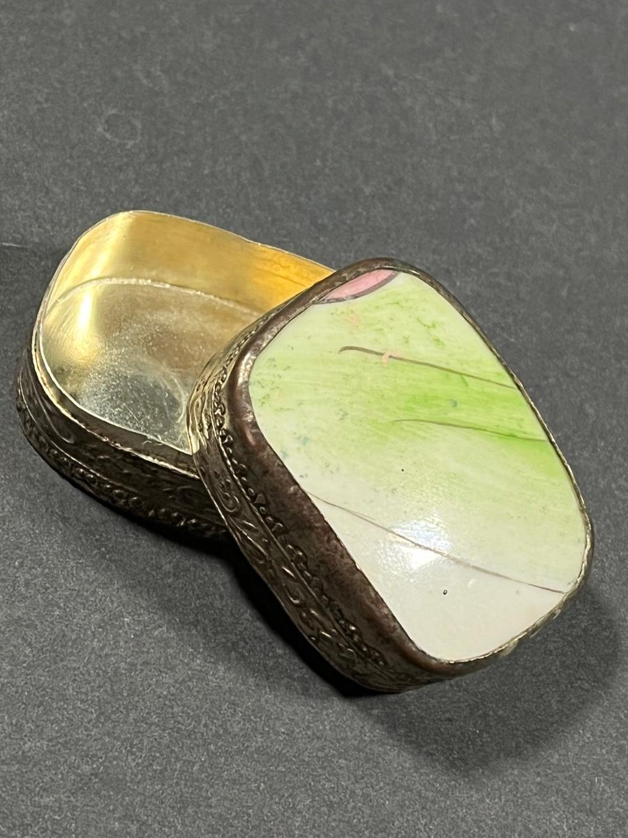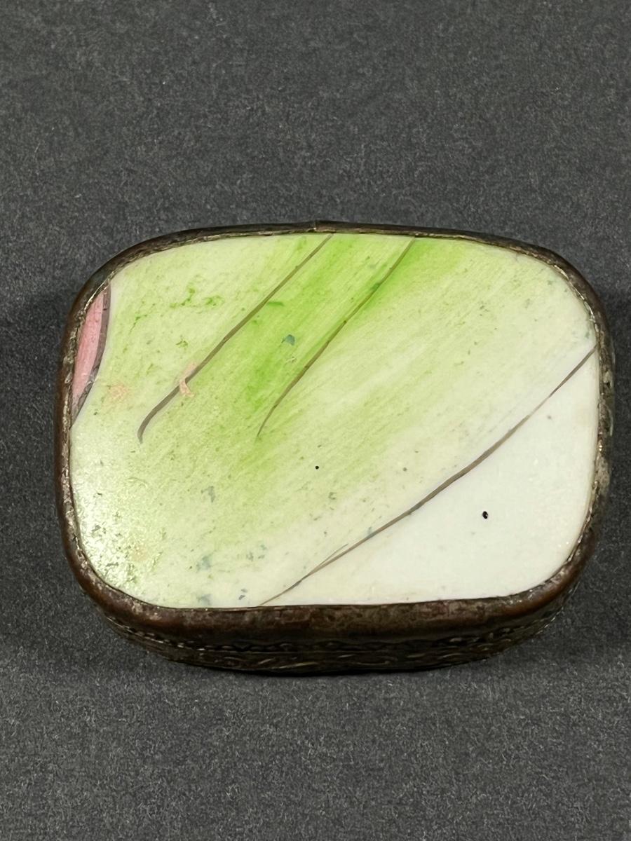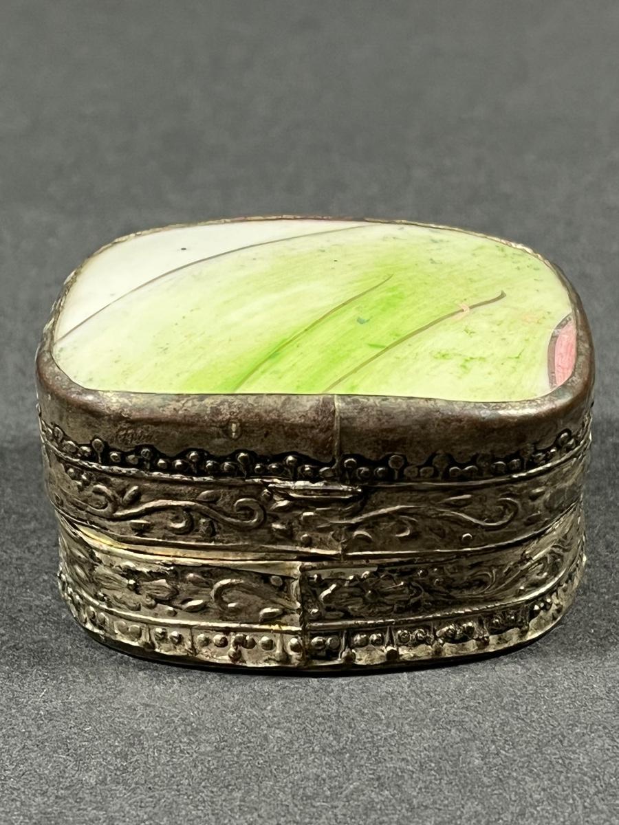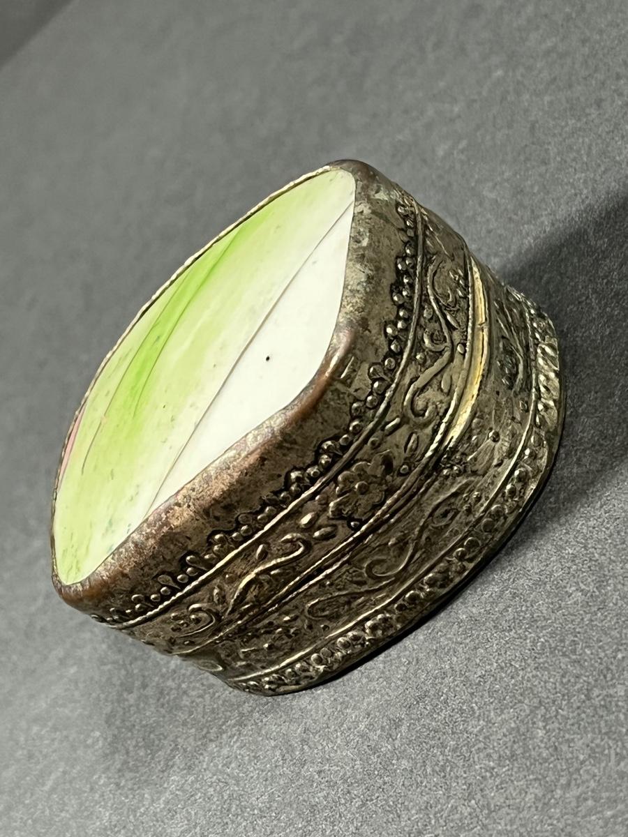 LOT 13: Vintage Silver Box Inlaid with Shard of Antique Porcelain From Destroyed Chinese Vase - 97.2 gtw