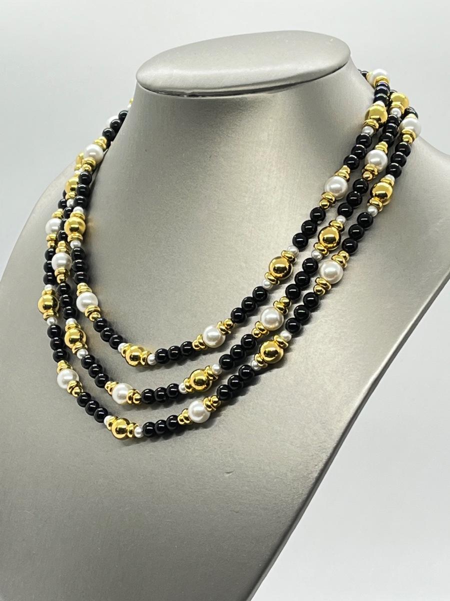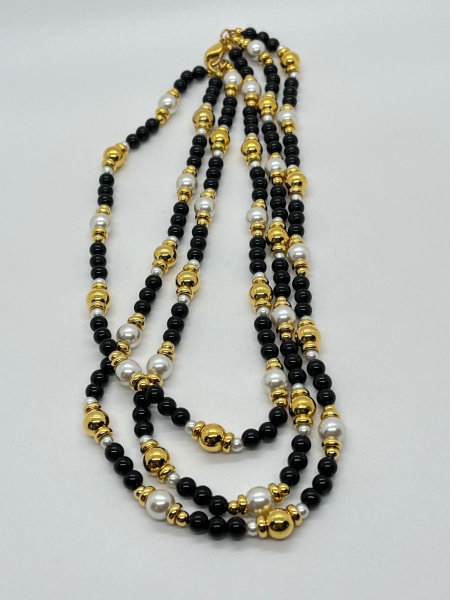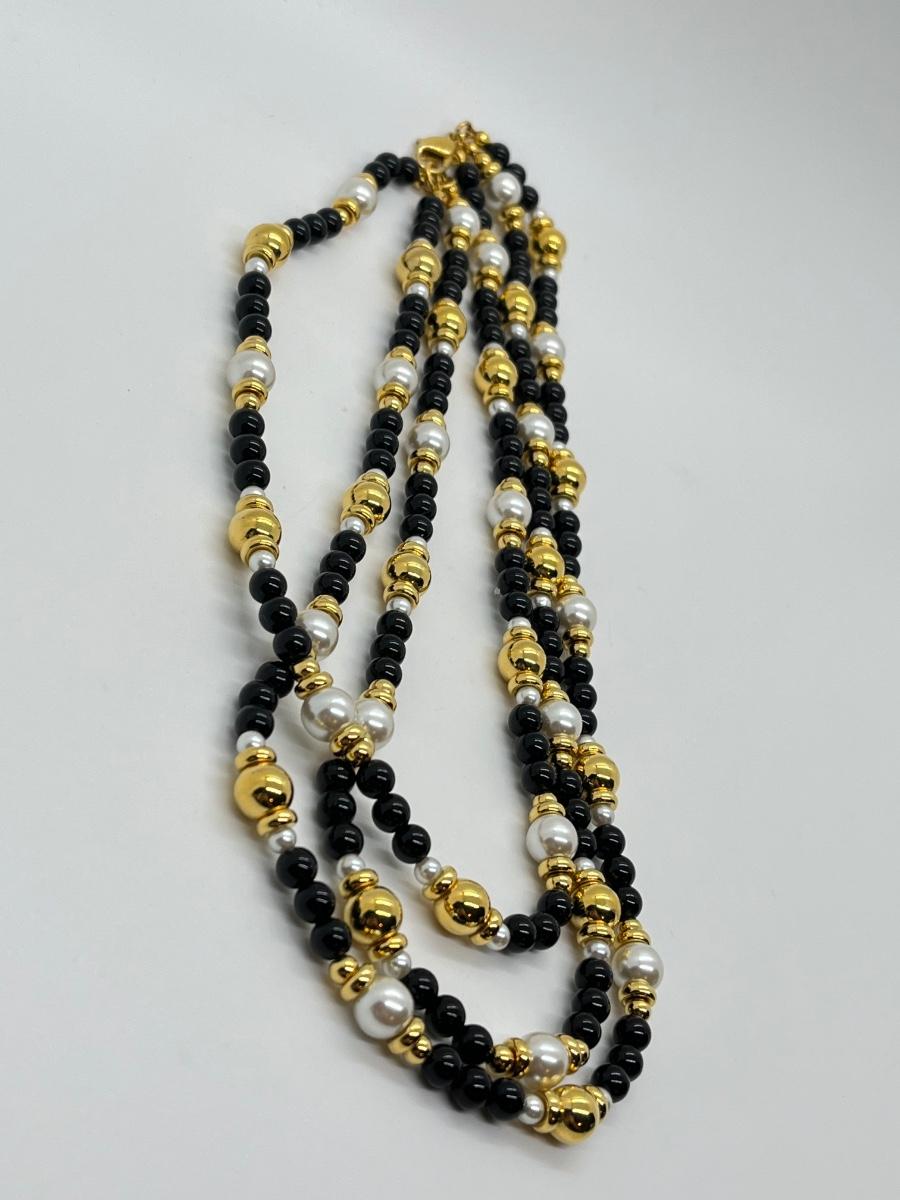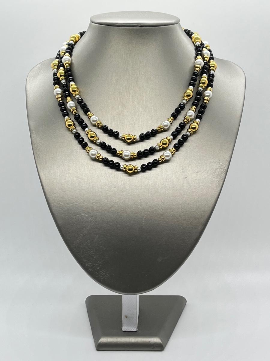 LOT 28: Faux Pearl & Black and Gold Bead 17" Tri-Strand
