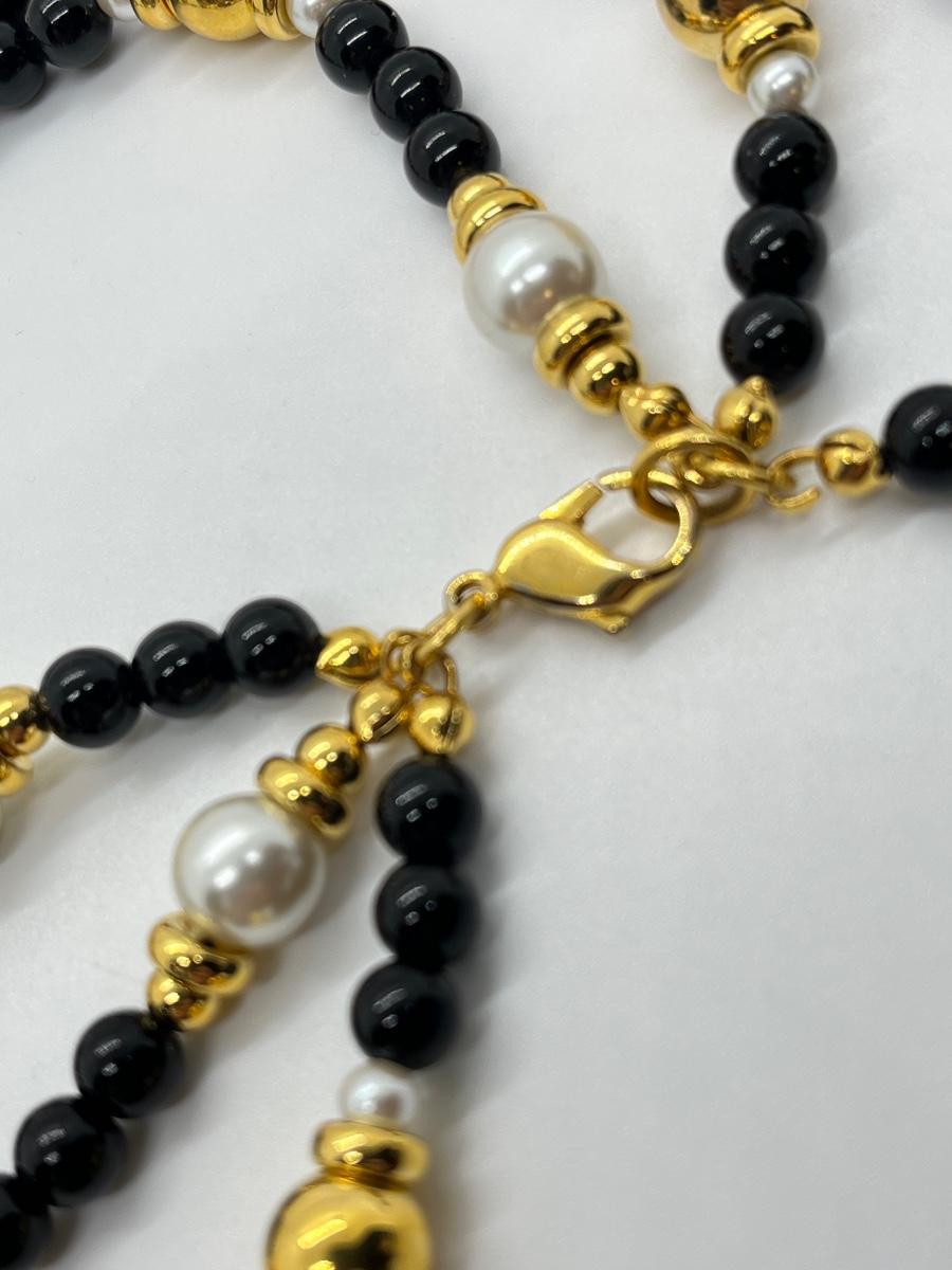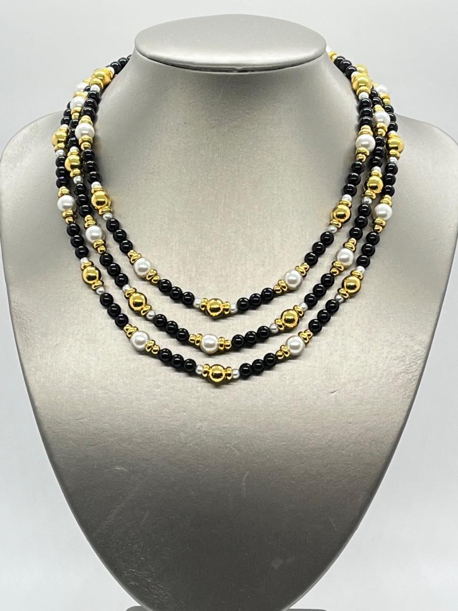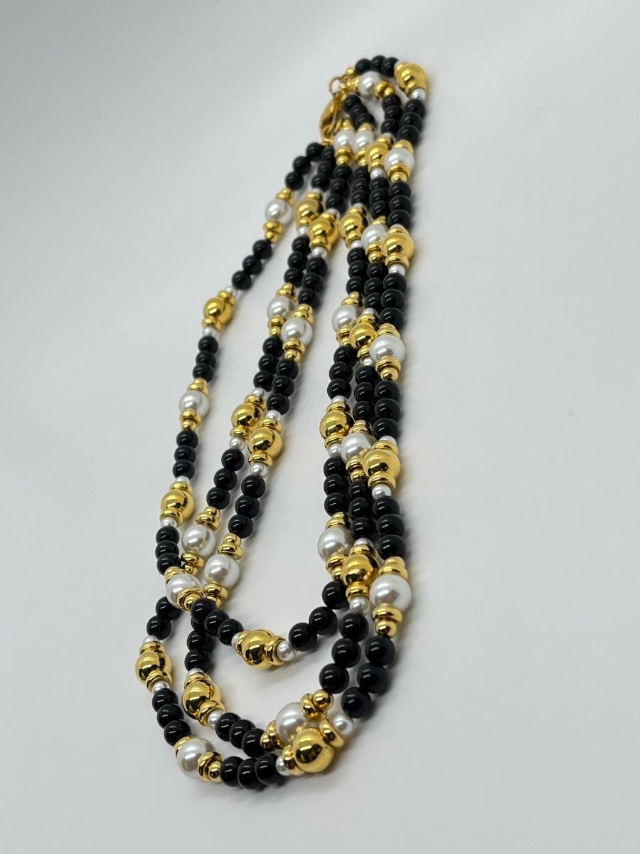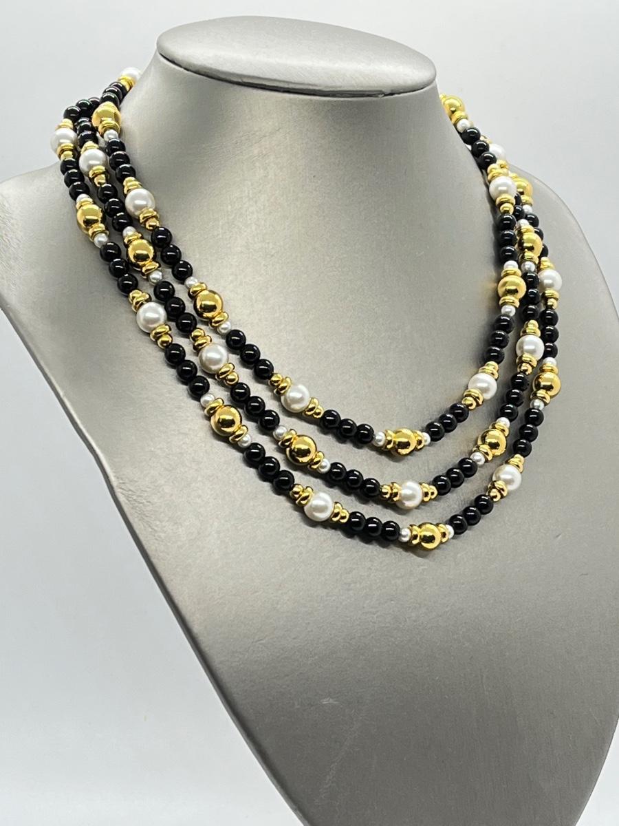LOT 28: Faux Pearl & Black and Gold Bead 17" Tri-Strand