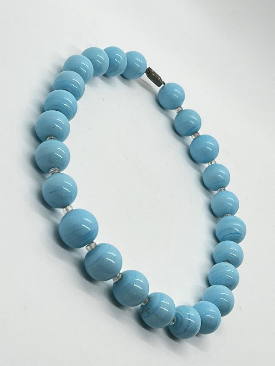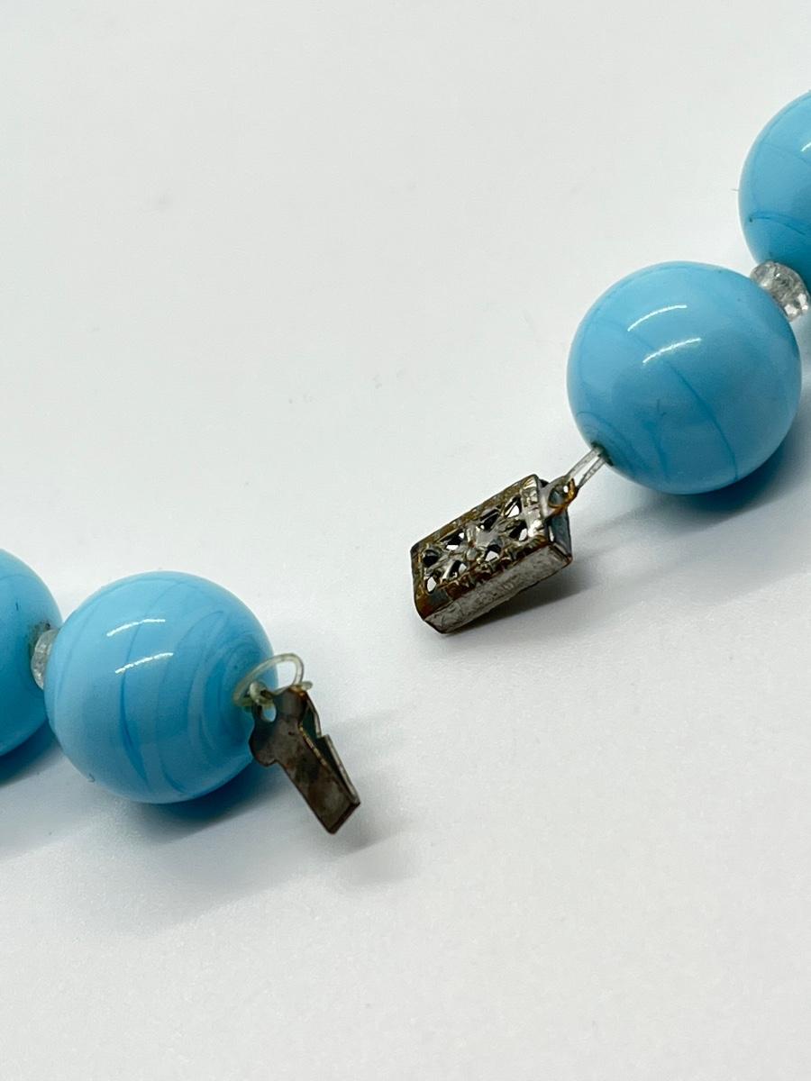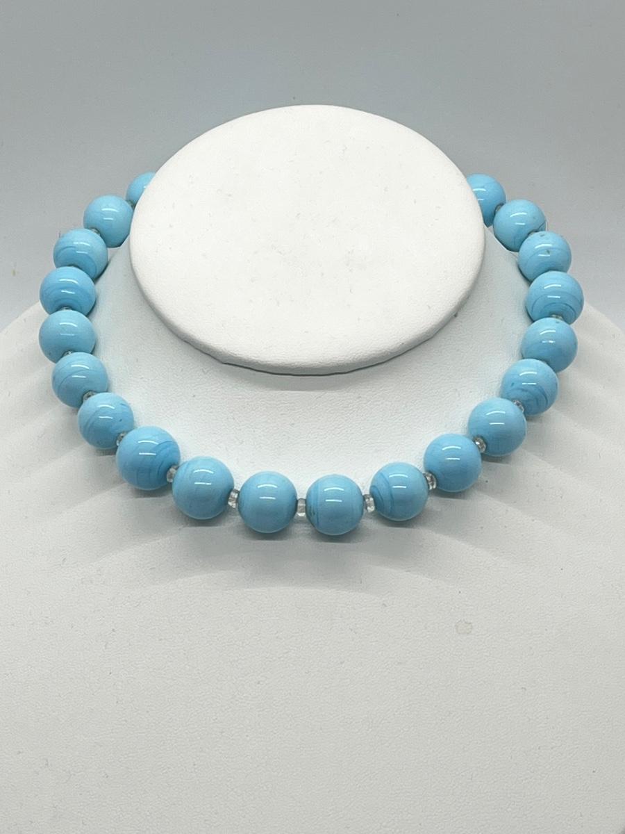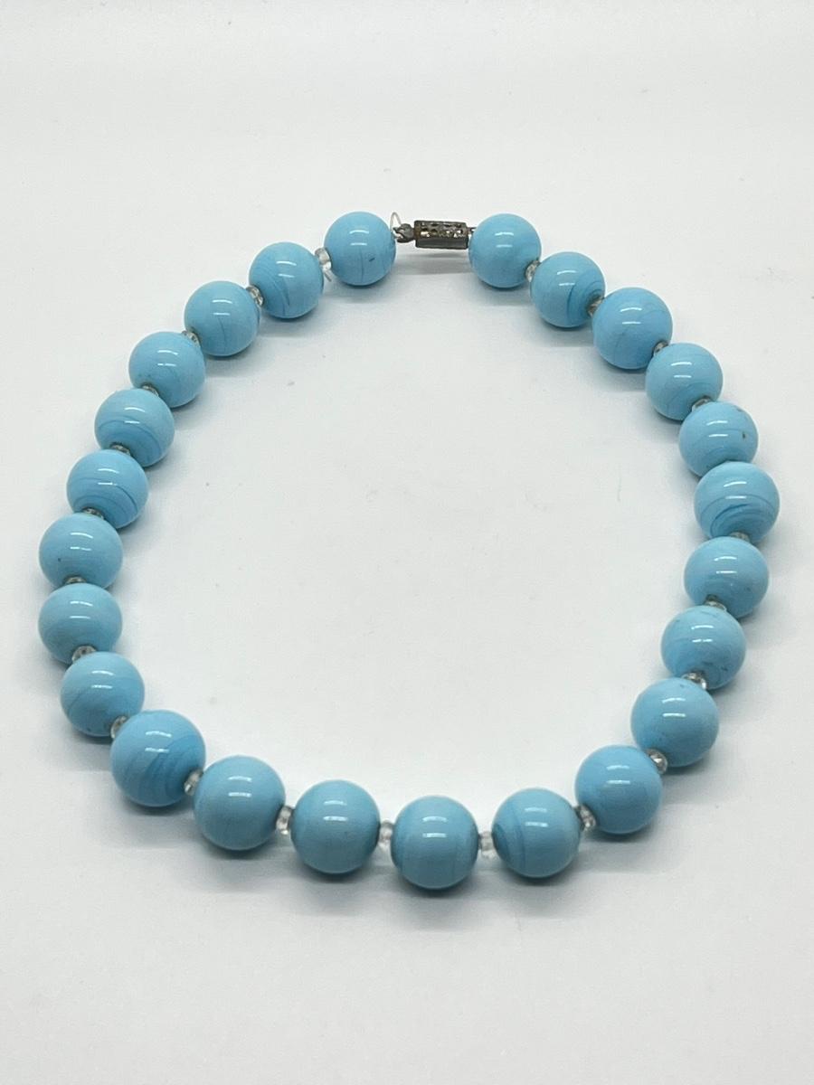 LOT 33: Vintage Teal Glass Bead Choker-Style 15" Necklace