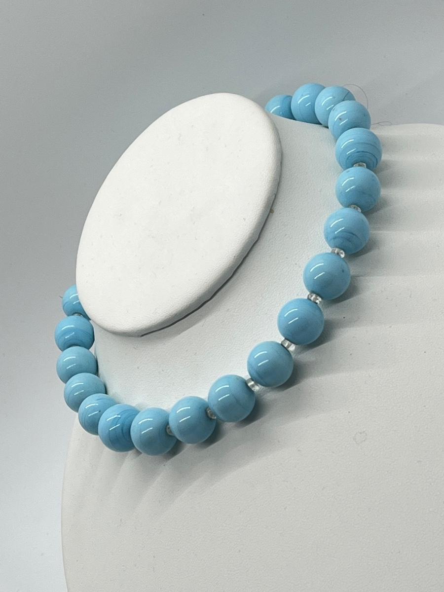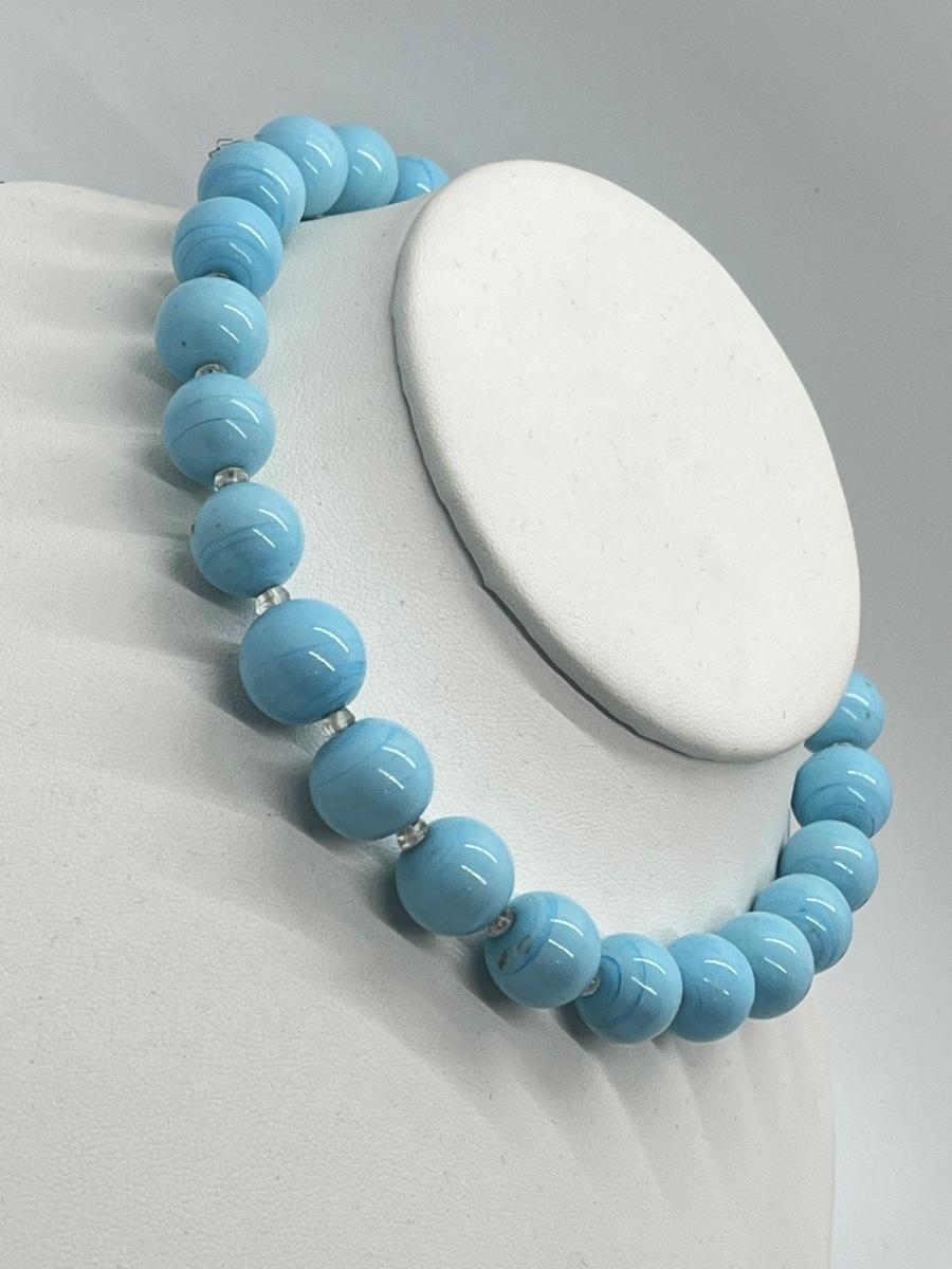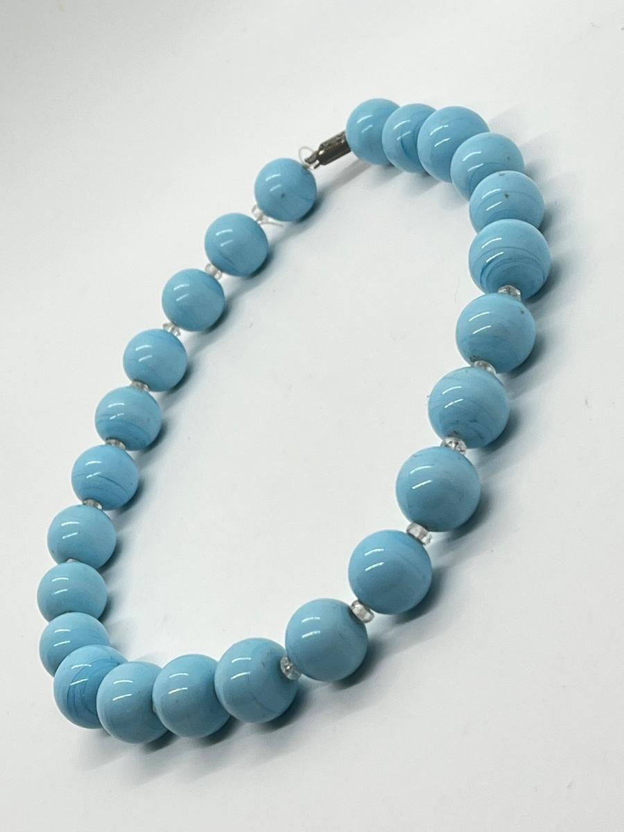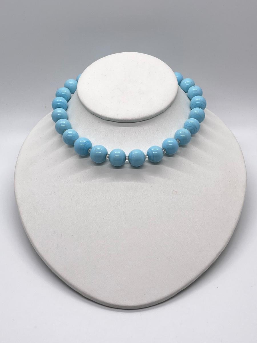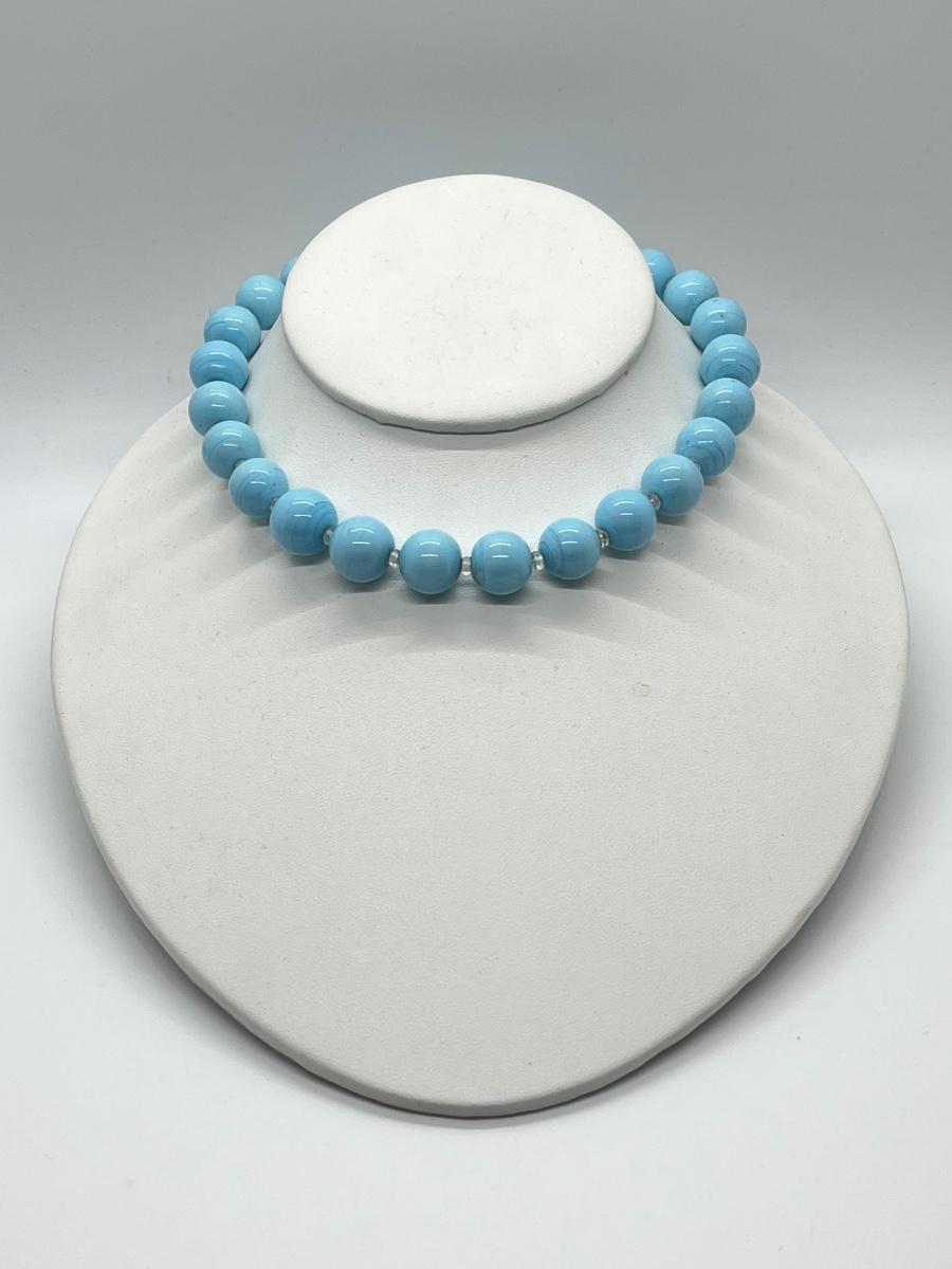 LOT 33: Vintage Teal Glass Bead Choker-Style 15" Necklace