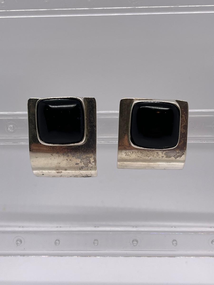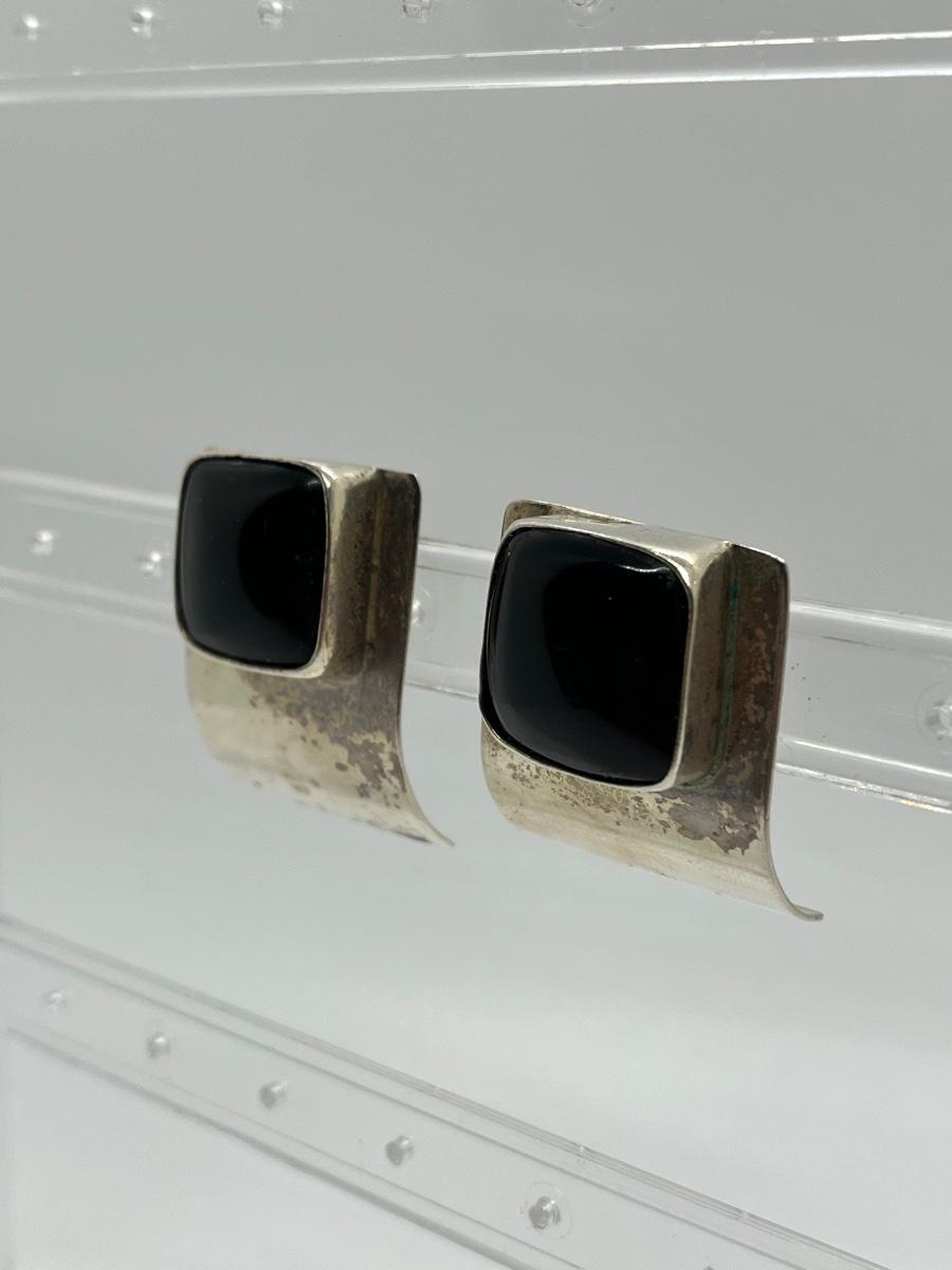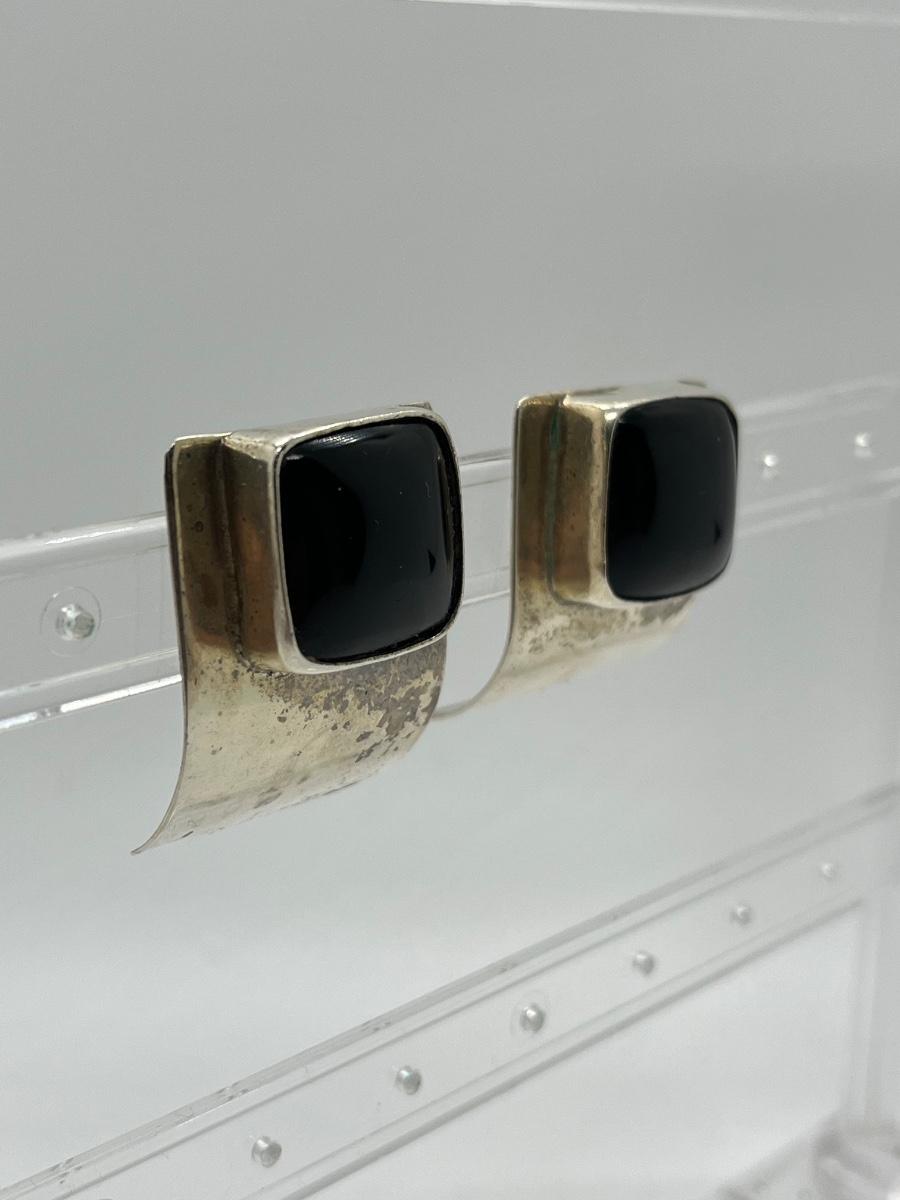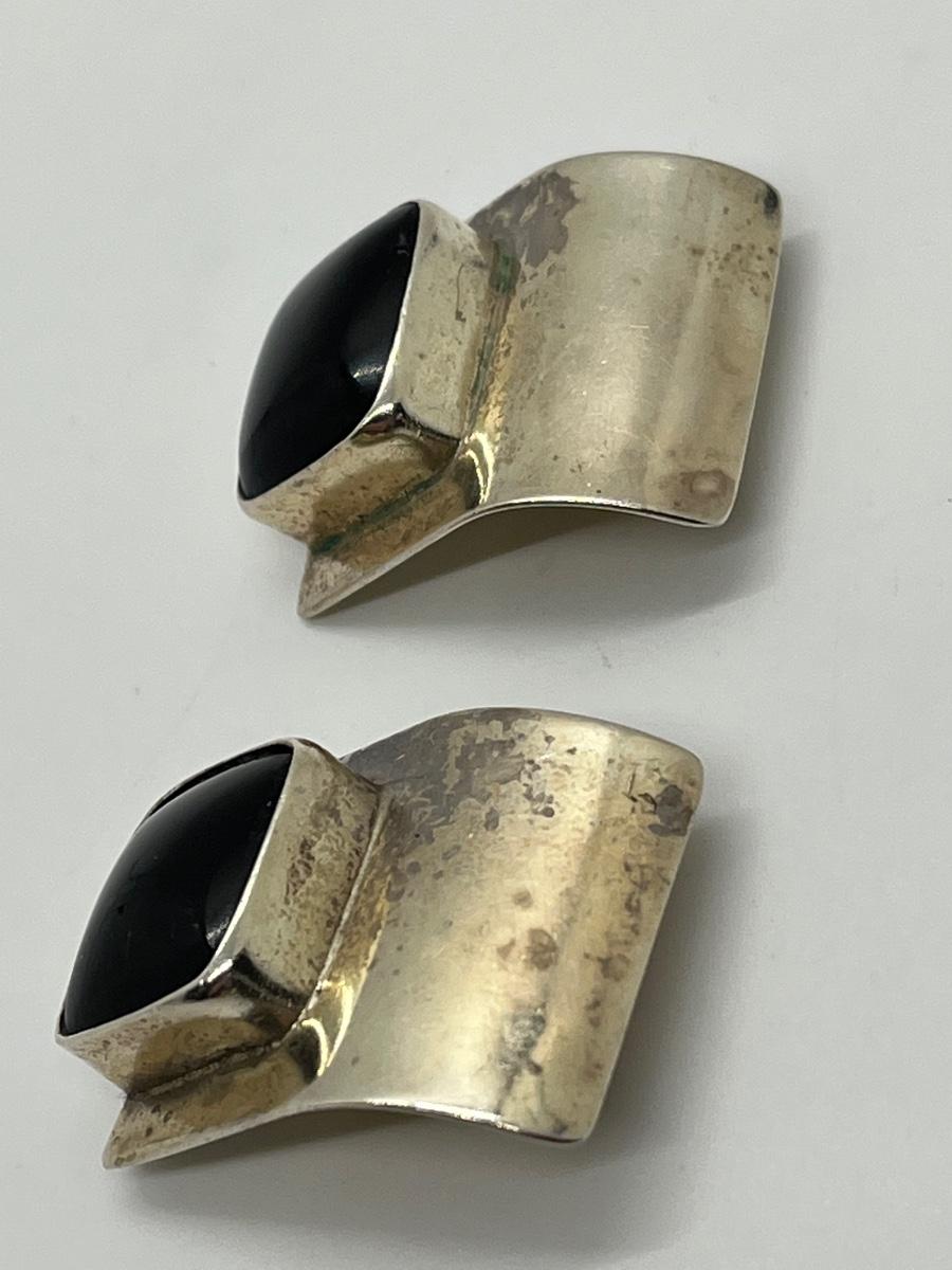 LOT 42: Sterling Silver Mexico Jewelry - Onyx Earrings & Swirl Brooch