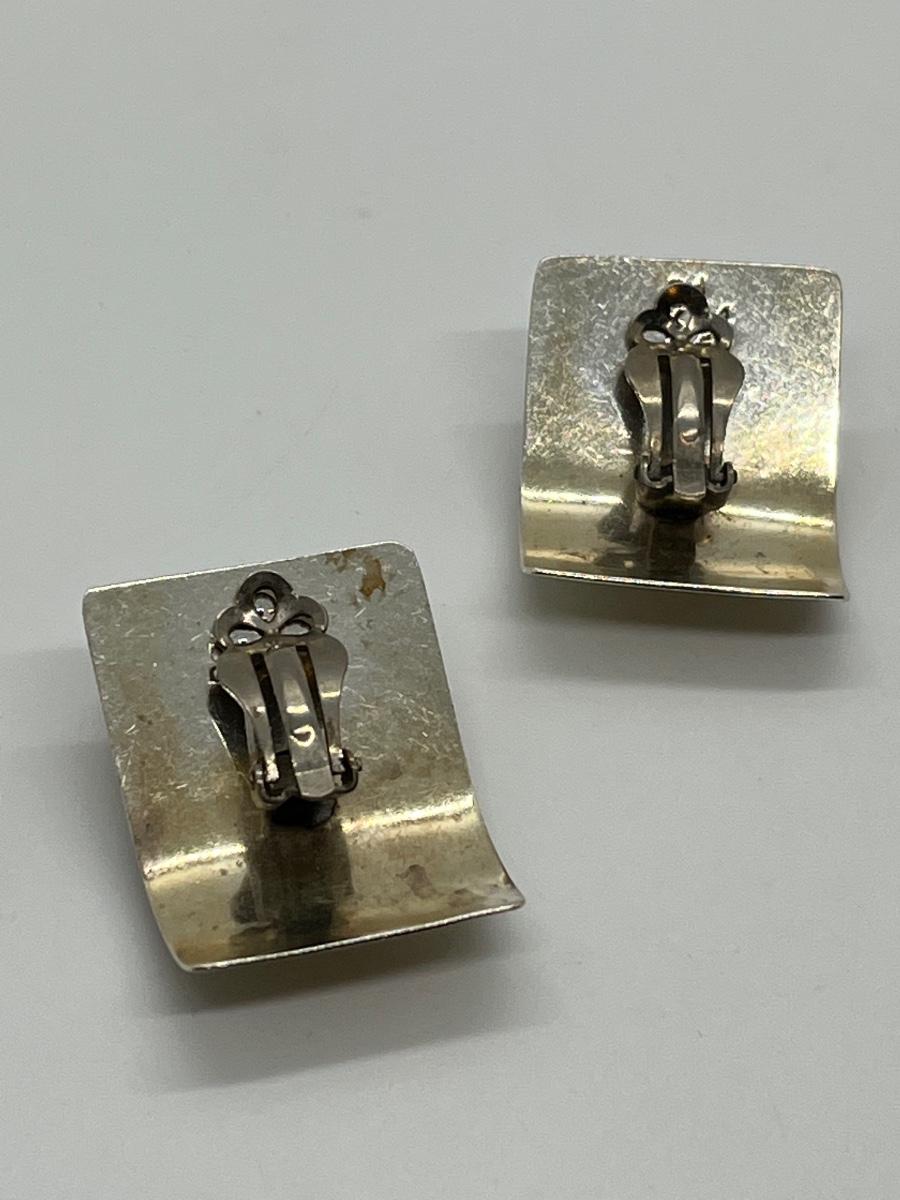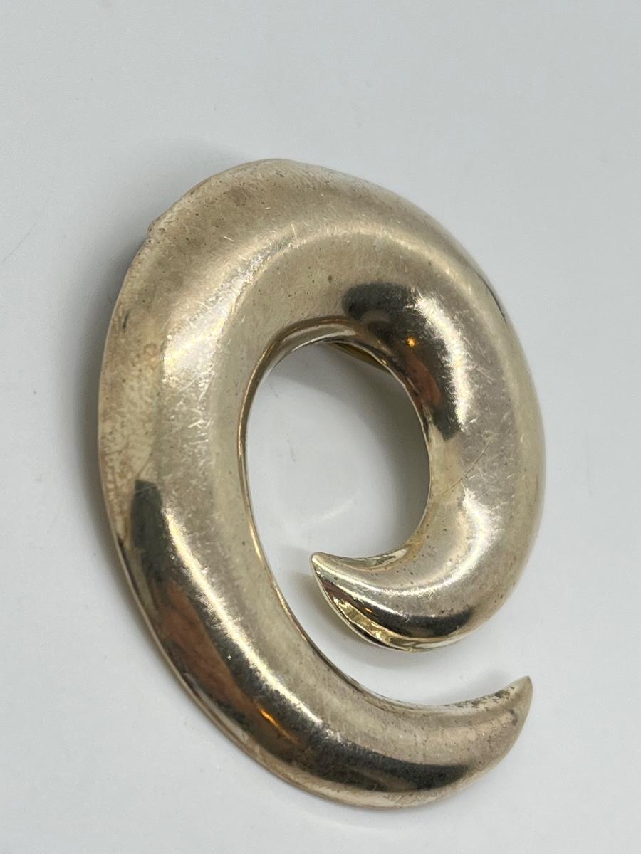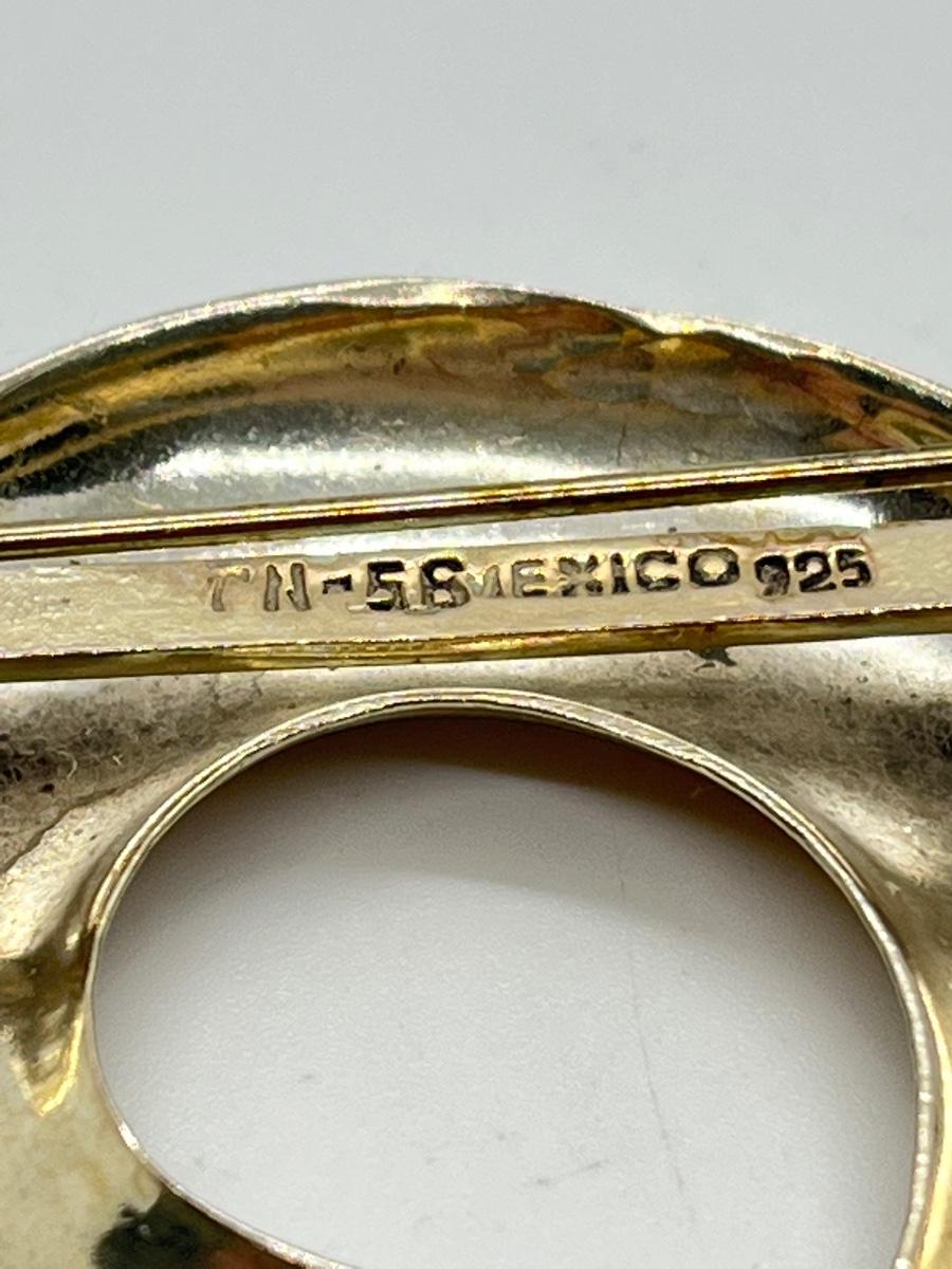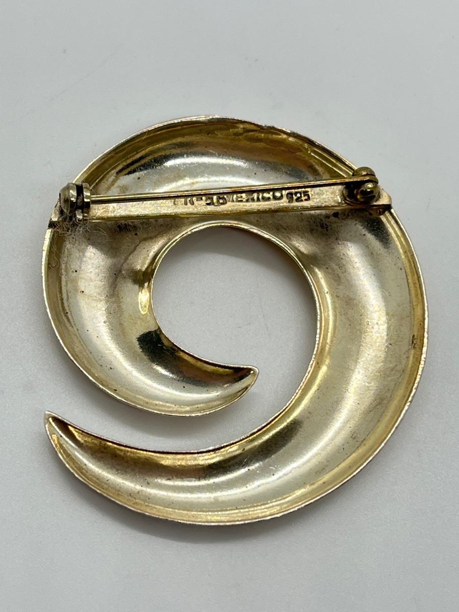 LOT 42: Sterling Silver Mexico Jewelry - Onyx Earrings & Swirl Brooch
