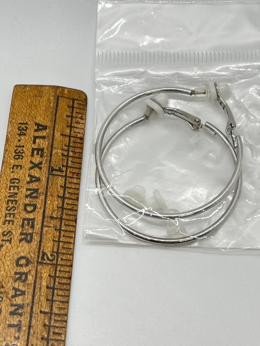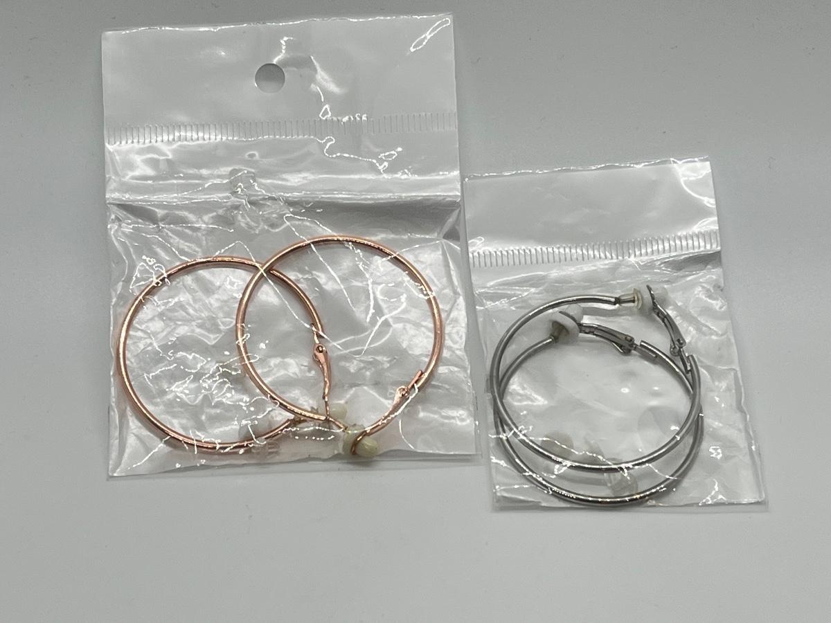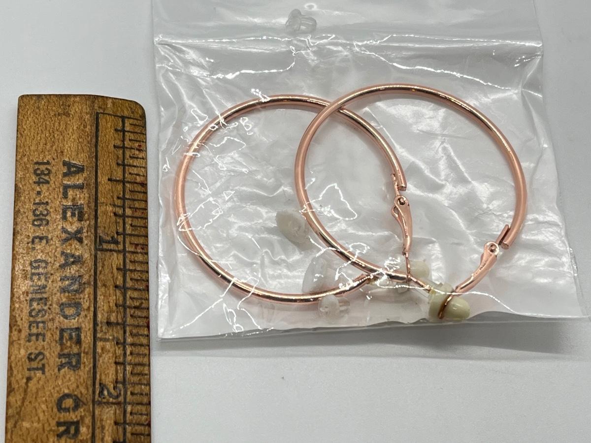 LOT 57: Two Pairs New in Package Leverback Hoop Earrings - Silvertone & Rosetone
