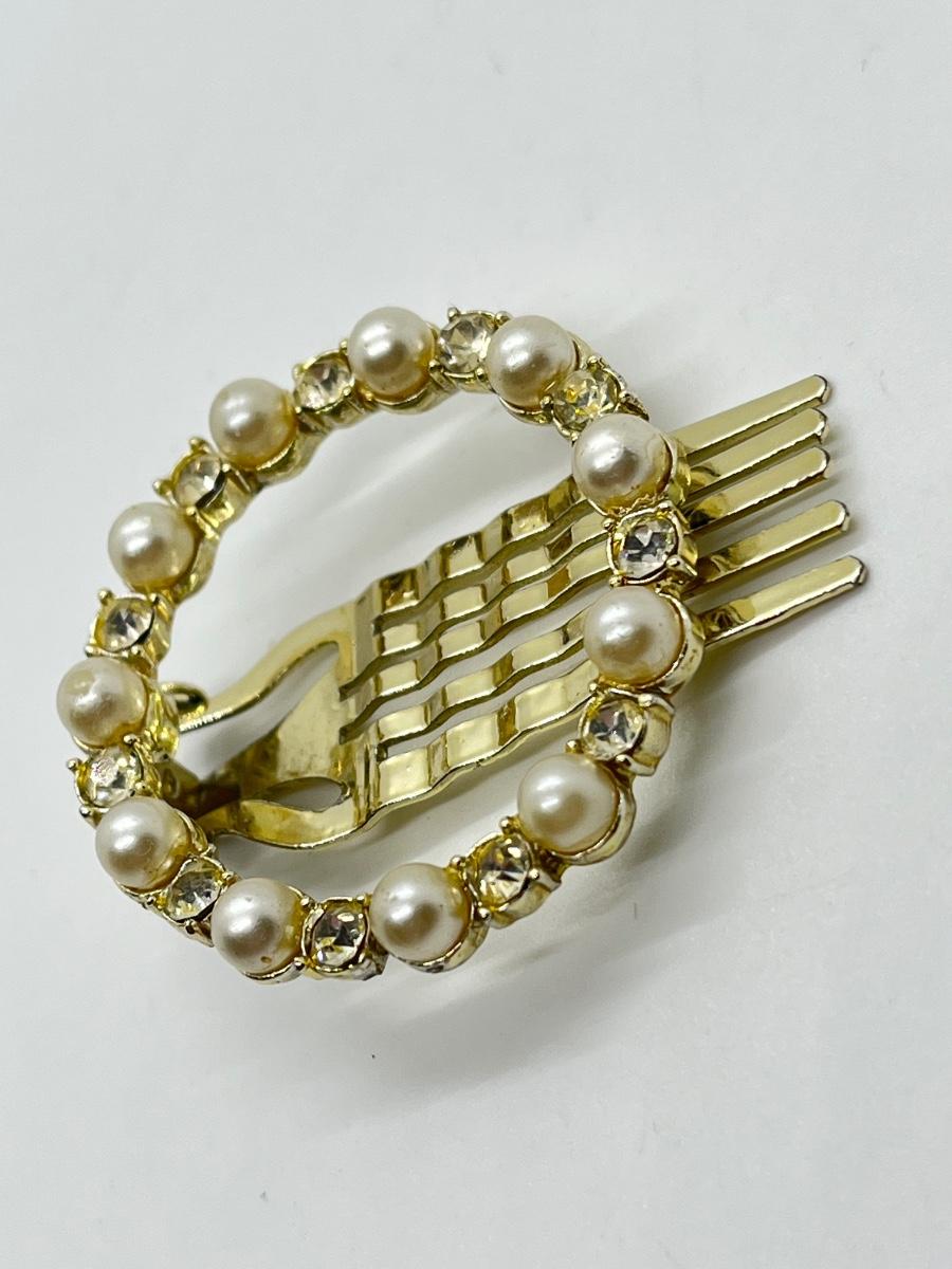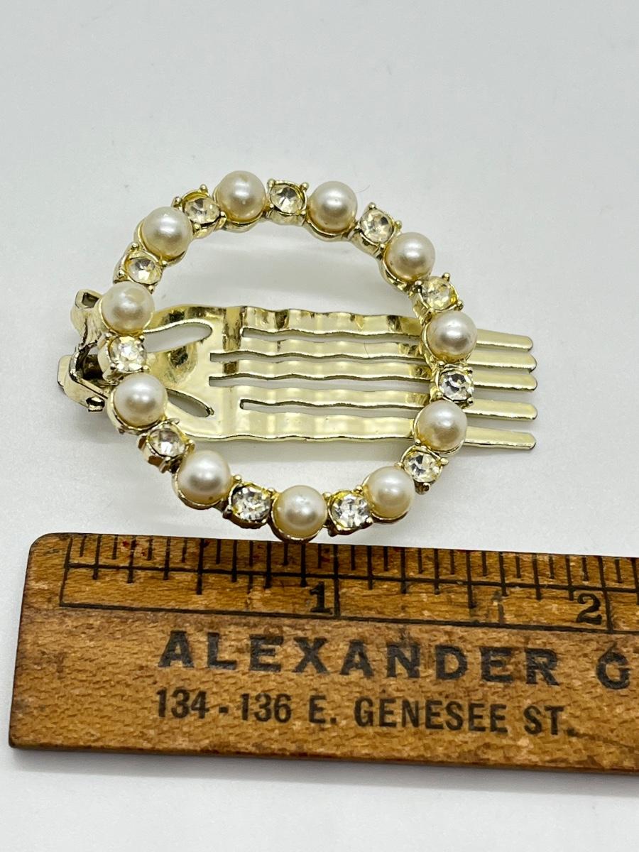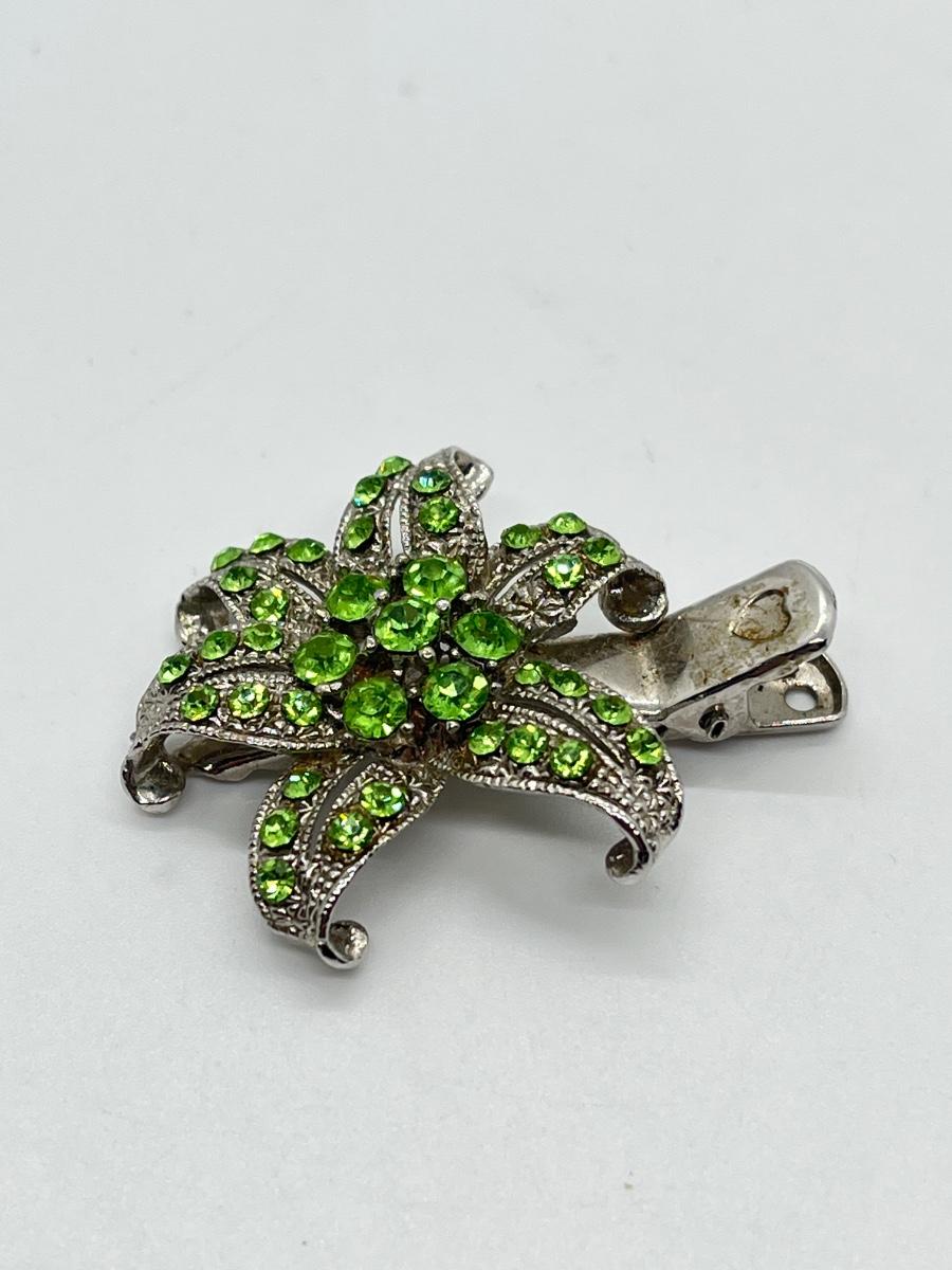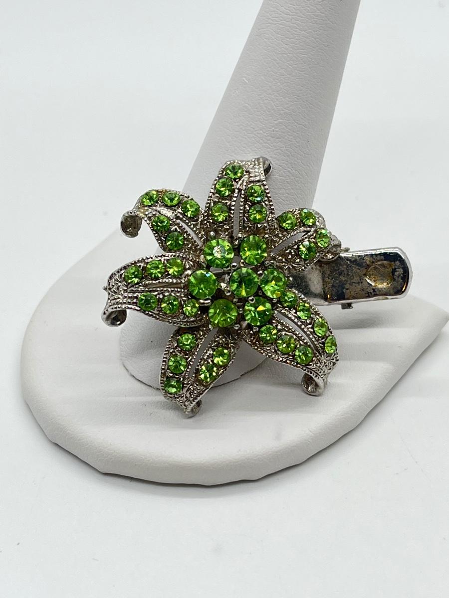 LOT 66: Two Vintage Hair Clips - Silvertone w/ Green Rhinestones, Goldtone w/ Faux Pearls