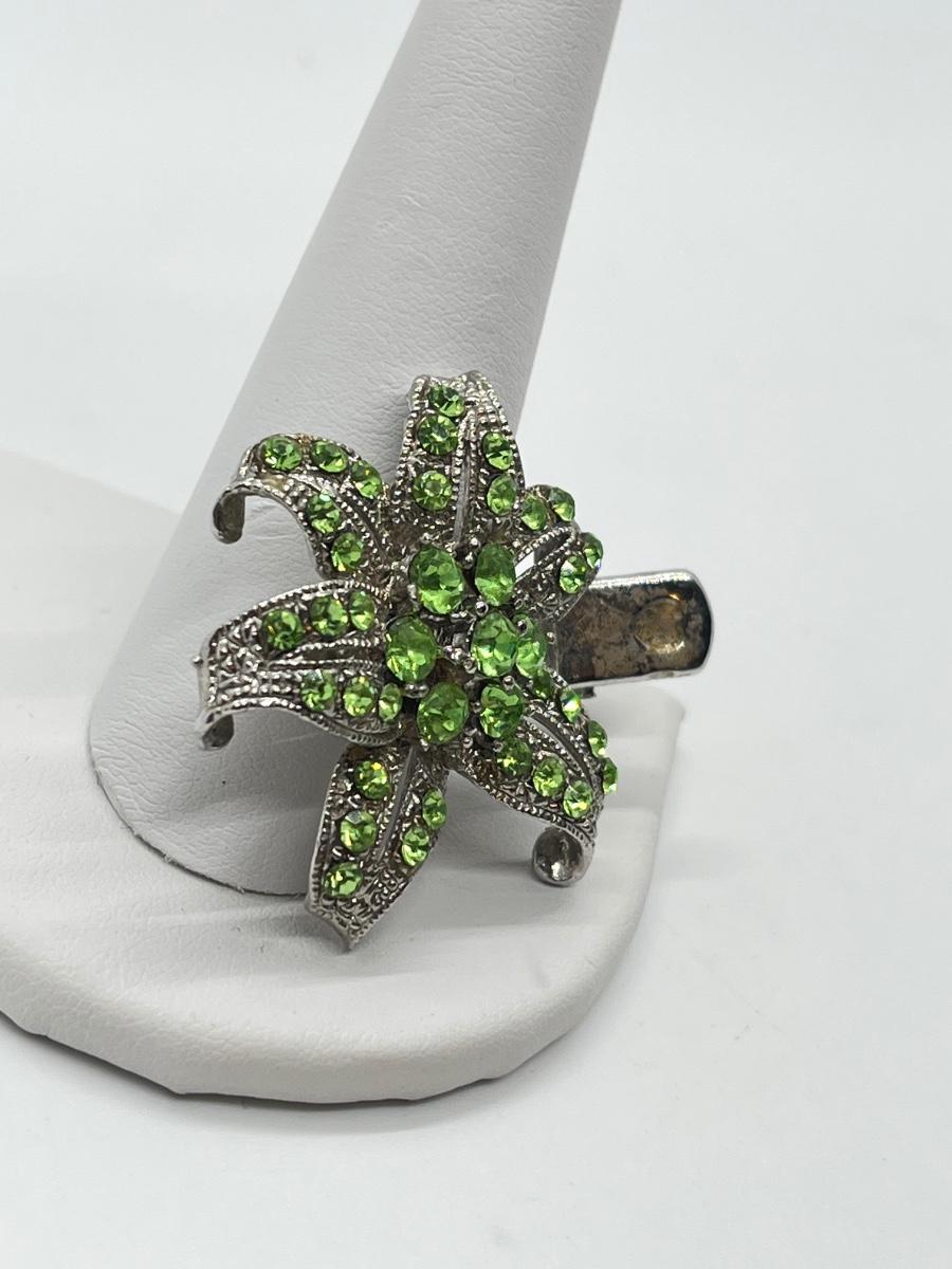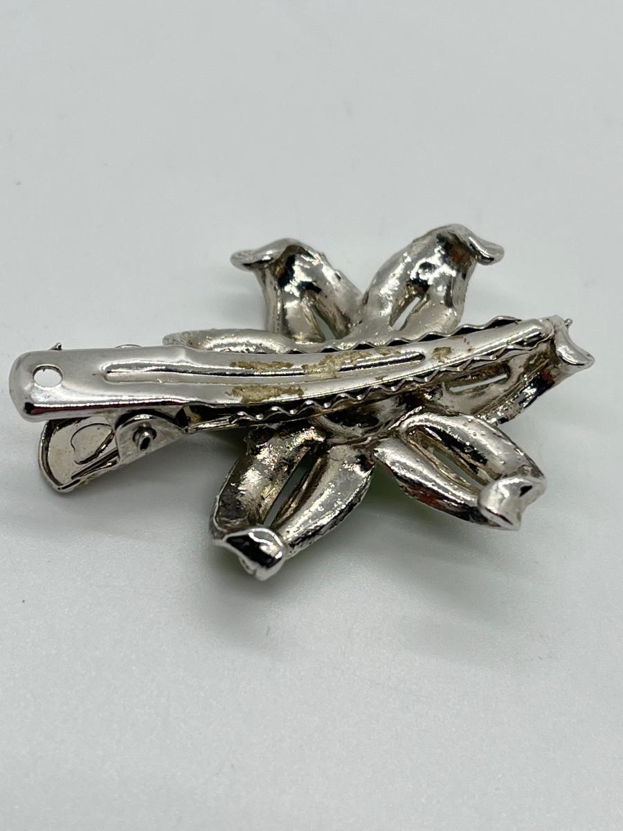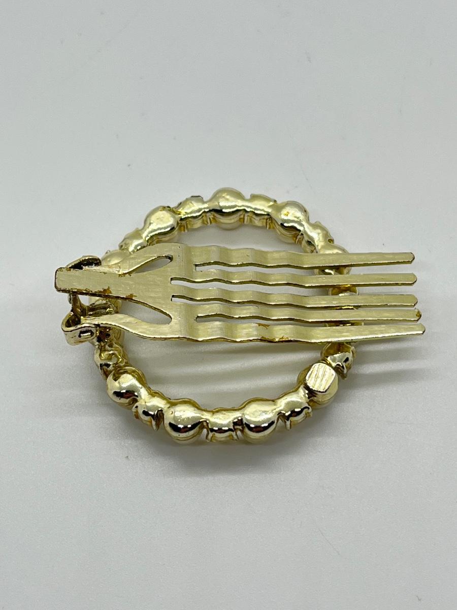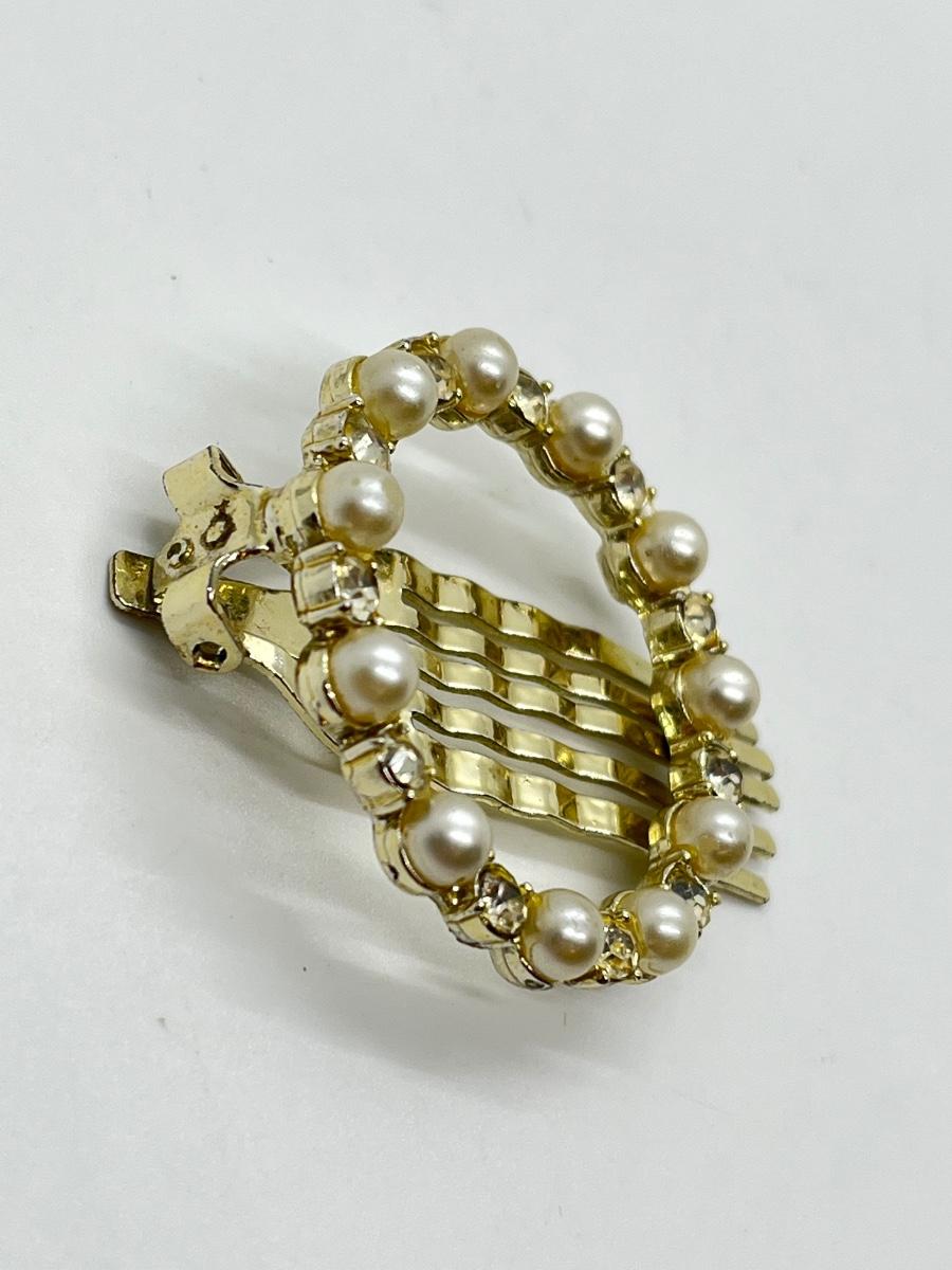 LOT 66: Two Vintage Hair Clips - Silvertone w/ Green Rhinestones, Goldtone w/ Faux Pearls