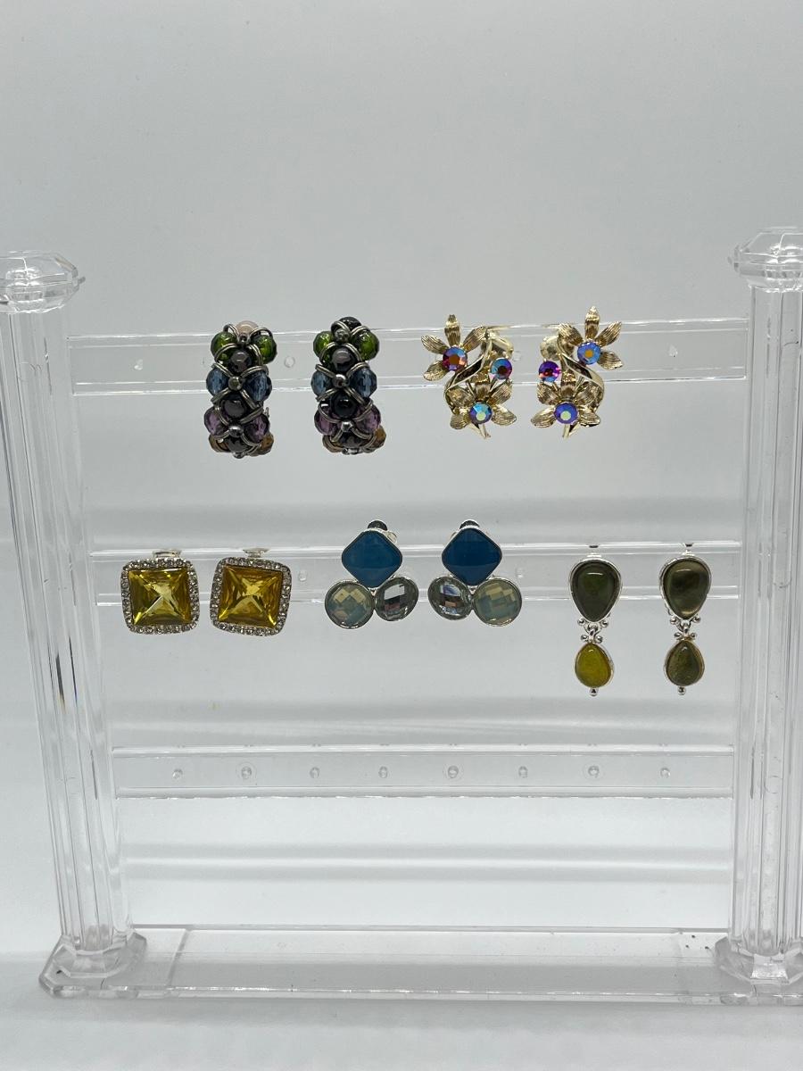 LOT 86: Five Pairs Faux Stone Clip-On Earrings