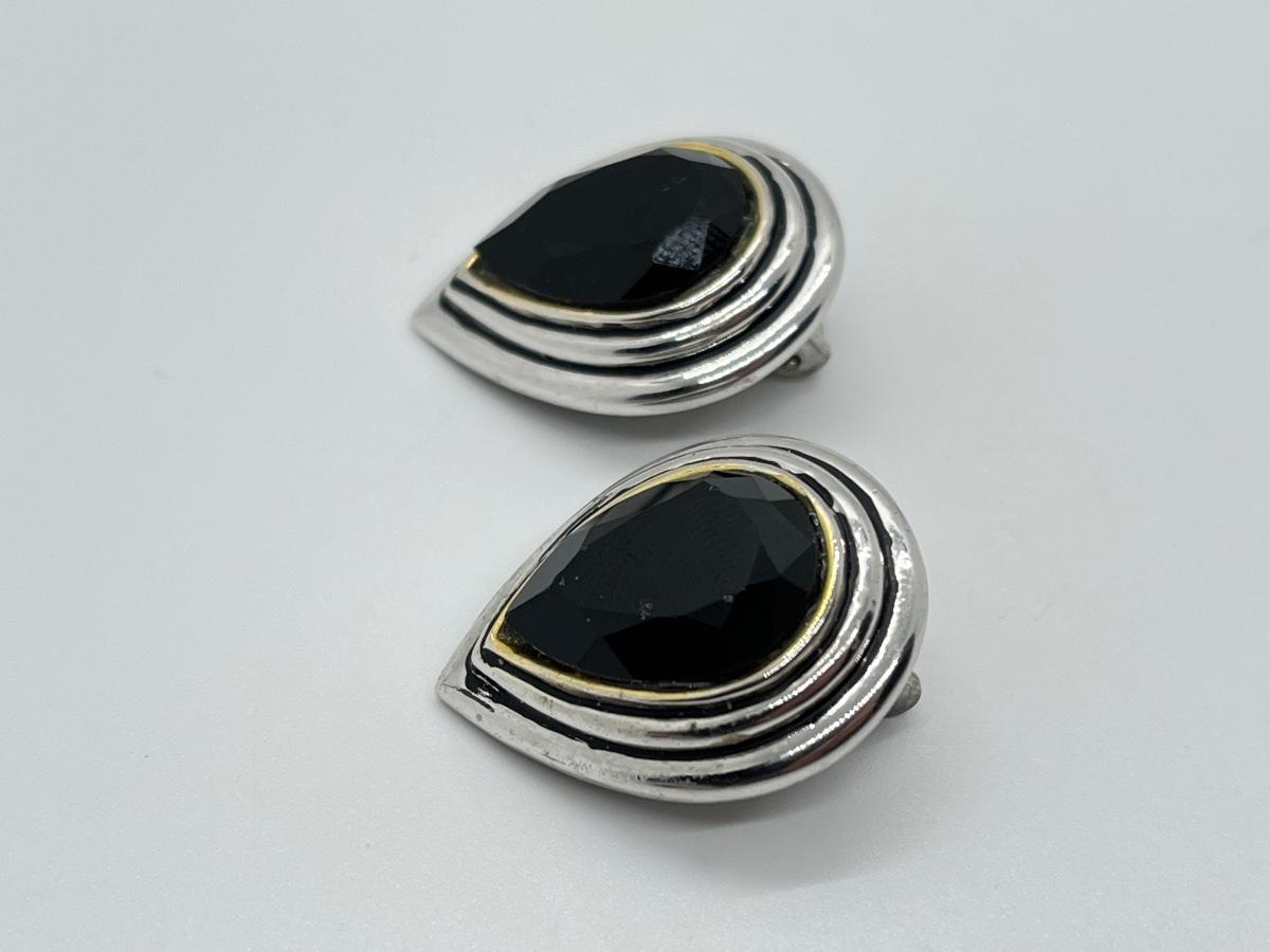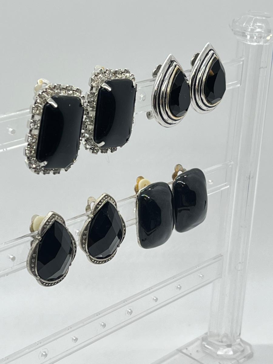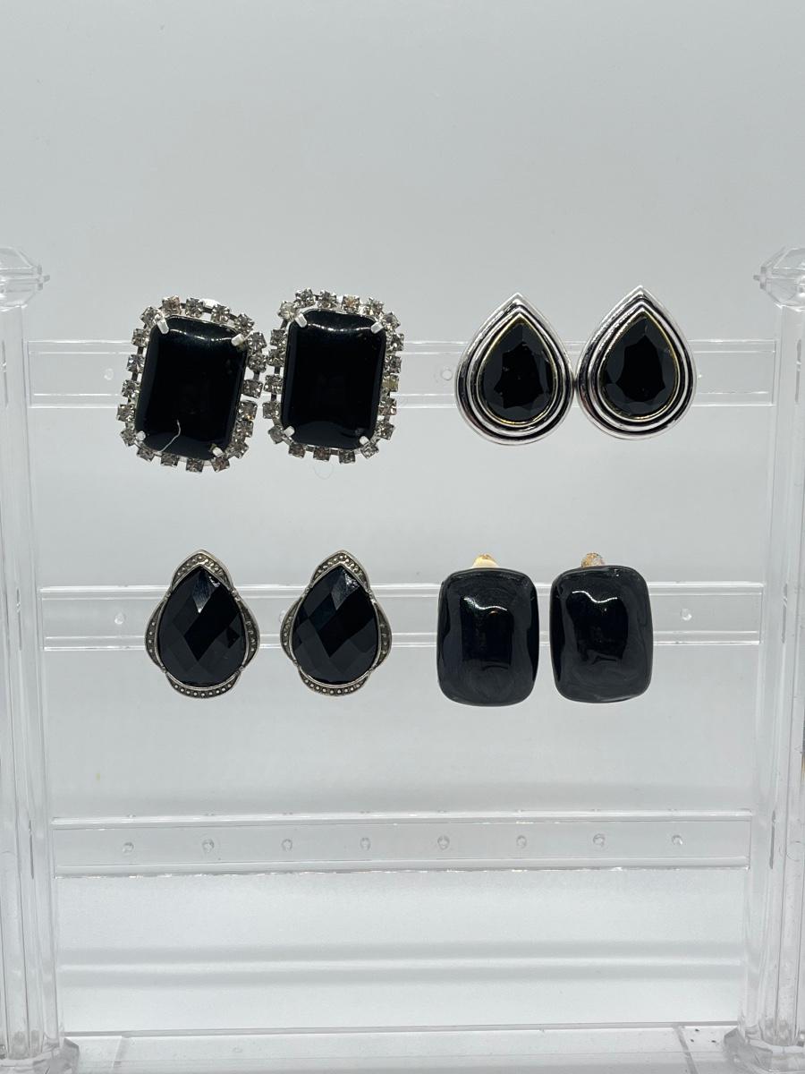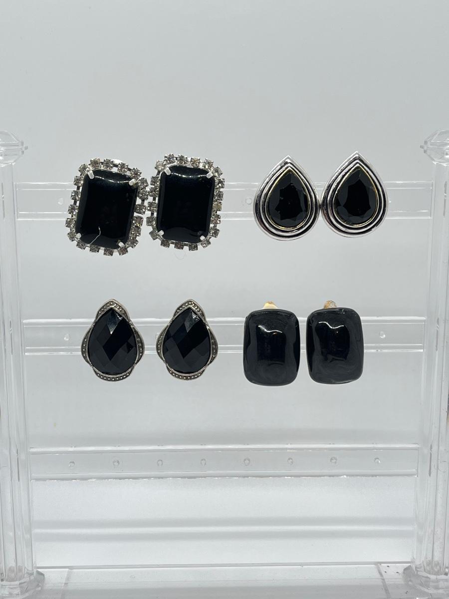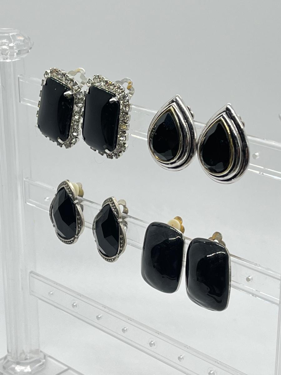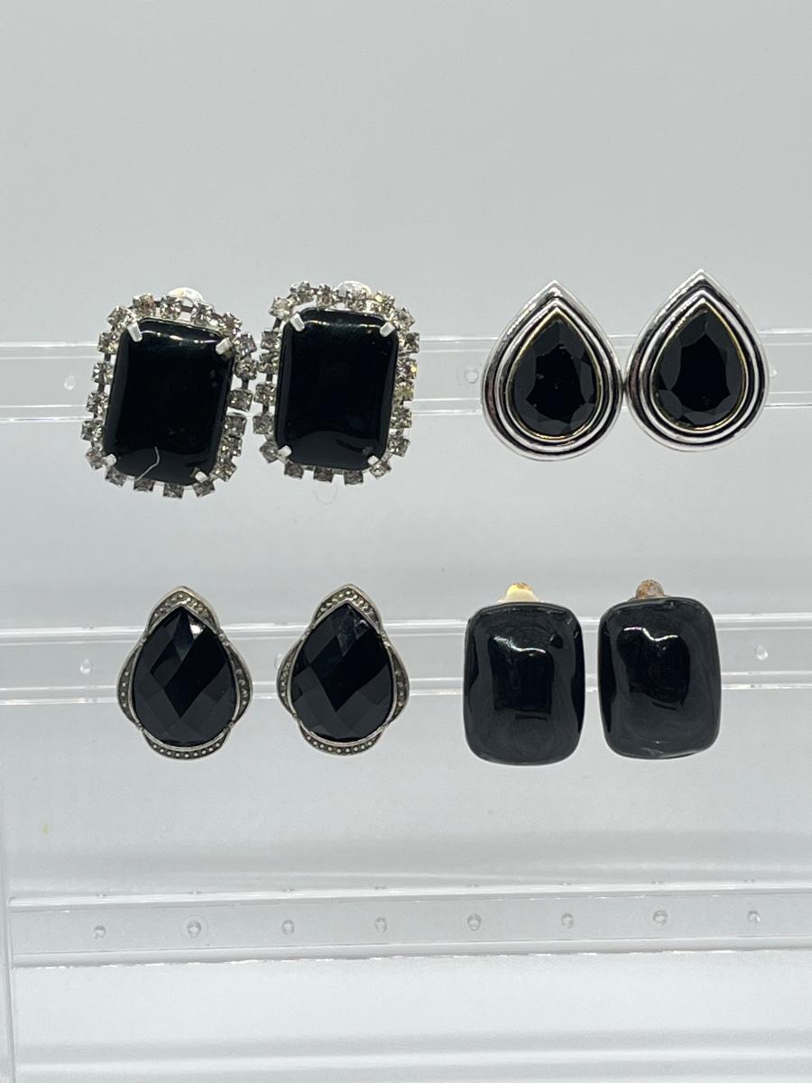 LOT 89: Four Pair Vintage Black & Silvertone Clip-On Earrings