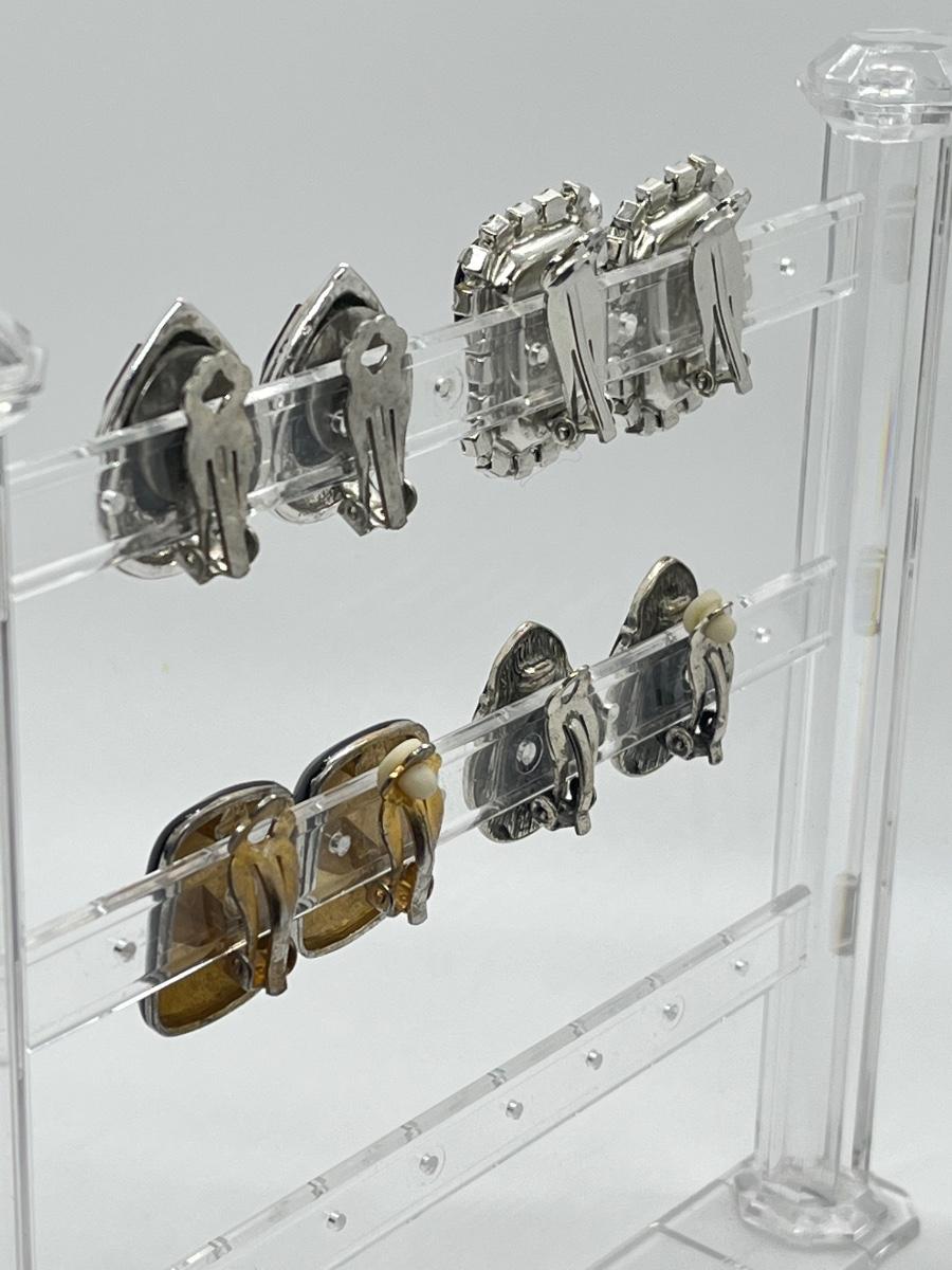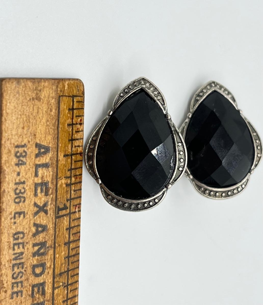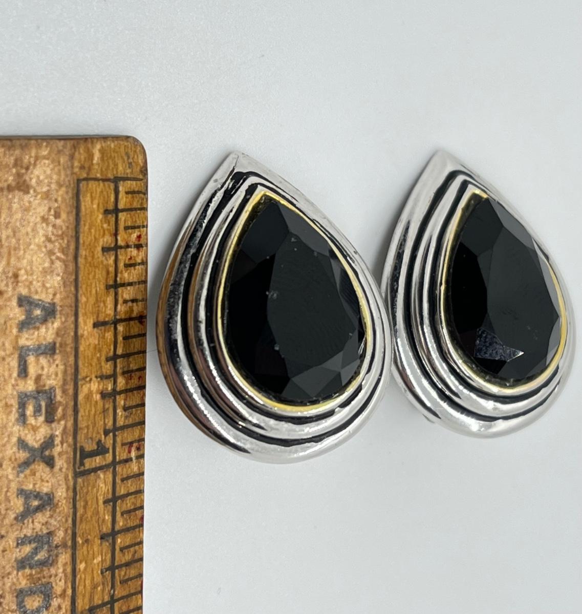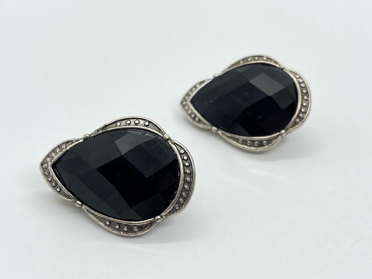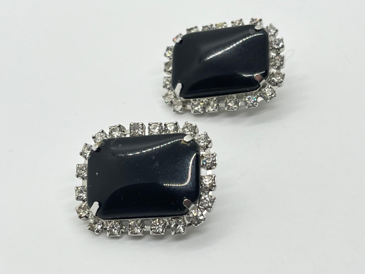 LOT 89: Four Pair Vintage Black & Silvertone Clip-On Earrings