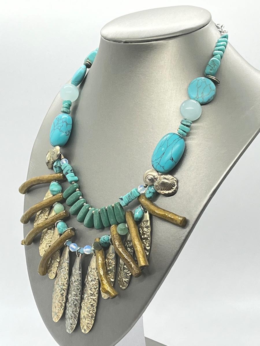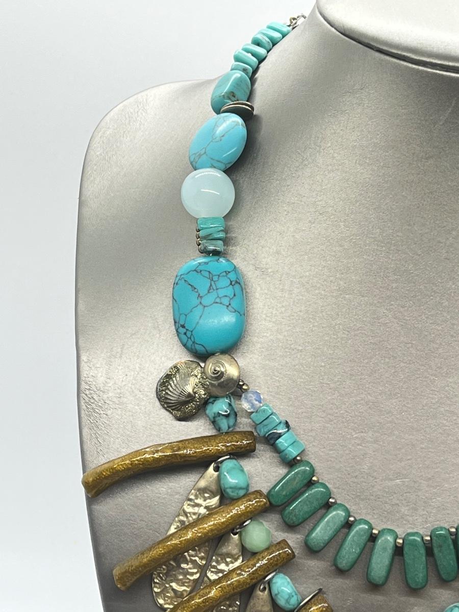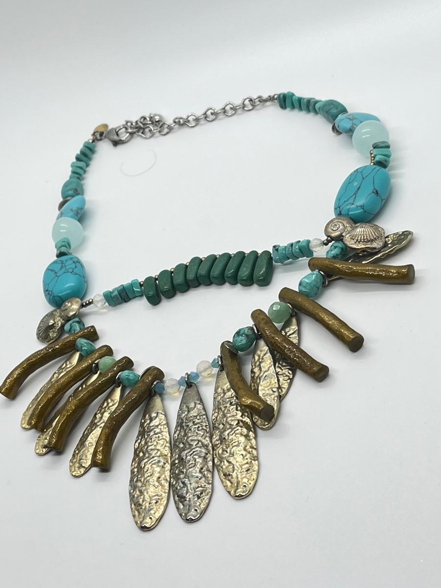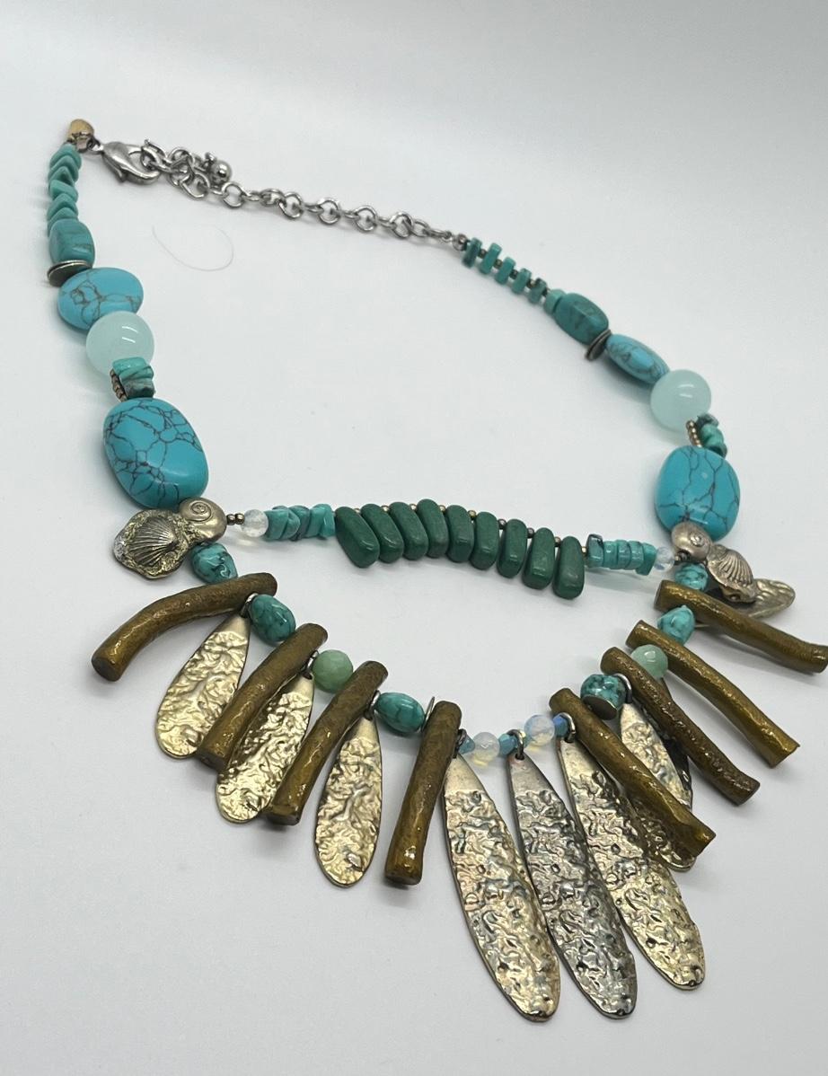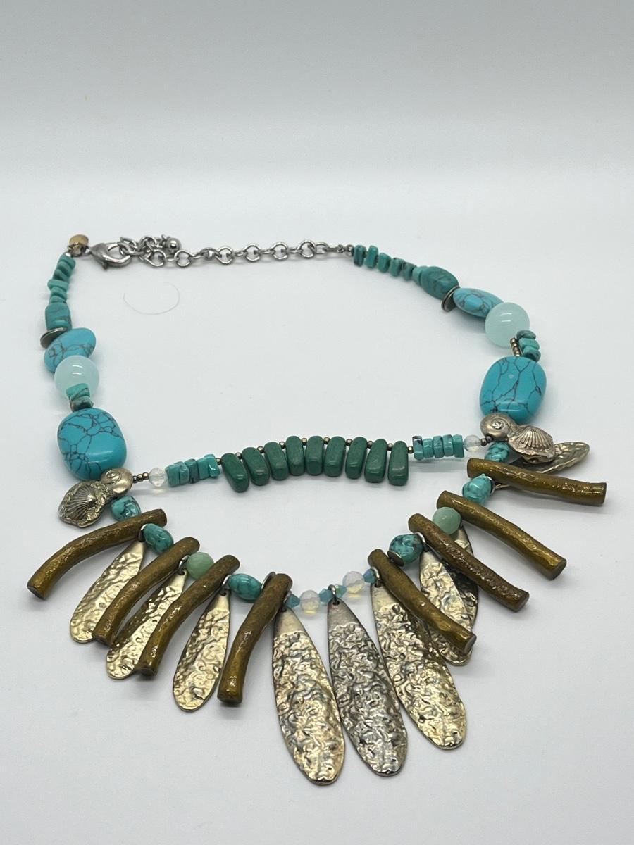 LOT 101: Chico's Statement Goldtone Faux Turquoise Multi-strand Drop Necklace - 15" + 4"