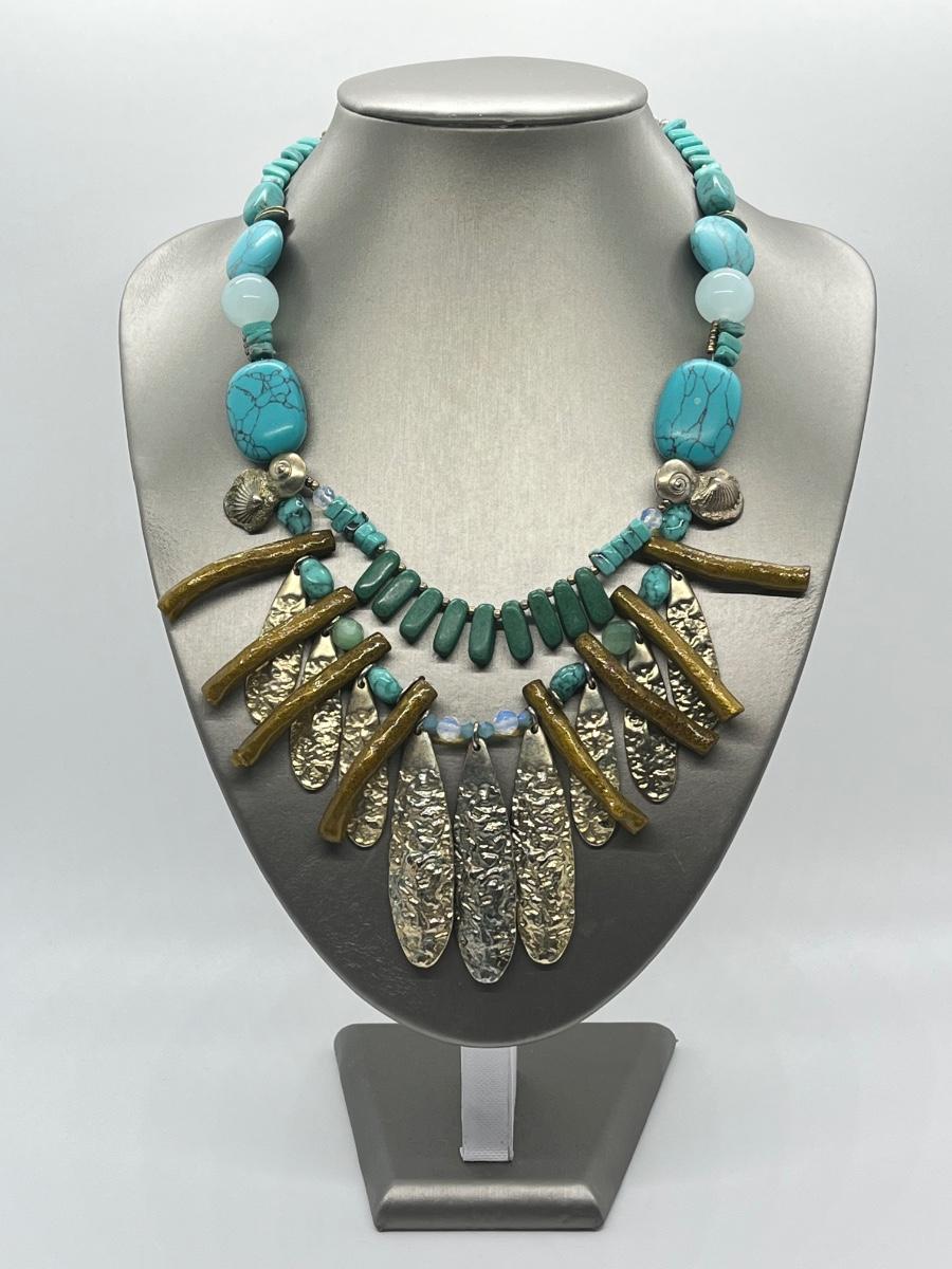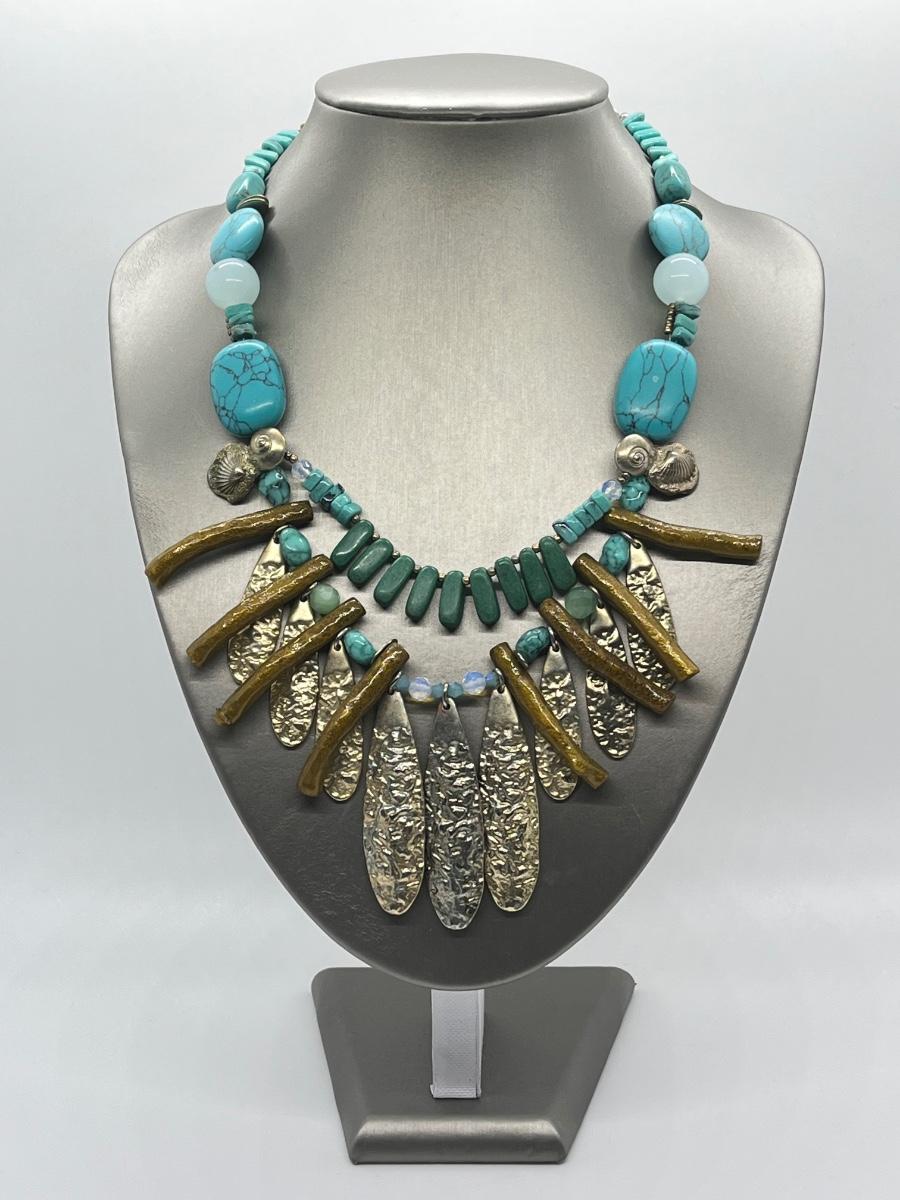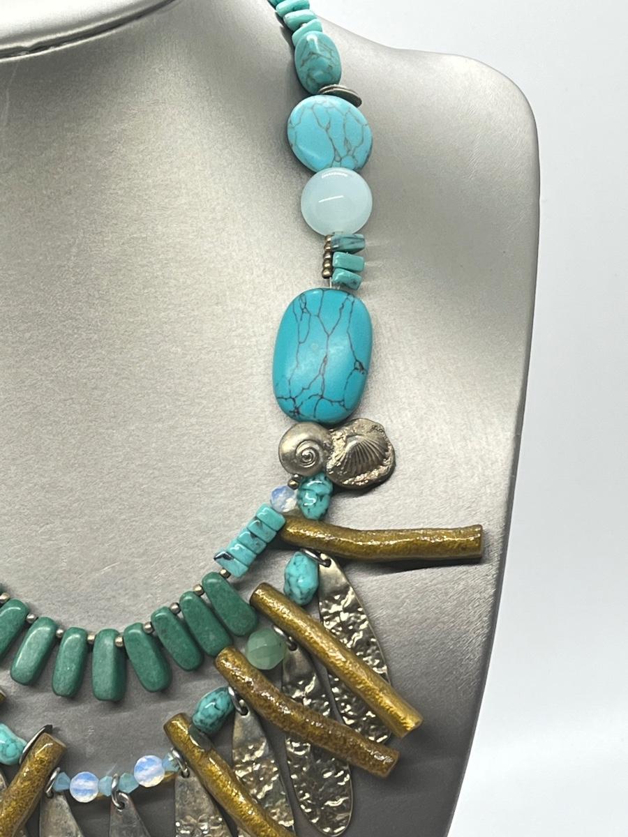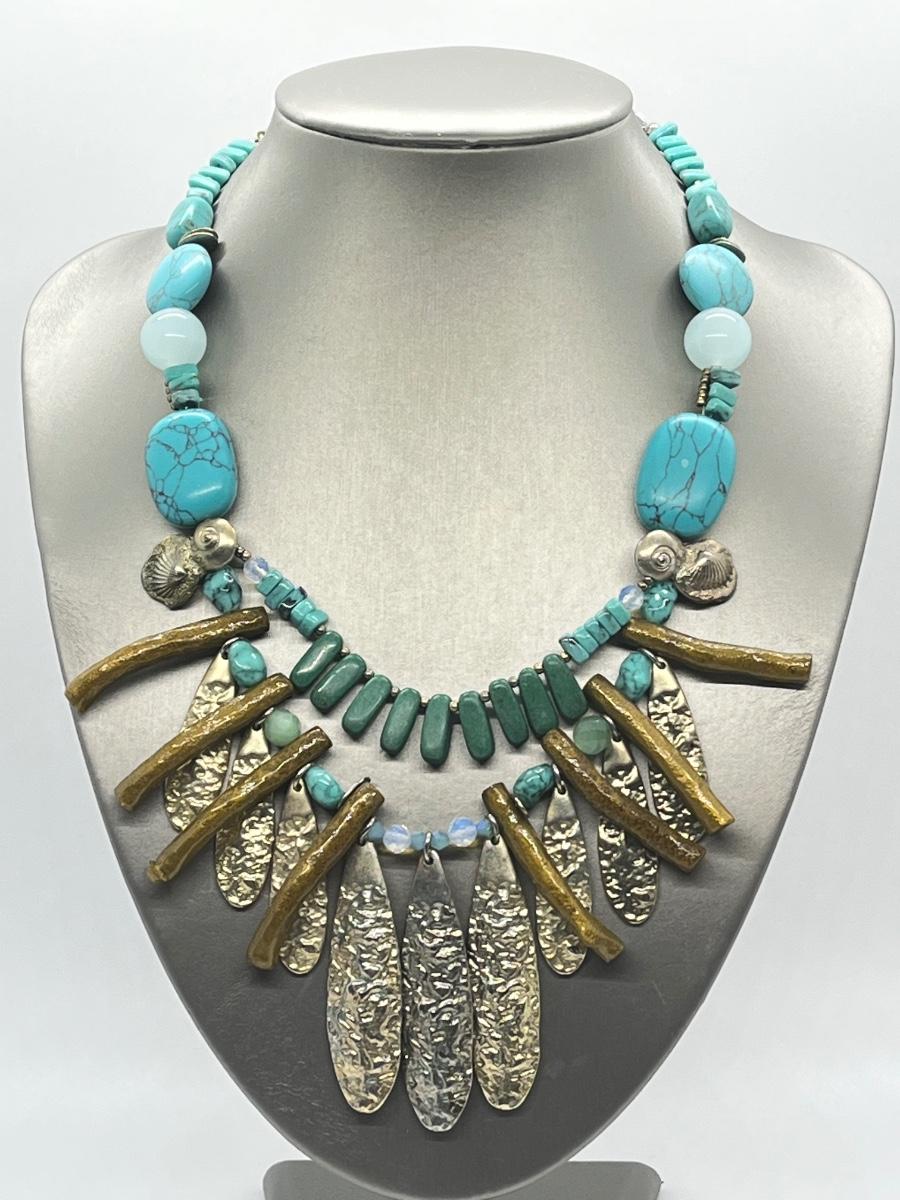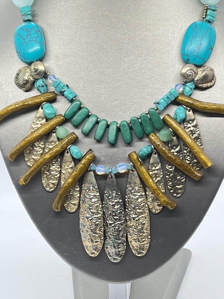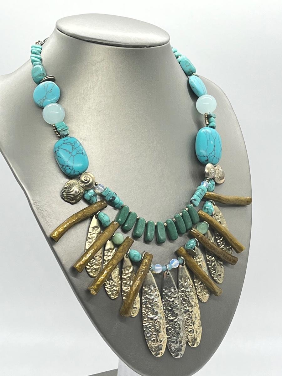 LOT 101: Chico's Statement Goldtone Faux Turquoise Multi-strand Drop Necklace - 15" + 4"