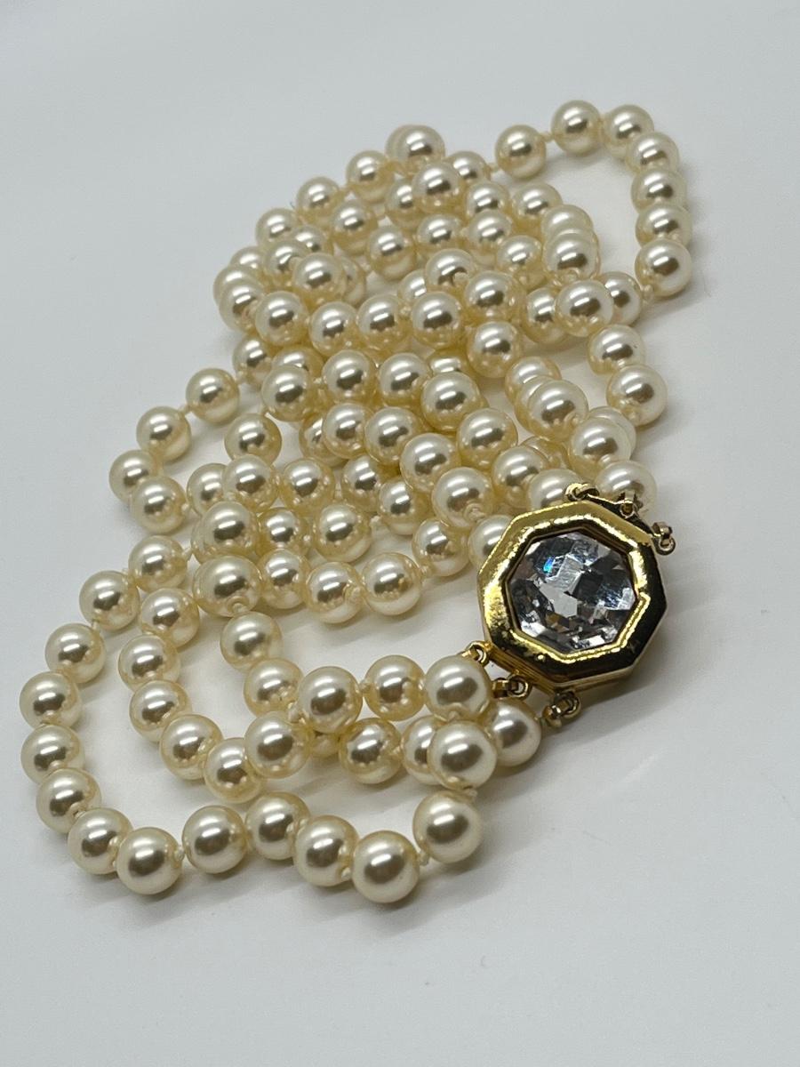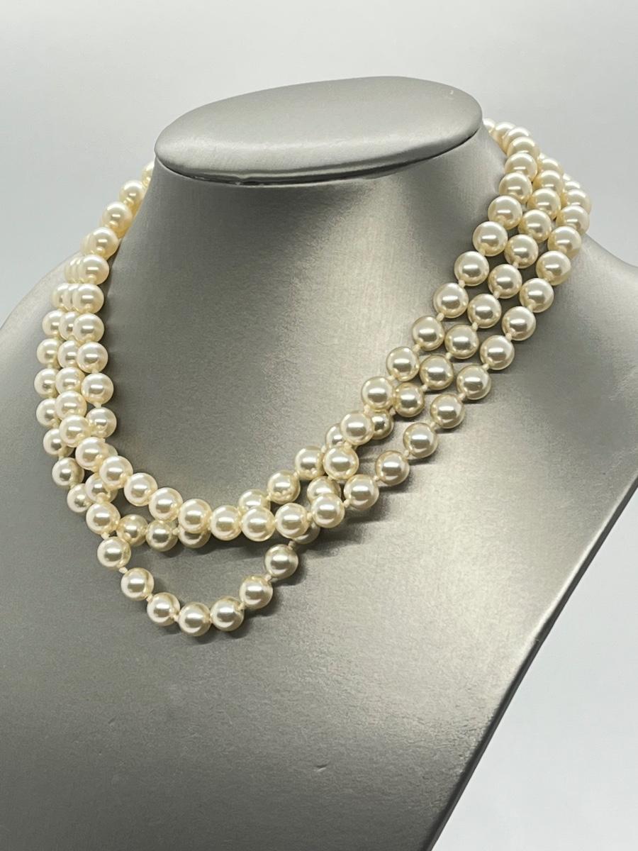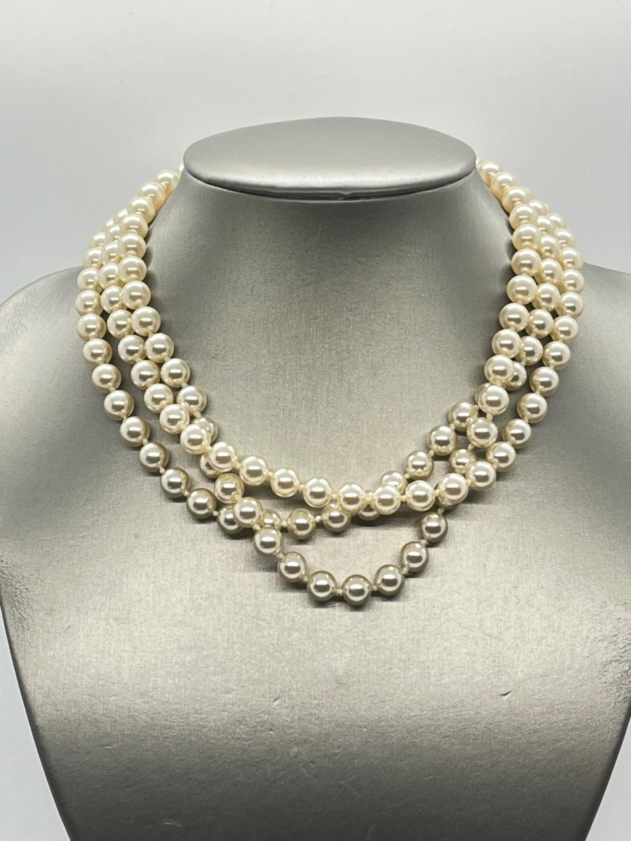 LOT 104: Faux Pearl Tr-Strand 17" Necklace - signed S.A.L.
