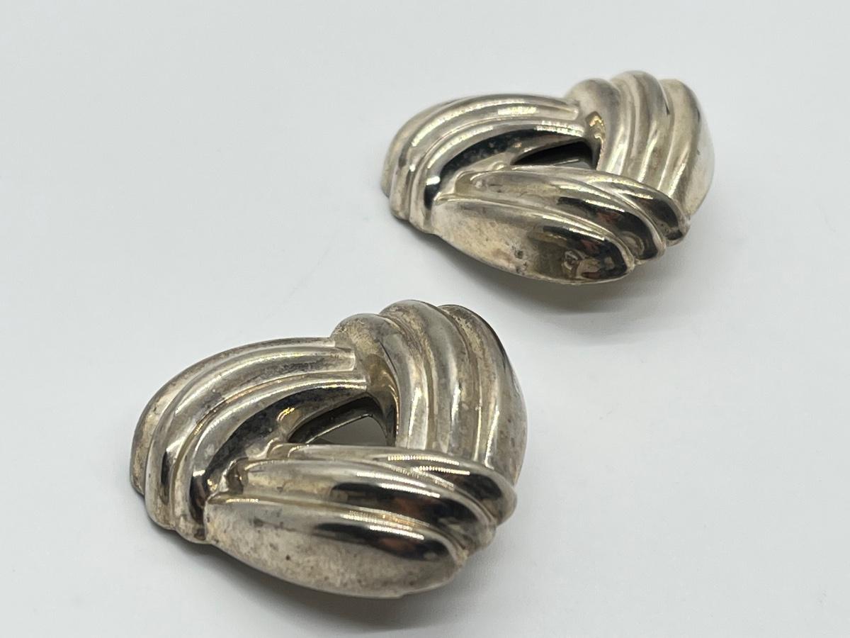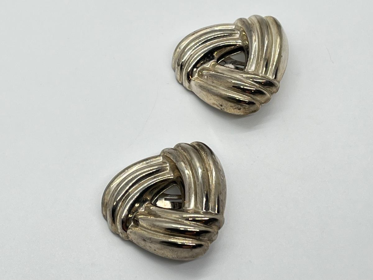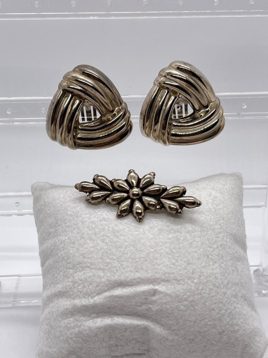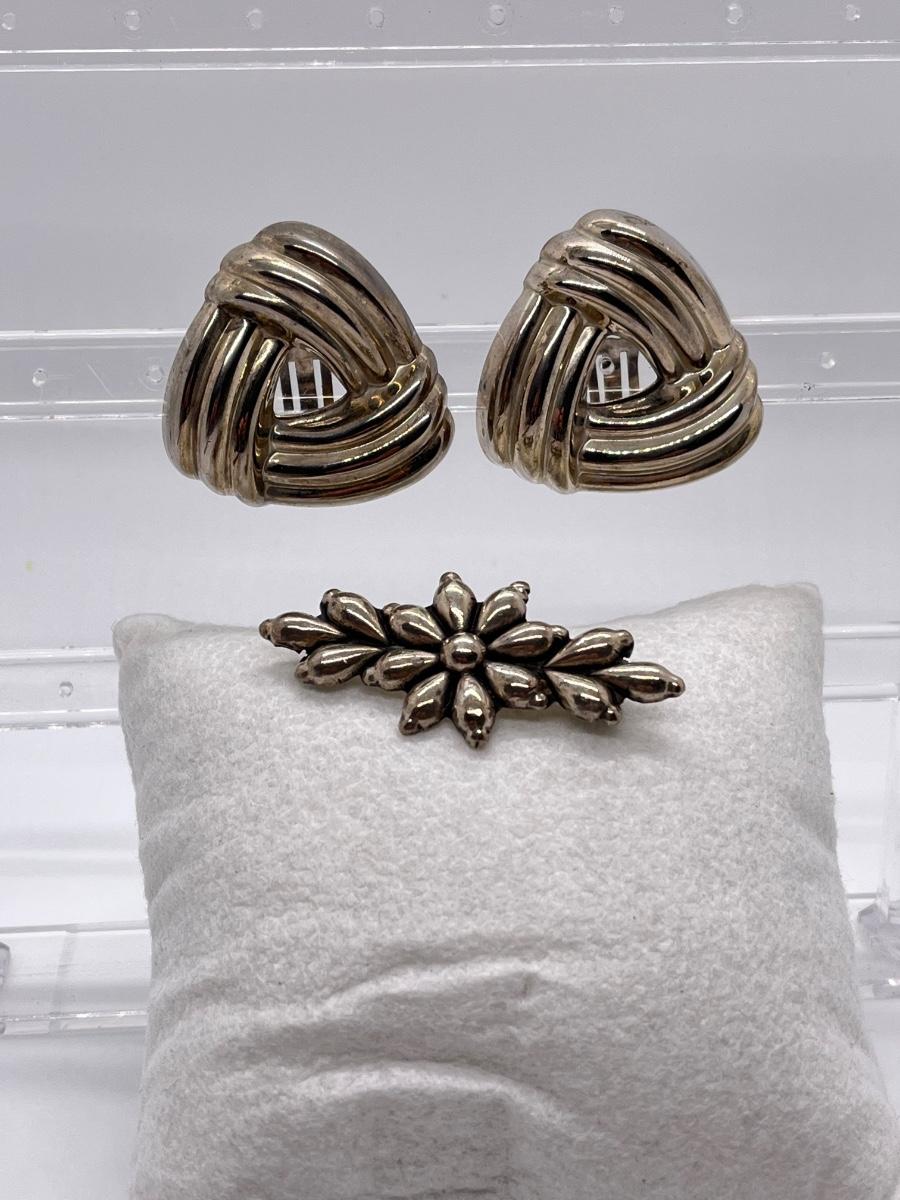 LOT 109: Large Silvertone Clip-on Earrings & Brooch
