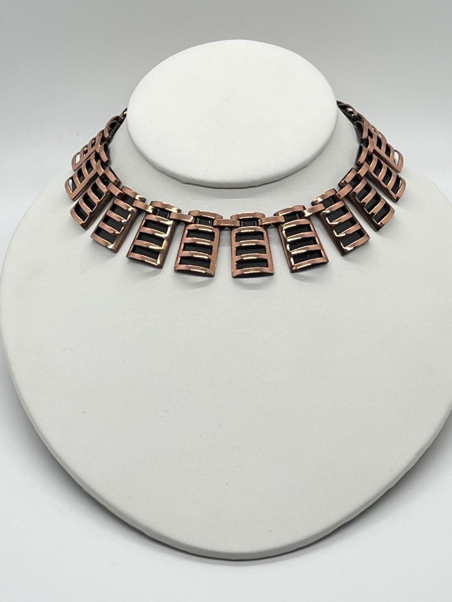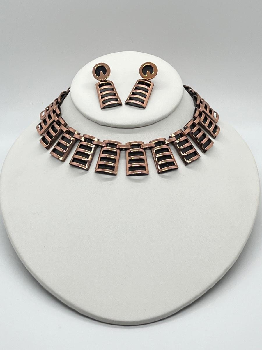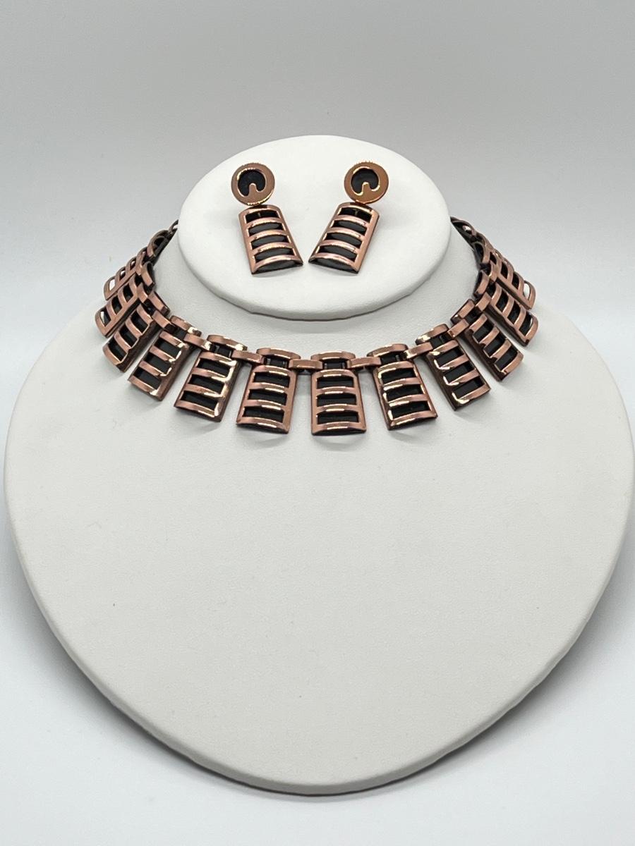 LOT 110: Copper Tone Chker Necklace (14" + 4" ext) & Screwback Earrings Set