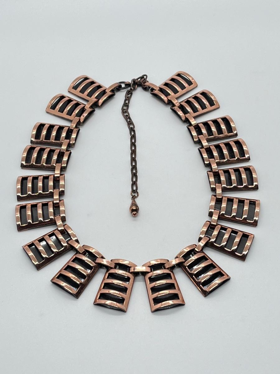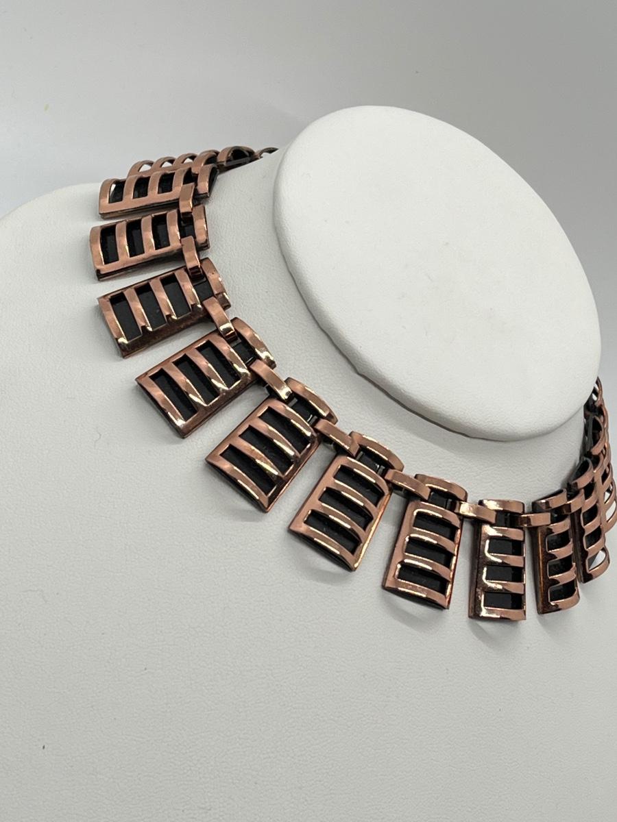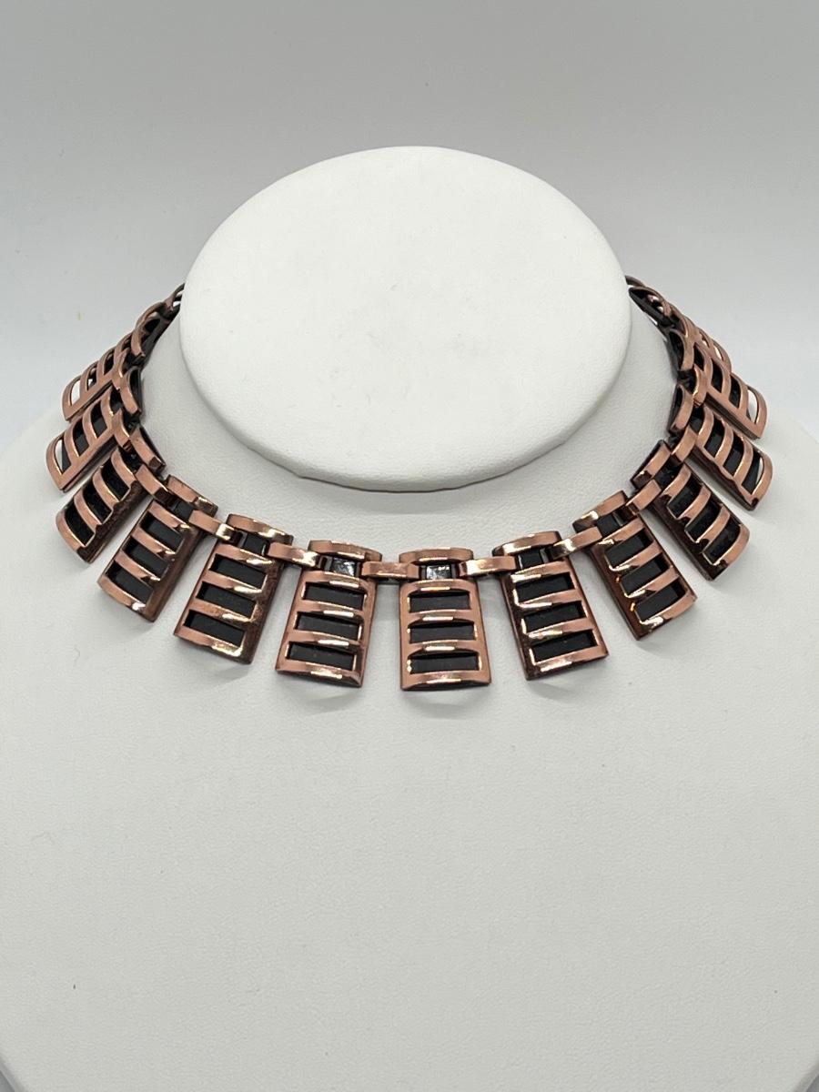 LOT 110: Copper Tone Chker Necklace (14" + 4" ext) & Screwback Earrings Set