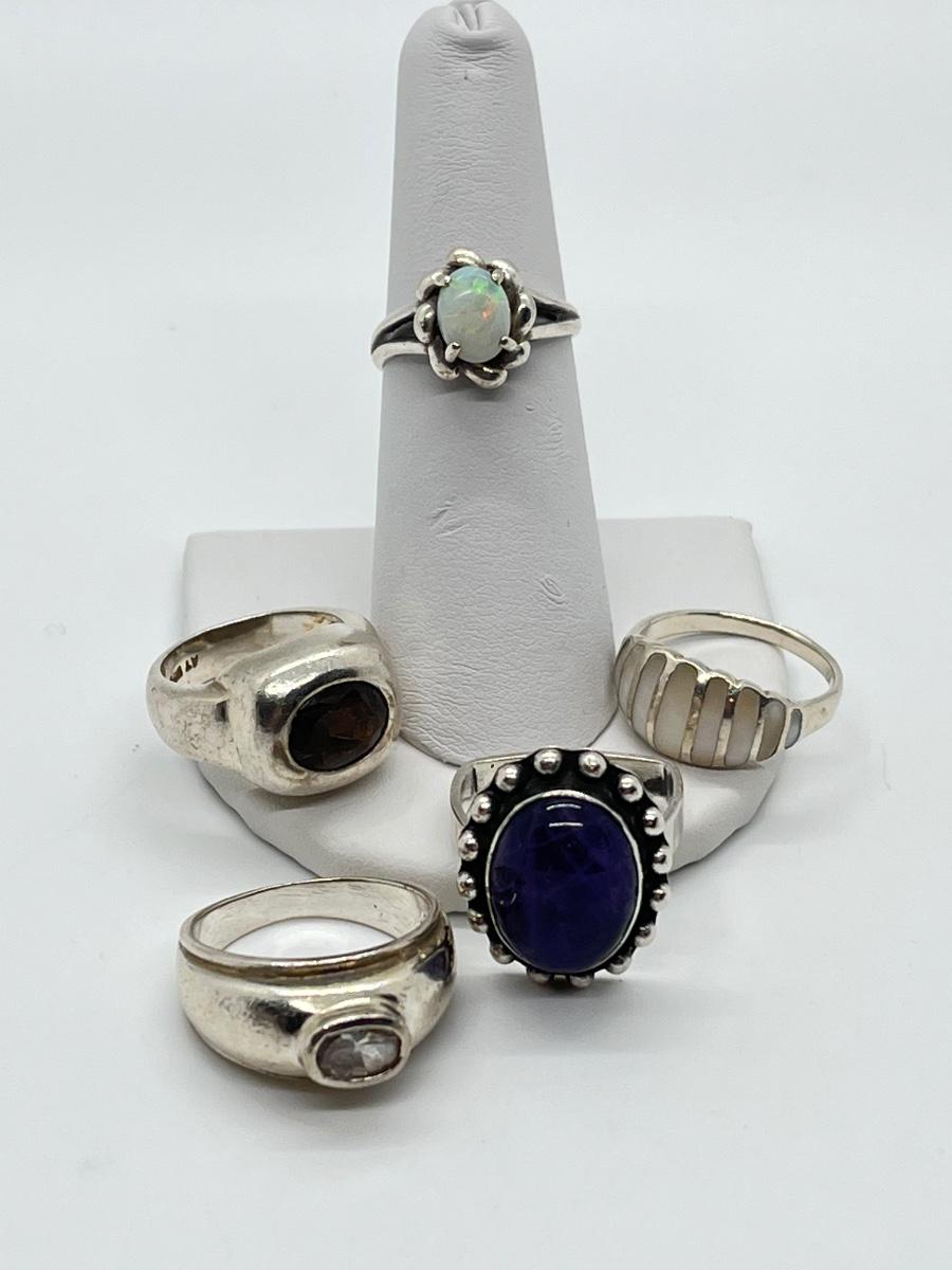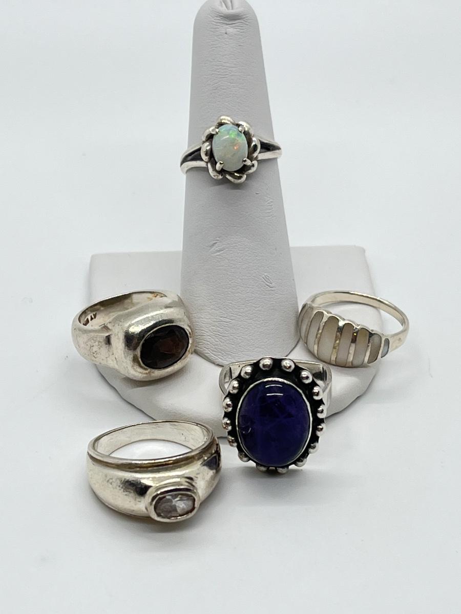 LOT 113: Five Sterling Silver Rings - Opal & More - Various Sizes